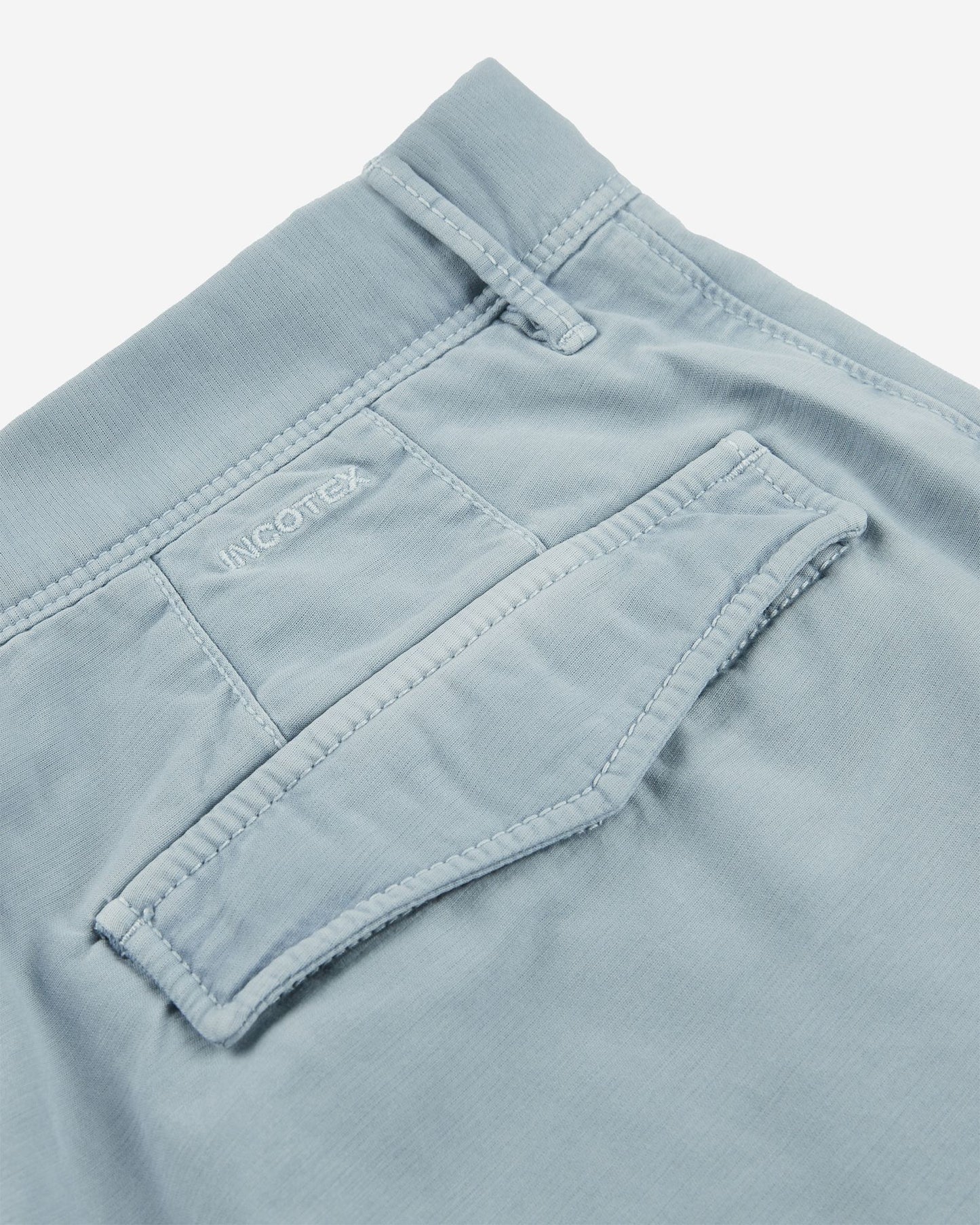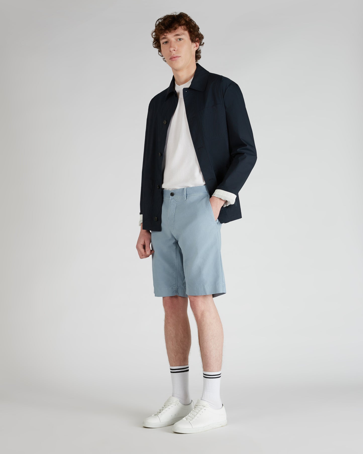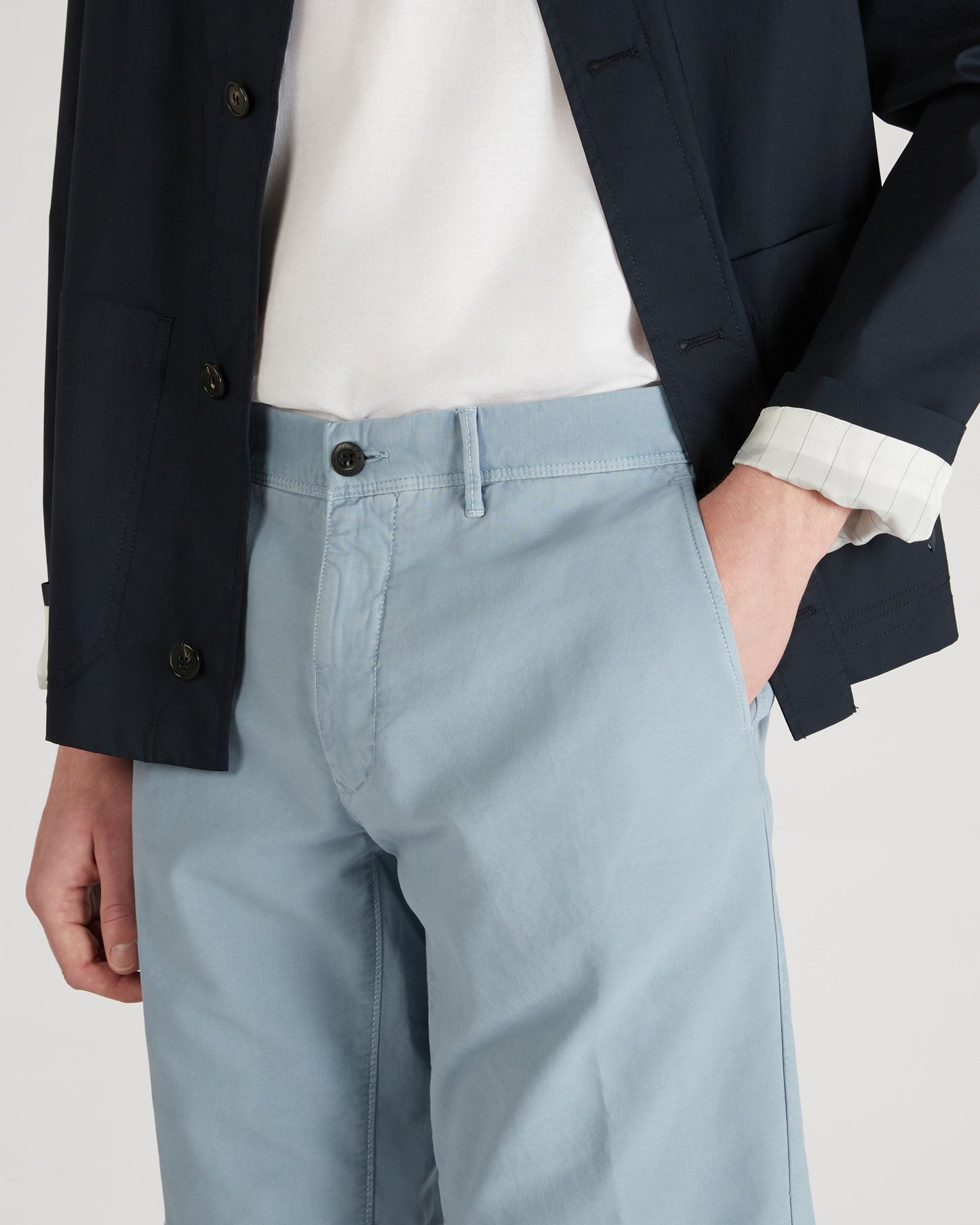 Summer satin is an iconic fabric in Slowear's summer proposal. It is a soft, light stretch cotton with an original weave that gives a silky appearance. In addition, it has been produced through a certified process, minimising the use of harmful chemicals at all stages of production. The minimal lines of the model make this garment extremely versatile, lending a sartorial touch to more casual looks.