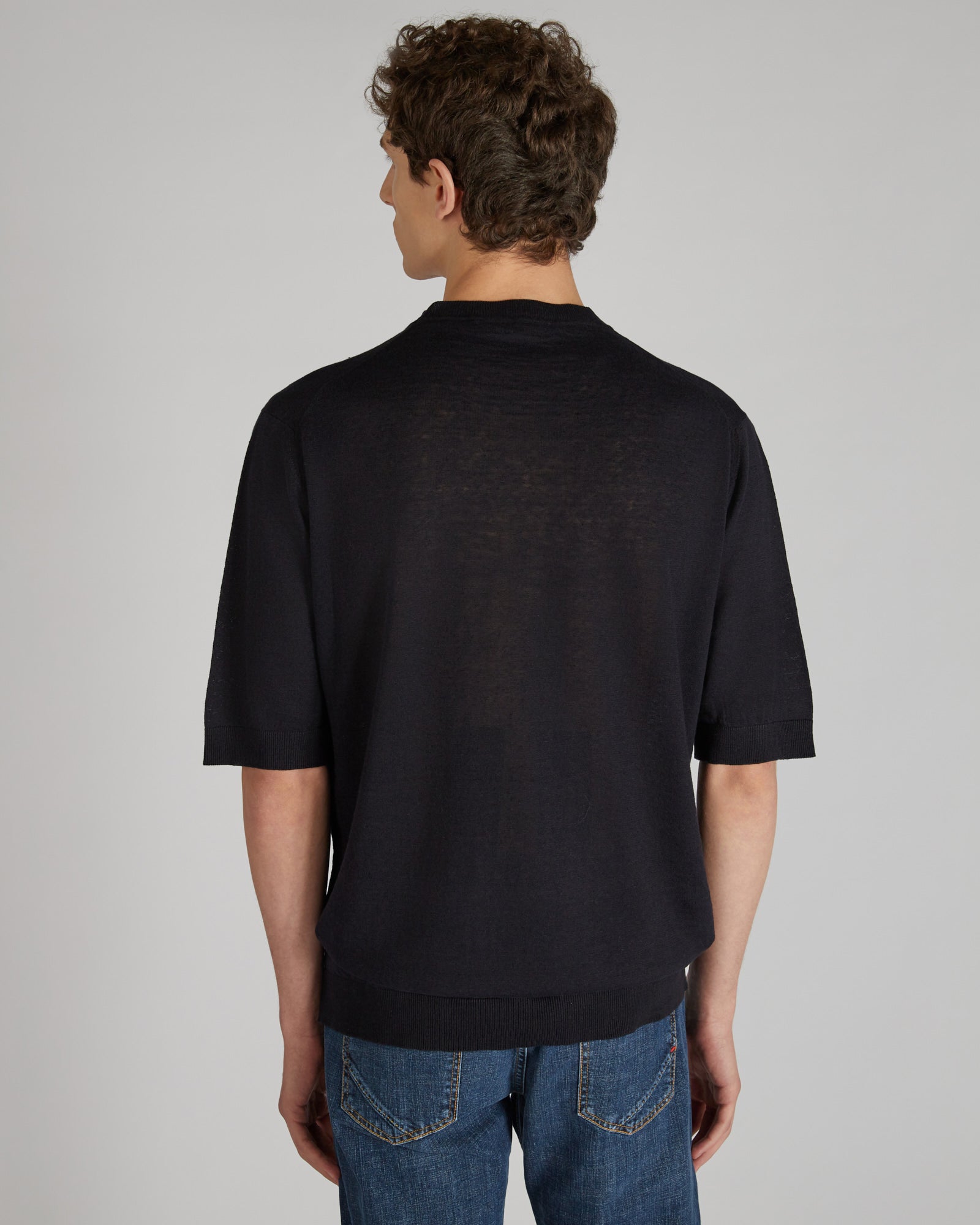 An original alternative to the traditional t-shirt, this short-sleeved crew neck contains all the refinement of high knitwear. The clean design is the ultimate expression of versatility. The quality of the fabric, which combines cotton and linen, is ensured by quality and production through a certified process that ensures worker safety, respect for the environment and minimal use of harmful chemicals at all stages of production. Available in several colours, in a refined seasonal palette.