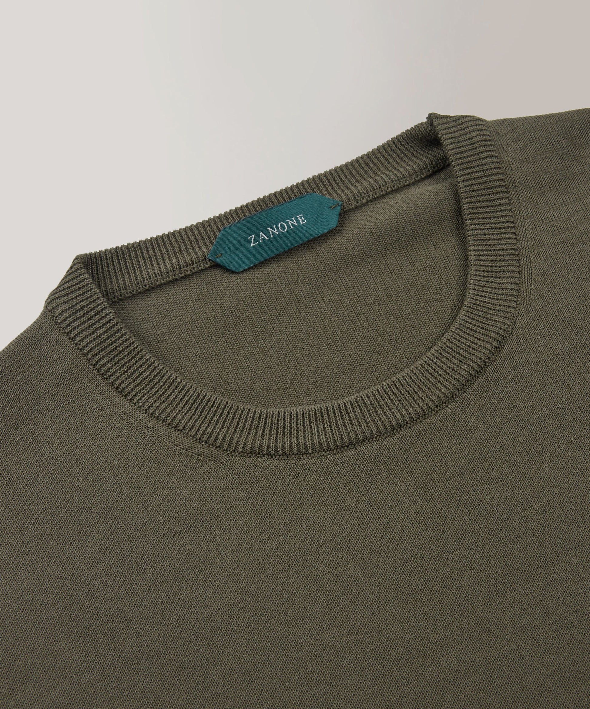 Zanone's research is constantly focused on the selection of the best quality yarns. An example of this is this crepe cotton garment. The surface appears slightly crepe-like for the typical crepe effect, while maintaining the natural softness of cotton. Lightweight, absorbent, easy to wash and care for, this yarn was produced ensuring personal safety and care for the environment and minimising chemicals at all stages of production.
