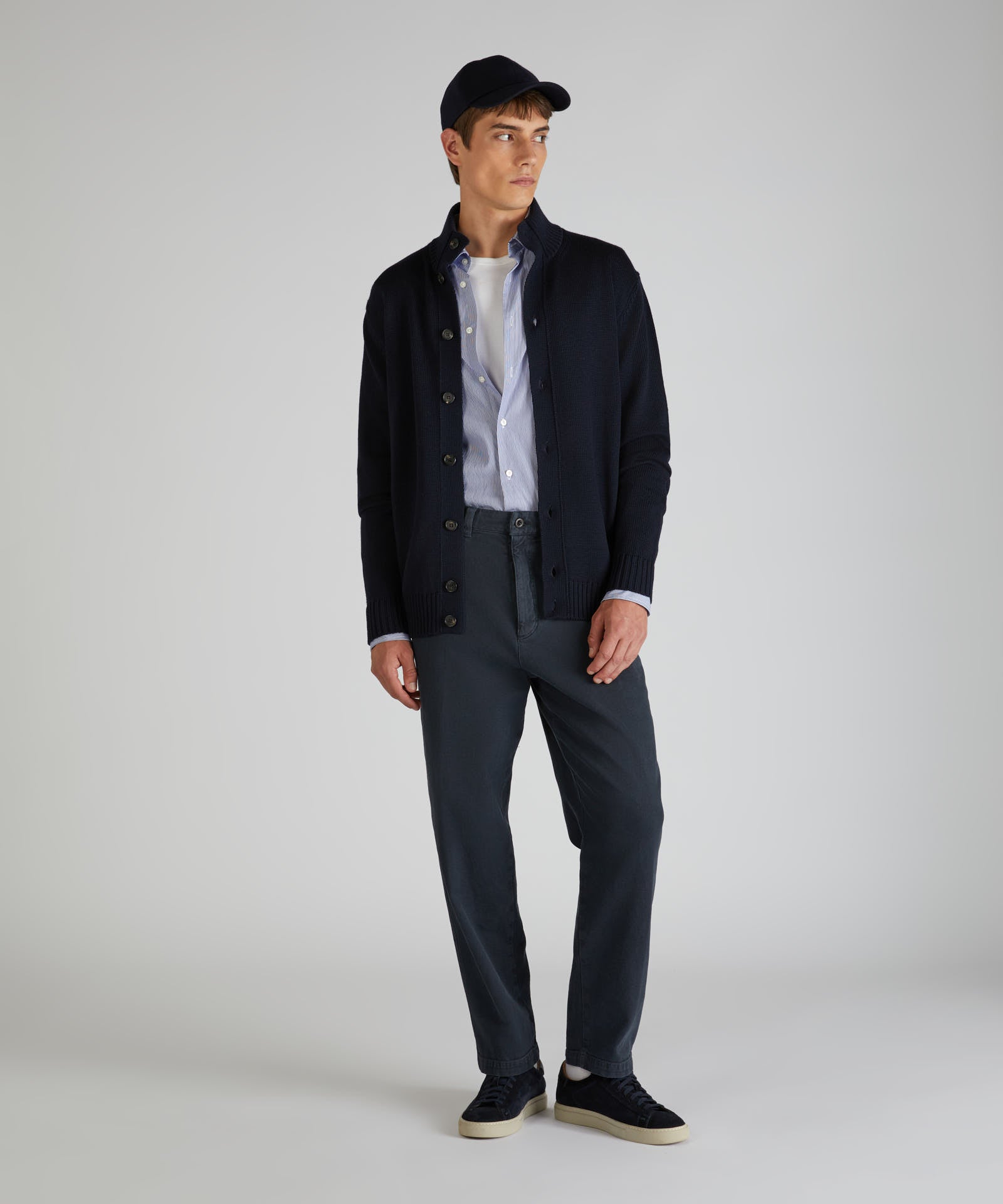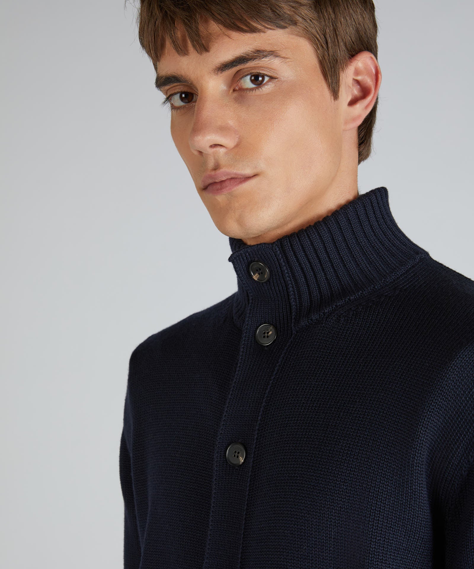 Merino wool is always the first choice for winter wear, thanks to its warmth, softness, breathability and natural elasticity. In addition, the wool chosen for this garment has been obtained using practices and processes that ensure personal safety and care for the environment at all stages of production. It is used here on a turtleneck design, which is elegant and sophisticated by nature.