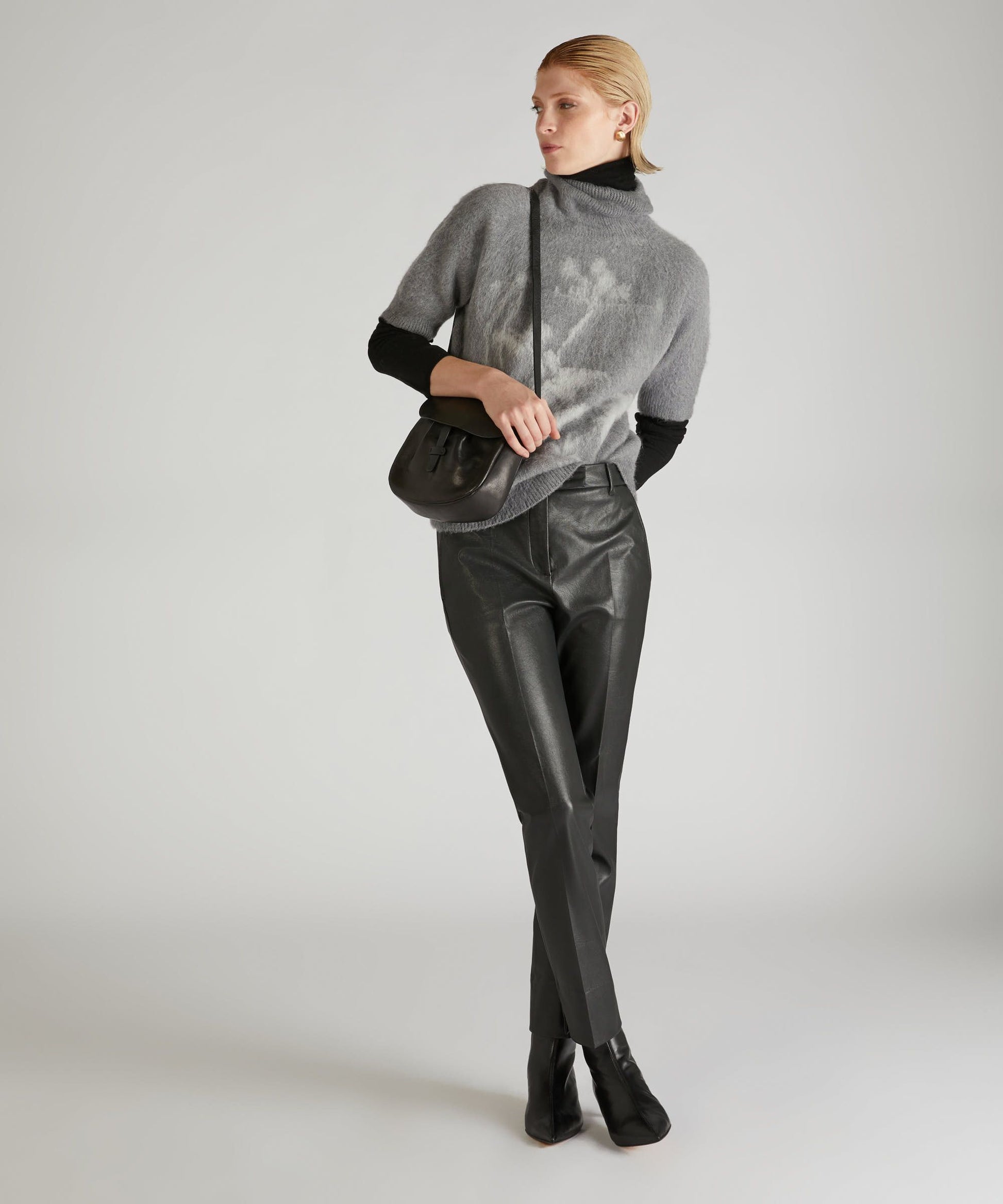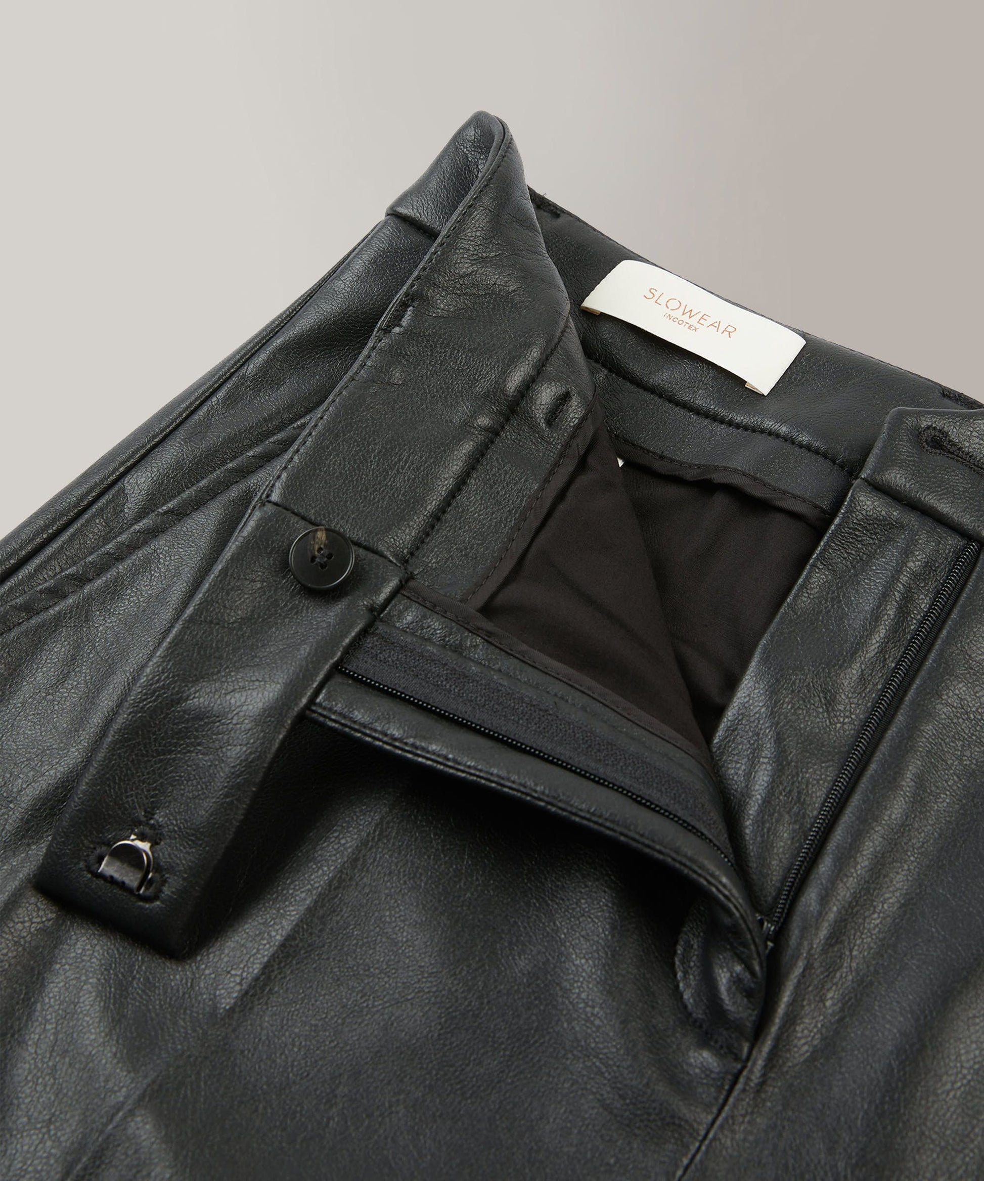 A faux leather garment is always a source of great character and originality, designed for those bolder combinations that do not lose sight of the right dose of refinement. The stretch component provides additional comfort and pleasantness. Here it is used on a model with a slim fit and clean and minimal lines.