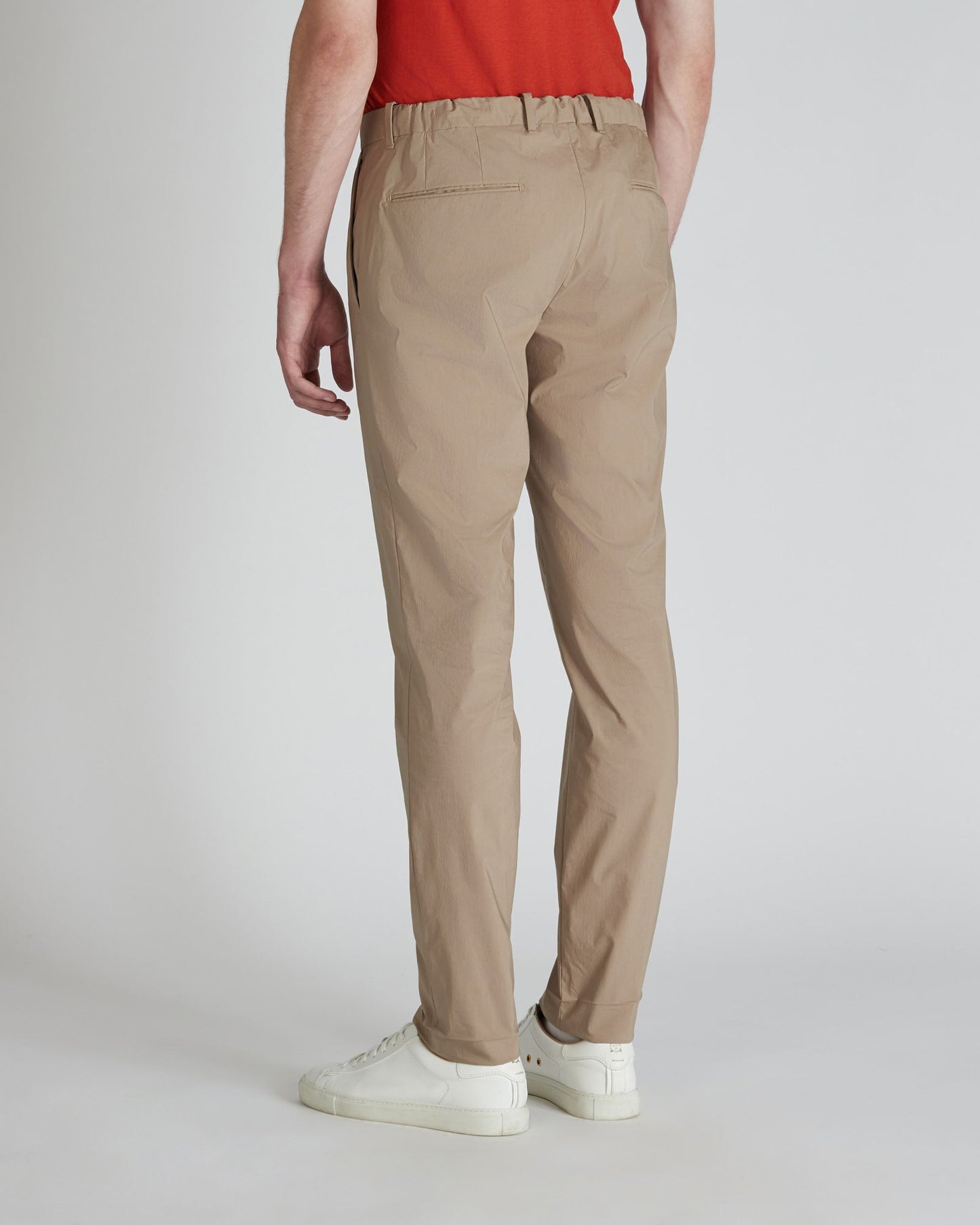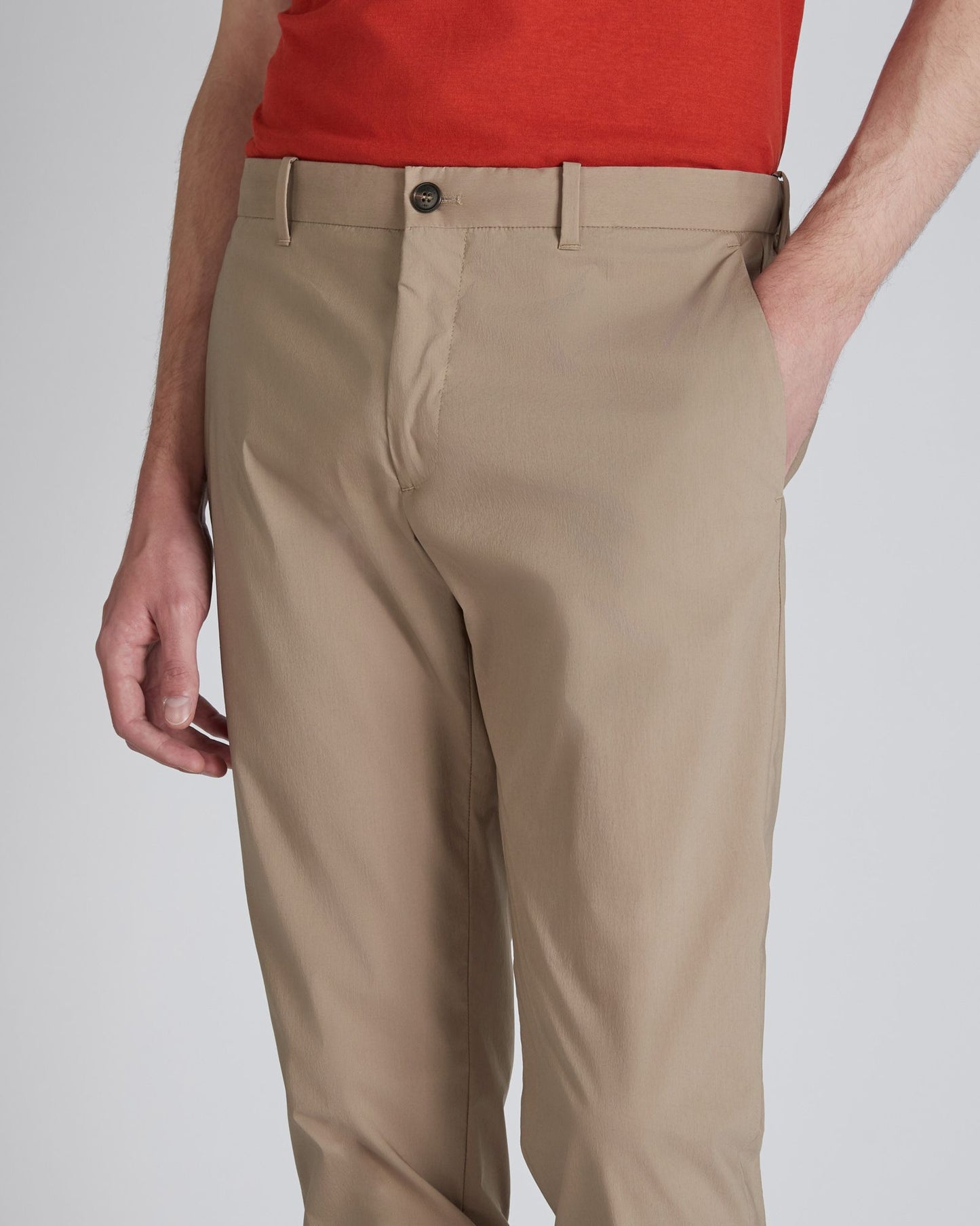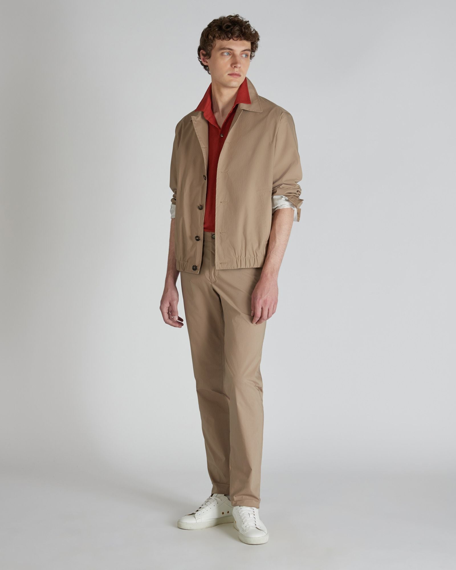 A virtuous combination of natural fibres and high-performance technical fabrics, this garment is designed to meet the needs of a life in the city, divided between work and leisure. The composition of the fabric makes it extremely light, quick to dry and comfortable. The model on which it is used is a historical trouser style from our archive, with attention to detail to combine style and comfort. The trousers can be combined with the jacket in the same fabric.
