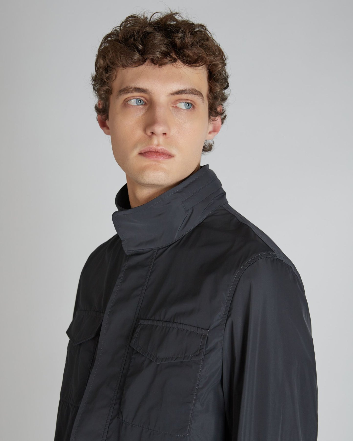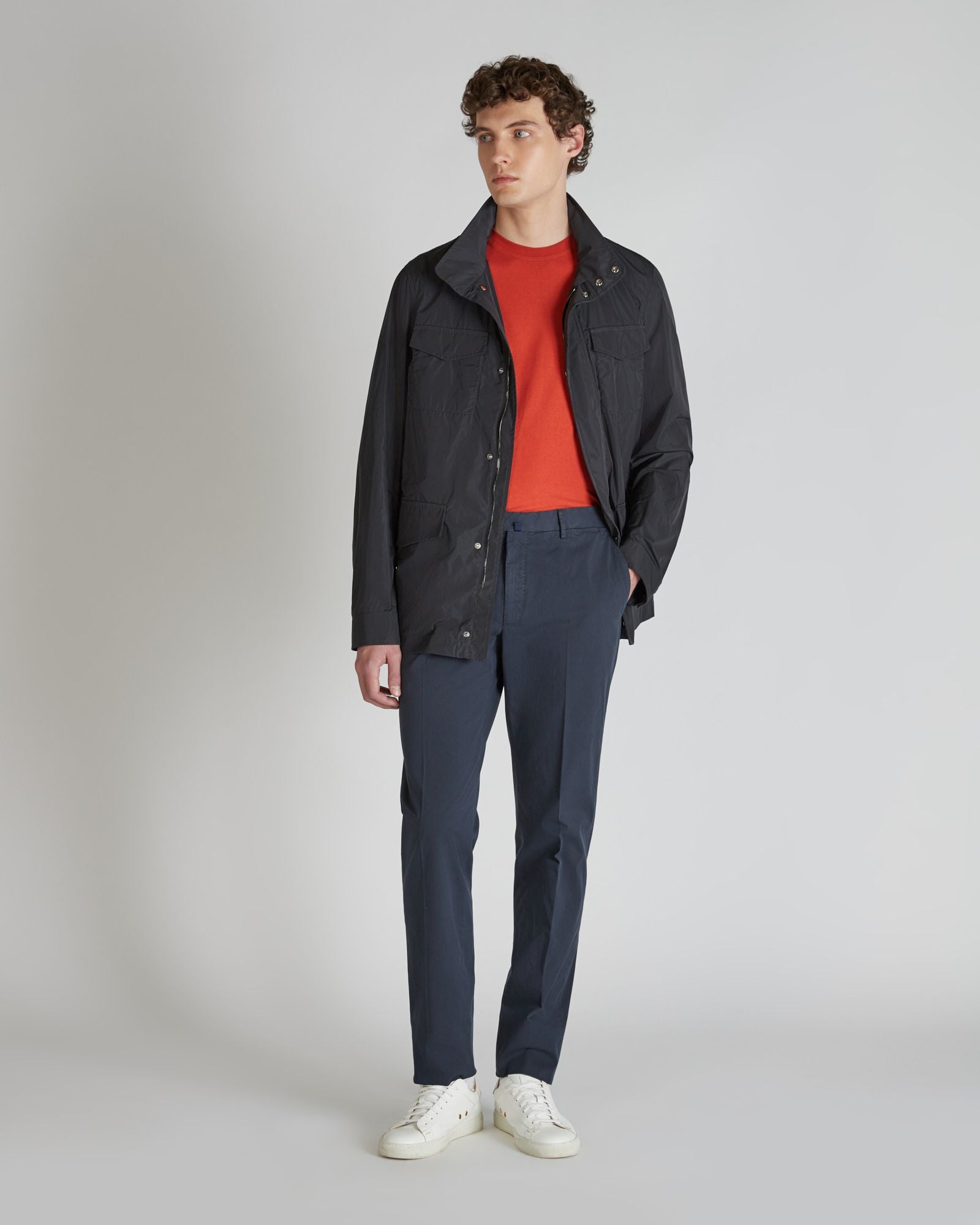 From its military origins, to becoming a key style item of famous actors in major international films, the Field Jacket is one of the most iconic garments in the male wardrobe. This model is freely inspired by the sketches of designer Walter Albini, who created them for the Montedoro brand in the early 1970s. The designer also gave it its name, Franchigia, which Montedoro is now reintroducing as an original and distinctive feature. Here it is offered in a high-performance technical fabric: super lightweight, high density, water-repellent. Moreover, it has been produced through a certified process that ensures worker safety and respect for the environment at all stages of production.