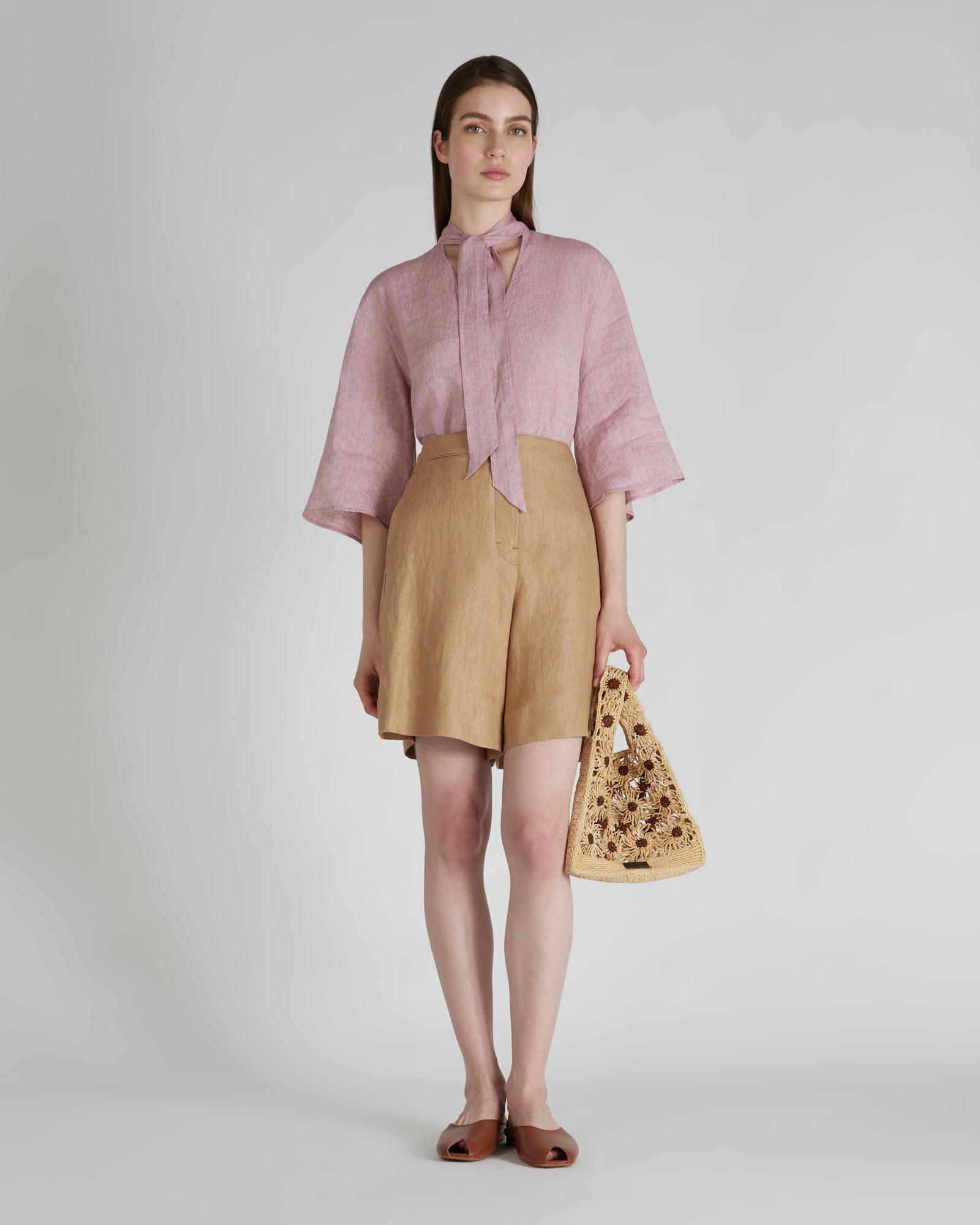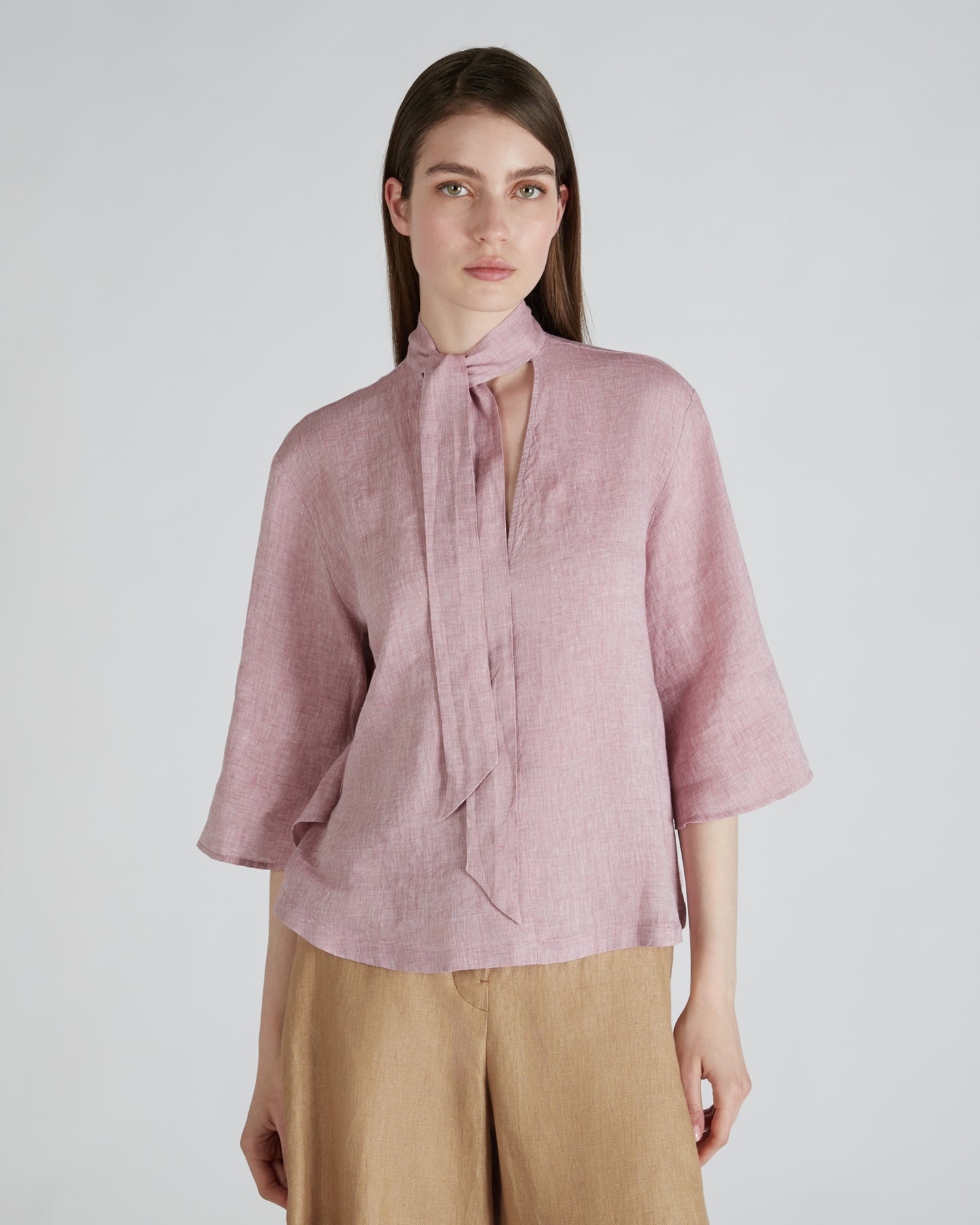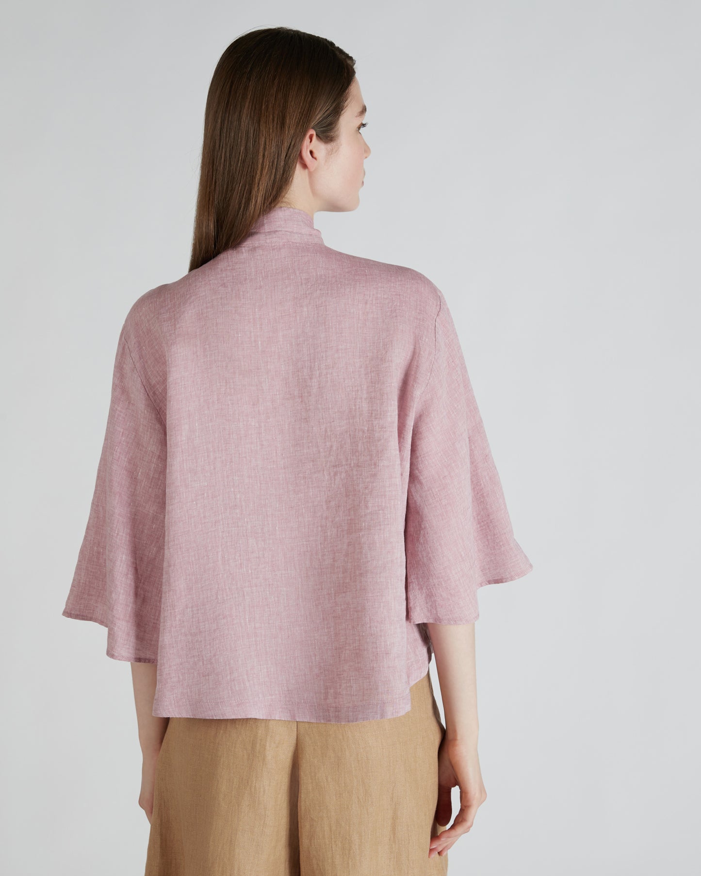 Elegant and refined, the kaftan shirt has a timeless allure and with its soft volumes is a perfect expression of summer lightness. The selected fabric is a soft linen featuring a subtly iridescent appearance that accentuates the garment's summer elegance.