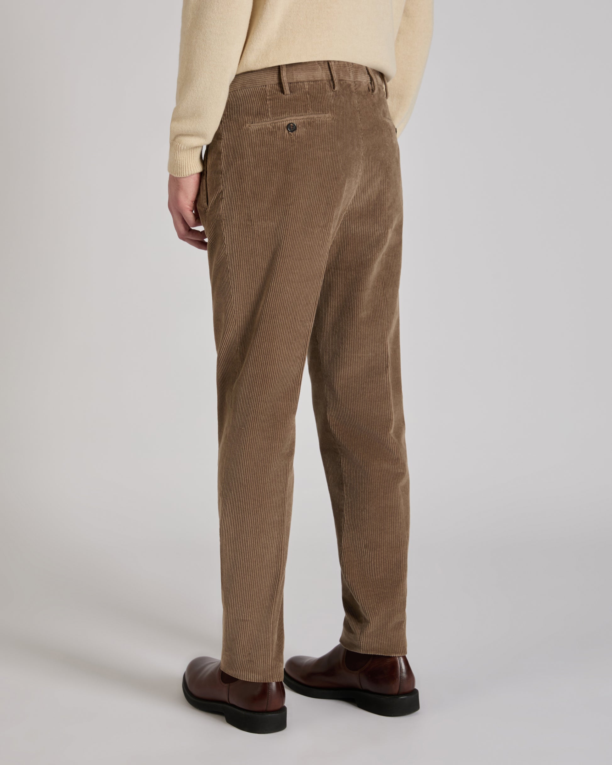 Corduroy is an iconic and timeless fabric, a truly essential feature of the winter wardrobe. In these trousers, the soft and comfortable feel of corduroy – which contributes to its undeniable success – meets a tapered fit, which thanks to the soft lines at the waist provides unprecedented comfort.
