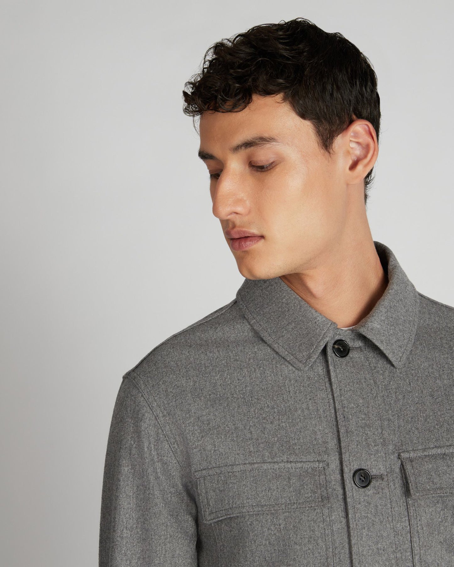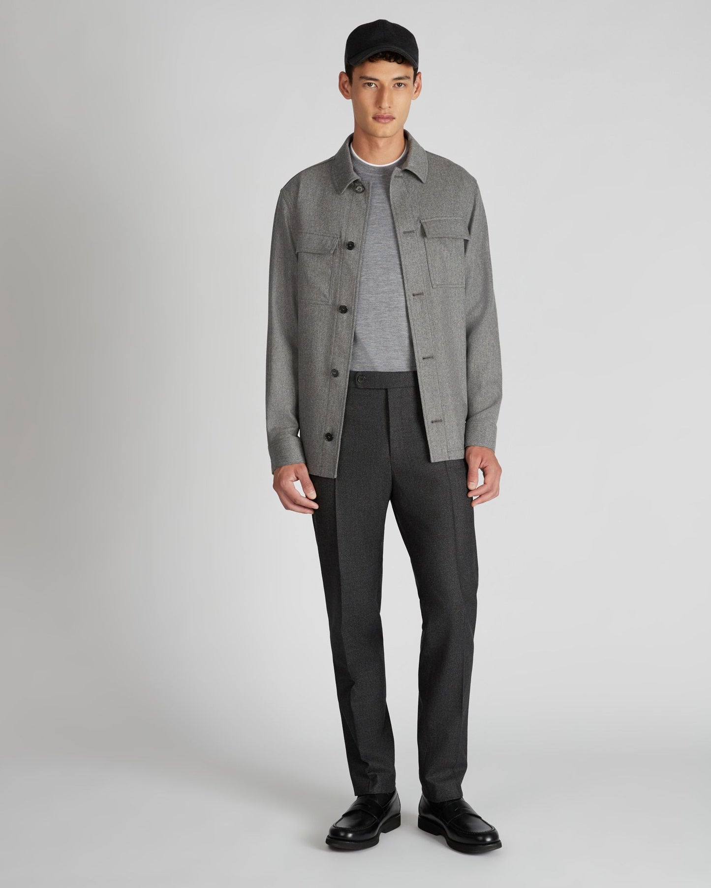 The quality of the materials and the refinement of exclusive models. In short, it is the expression of contemporary tailoring, bringing fresh rhythm to the wardrobe. Soft, warm wool meets the silkiness and lightness of cashmere to create a sophisticated yet functional winter garment. The fabric has been produced using a certified process, minimising harmful chemicals at all stages of production. The blouse, an elegant sartorial upgrade of casual outerwear, pairs perfectly with the trousers crafted from the same fabric, resulting in an outfit of outstanding style and sophistication.