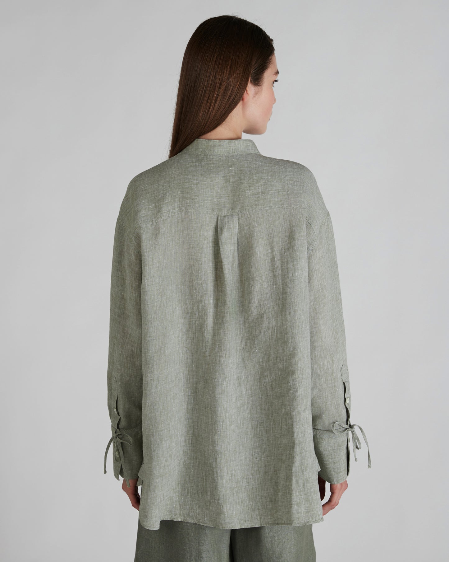 Linen is one of the world's oldest textile fibres. Centuries of innovation and research have consolidated its prominent role in women's dress. Much favoured for its subtly iridescent appearance, it is lightweight yet resilient and extremely pleasant to wear throughout the day. Combined with a shirt featuring contemporary broad lines, the result is a versatile garment that is the perfect expression of summer lightness.