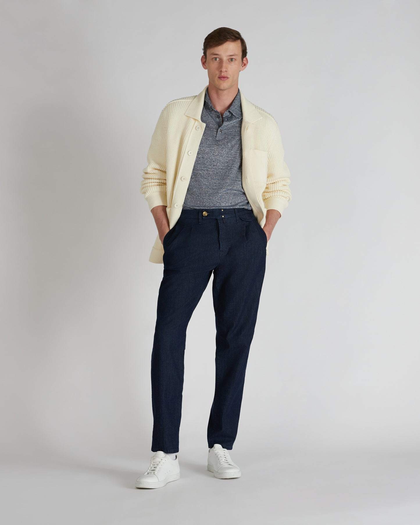 When denim meets tailoring, the result is a five-pocket trouser that redefines the essence of the garment. This is the goal of the Incotex Blue Division brand, which here offers a tapered model with a tight-fitting lower leg. Inspired by the very best in tailoring tradition, as you can see from the welt pockets on the front and the double pleat, which makes the garment soft and spacious.