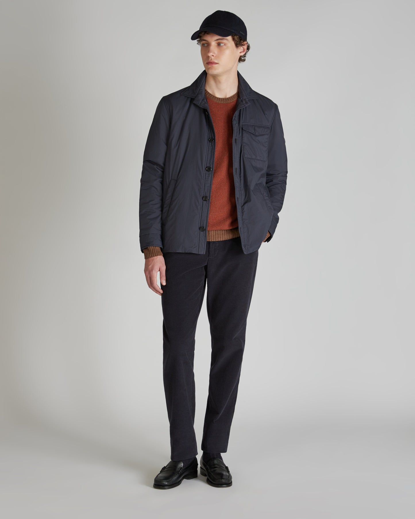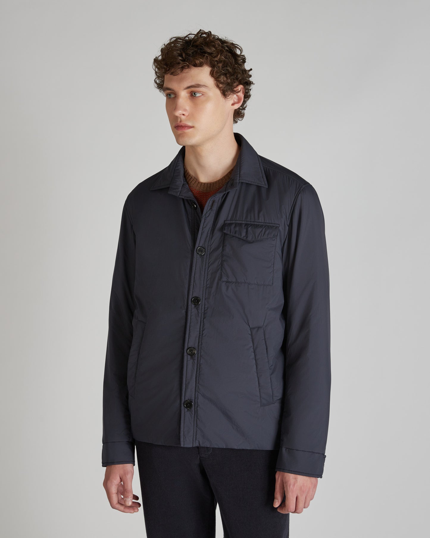 The epitome of outerwear, this piece will become the centrepiece of the season's wardrobe thanks to its fine details and incomparable comfort. On the outside, it is made of a water-repellent technical fabric treated with a polyurethane resin to ensure maximum protection and water repellence. The light padding delivers additional comfort and warmth. In the detailing, there are clear references to the world of shirtmaking, for a garment that unites refined style with high performance.