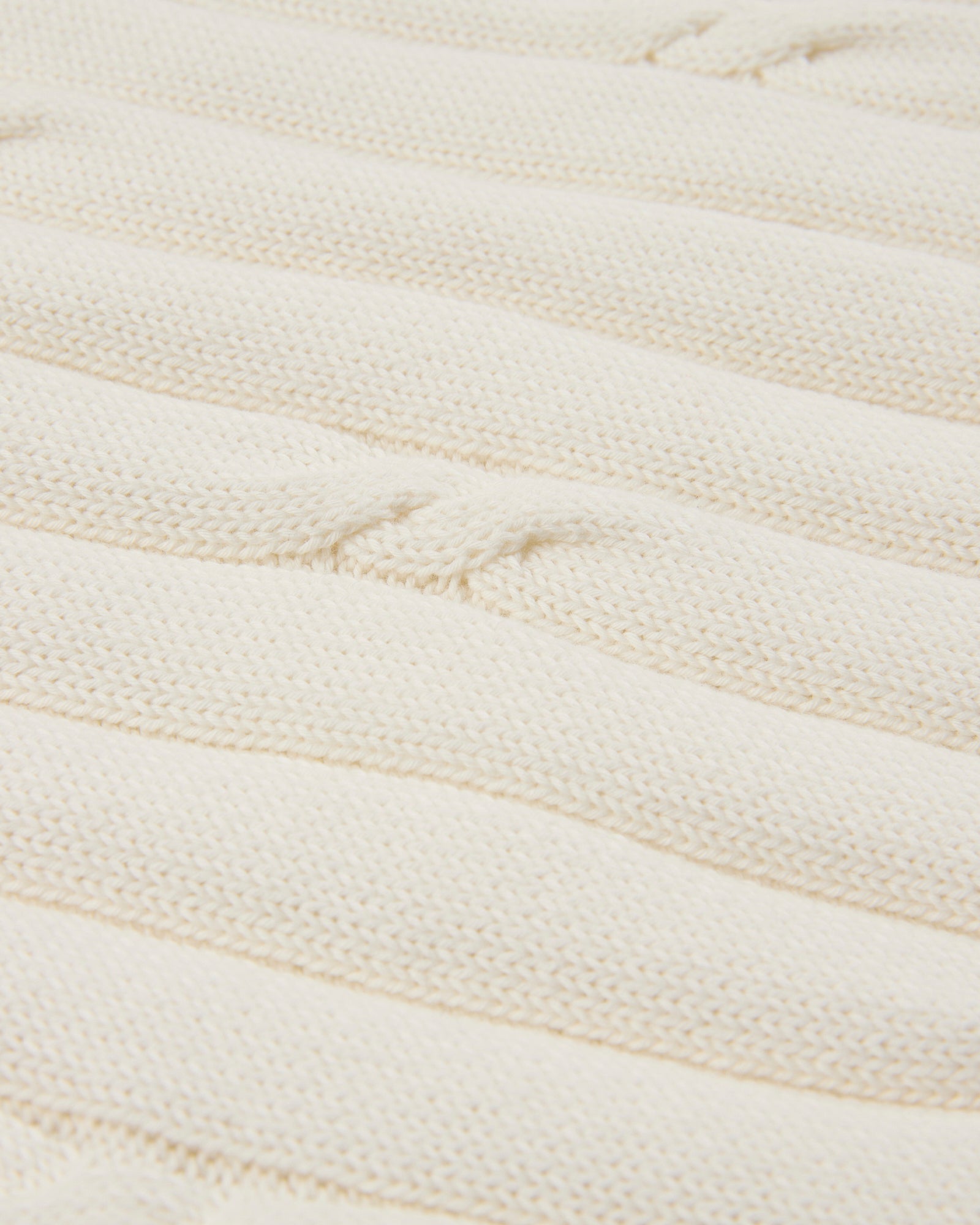 A stylistic nod to the sophistication of the most exclusive sports clubs, this piece of knitwear combines high-quality materials with extremely elegant taste. The fabric chosen is organic cotton produced through a certified process that guarantees the safety of people and the environment and minimises harmful chemicals in all stages of production. The asymmetric braided detailing adds texture and originality, likewise the contrasting collar detail.