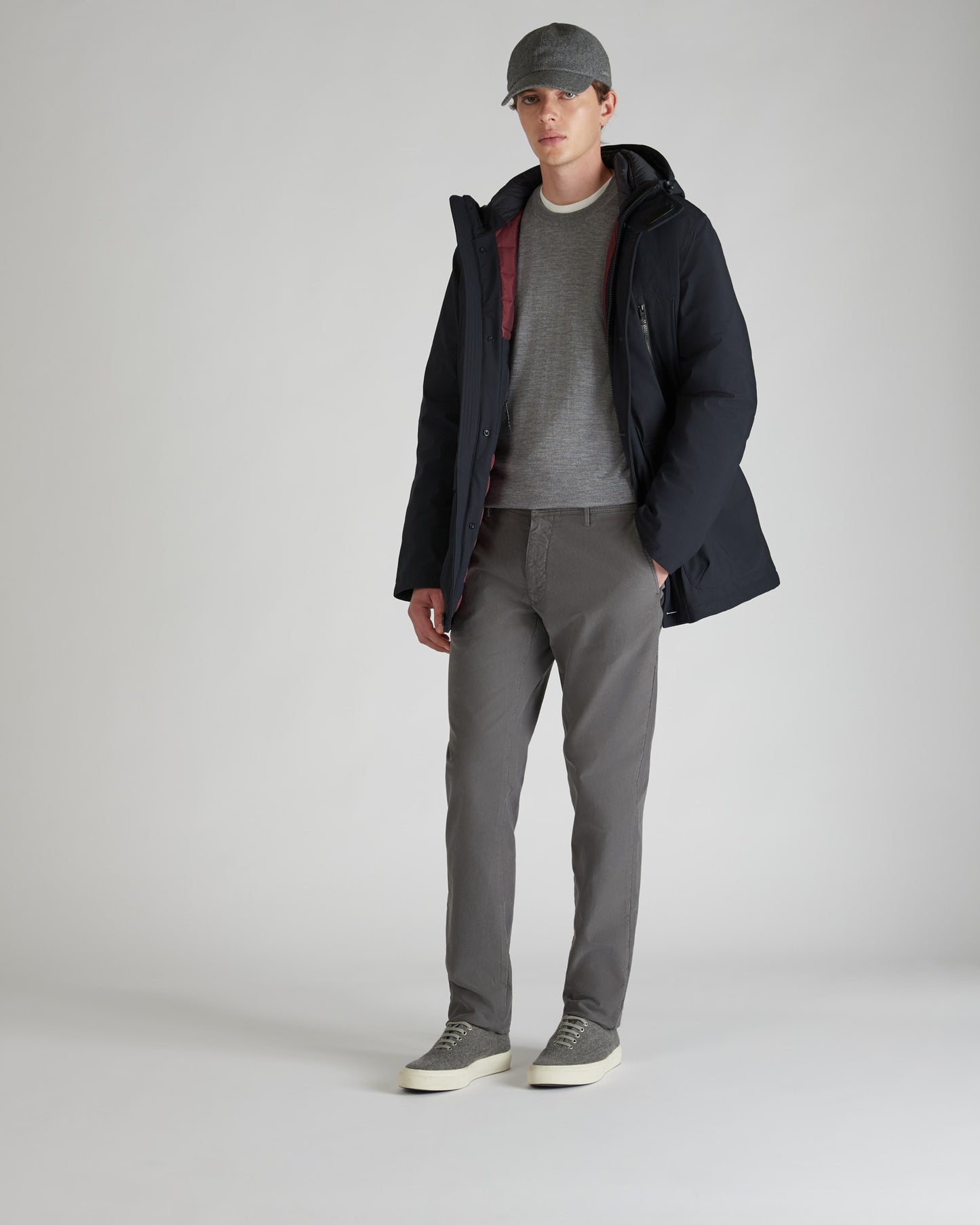 Tricochino is an iconic fabric from the Incotex range, combining the refined texture of tricotine with the classic diagonal weave of a chino. The result is a resilient and compact yet comfortable fabric. Moreover, the cotton used is also produced through a certified process that guarantees the safety of people and the environment and the minimisation of harmful chemicals at all stages of production.