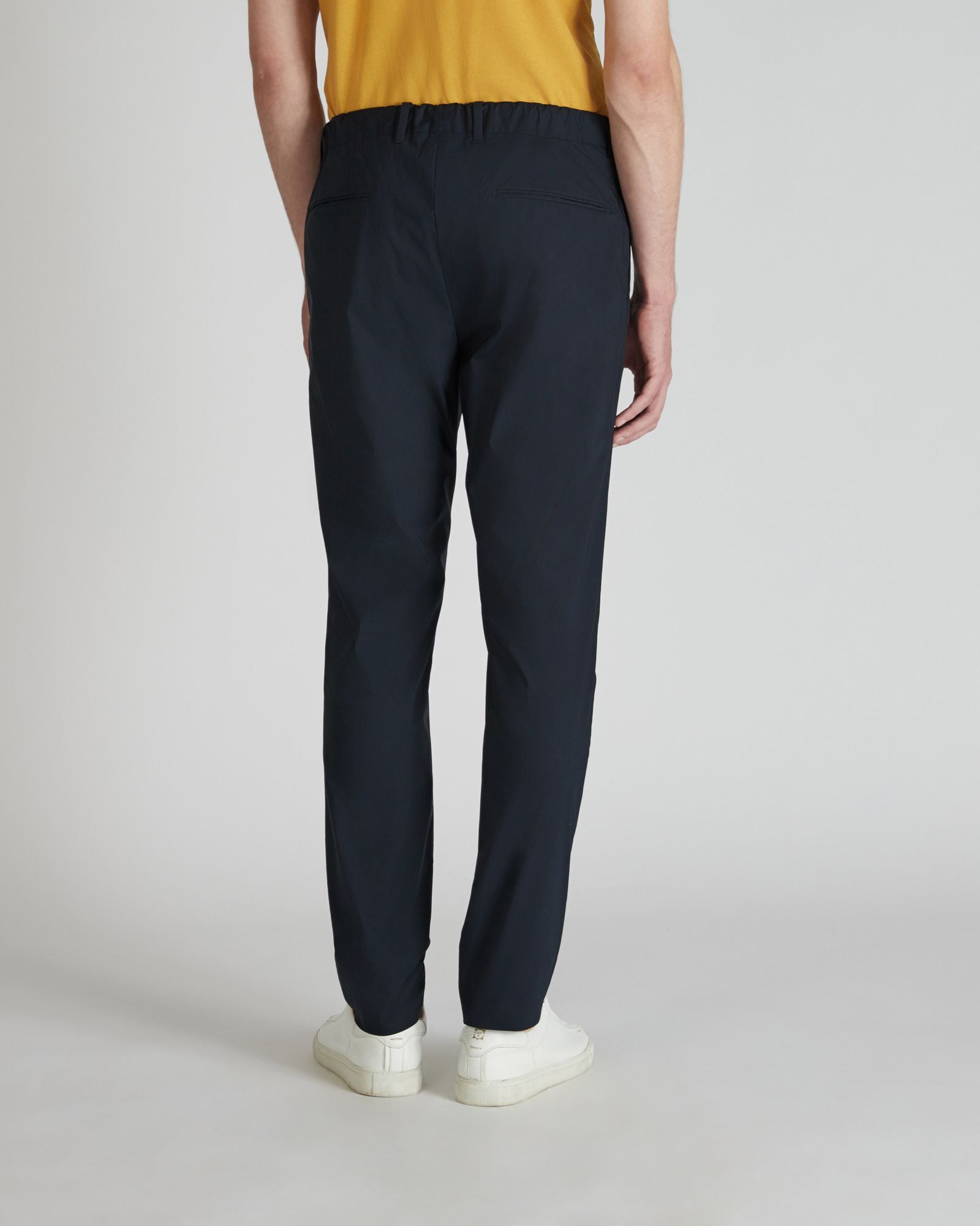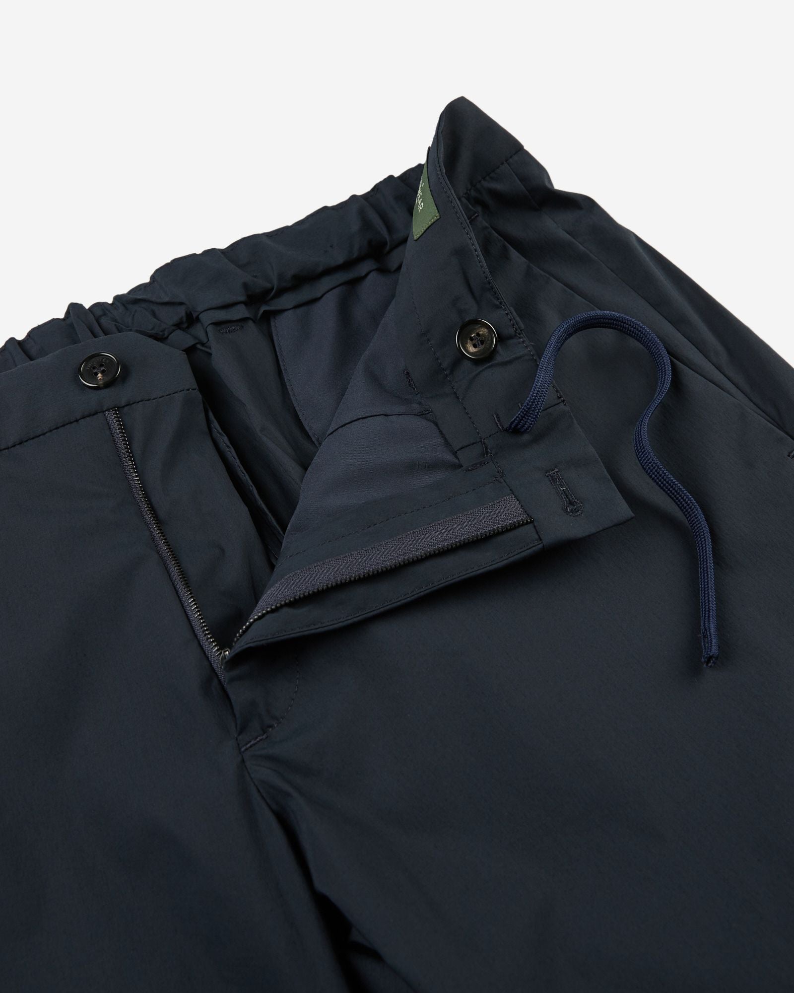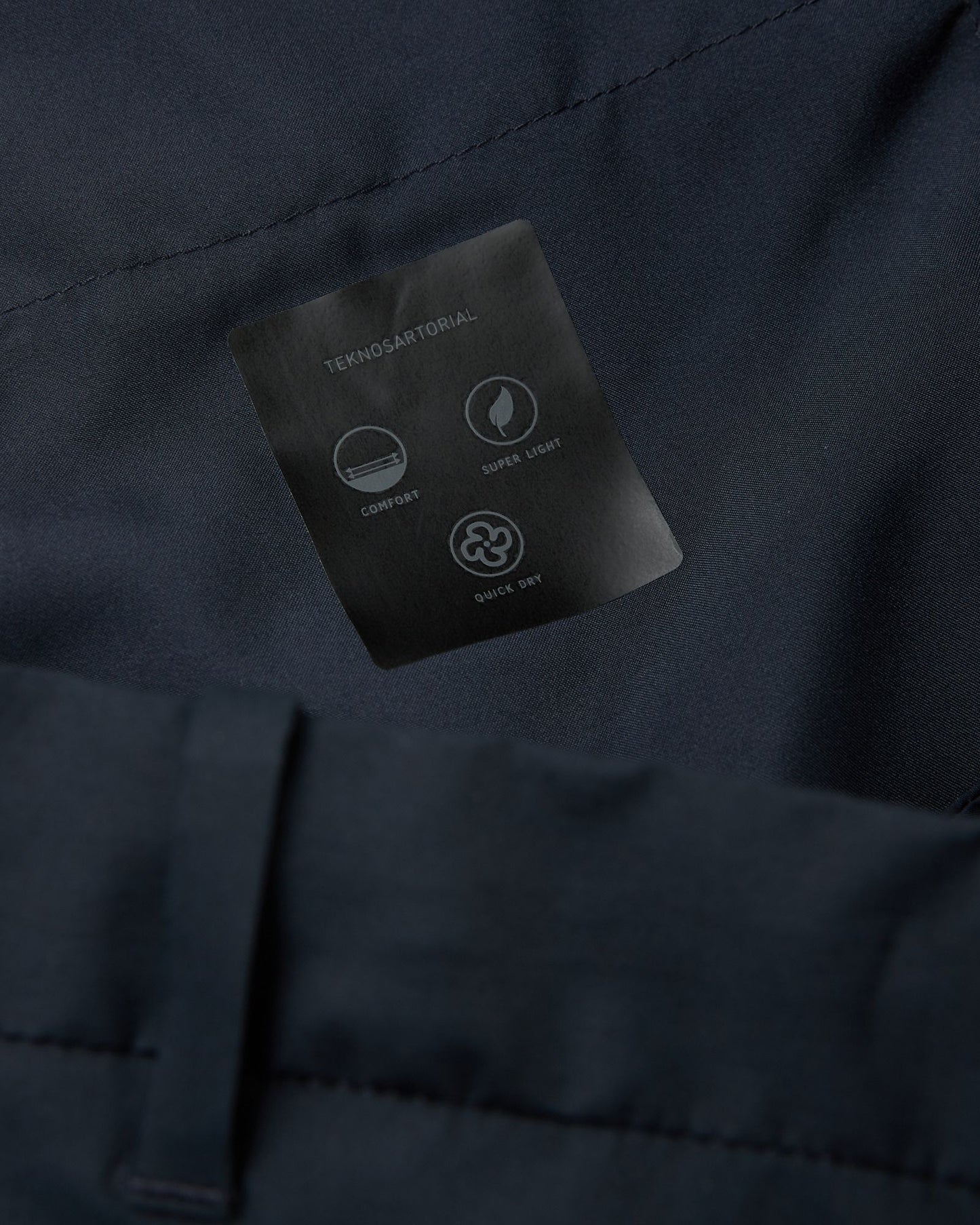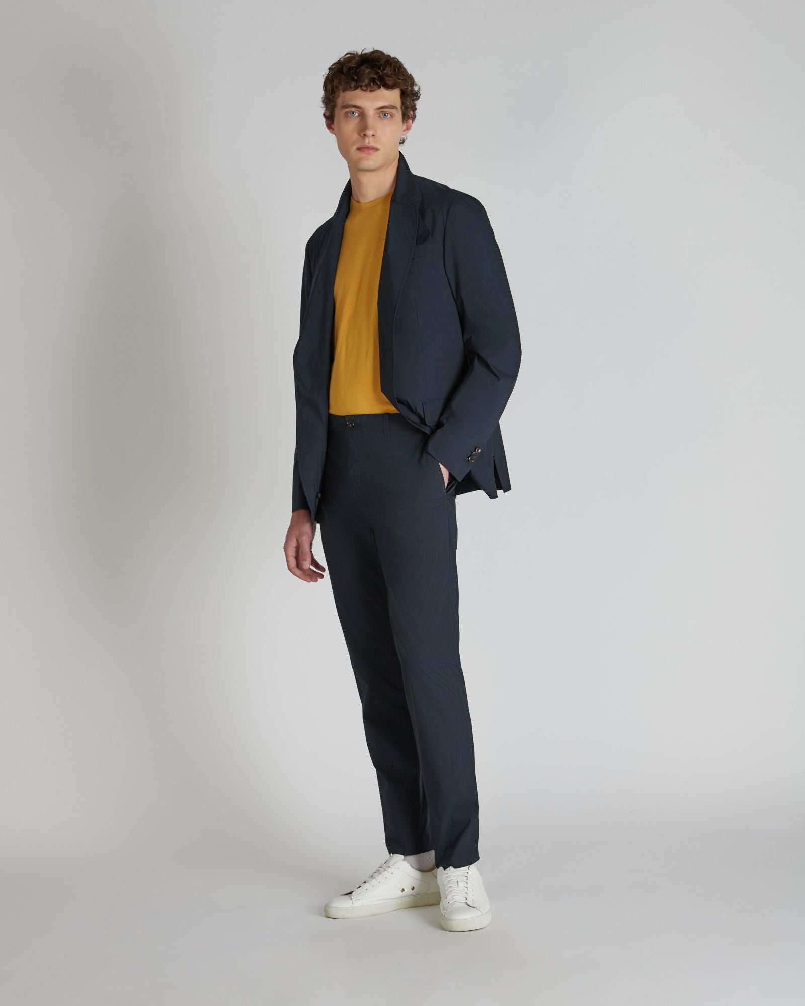 A virtuous combination of natural fibres and high-performance technical fabrics, this garment is designed to meet the needs of a life in the city, divided between work and leisure. The composition of the fabric makes it extremely light, quick to dry and comfortable. The model on which it is used is a historical trouser style from our archive, with attention to detail to combine style and comfort. The trousers can be combined with the jacket in the same fabric.