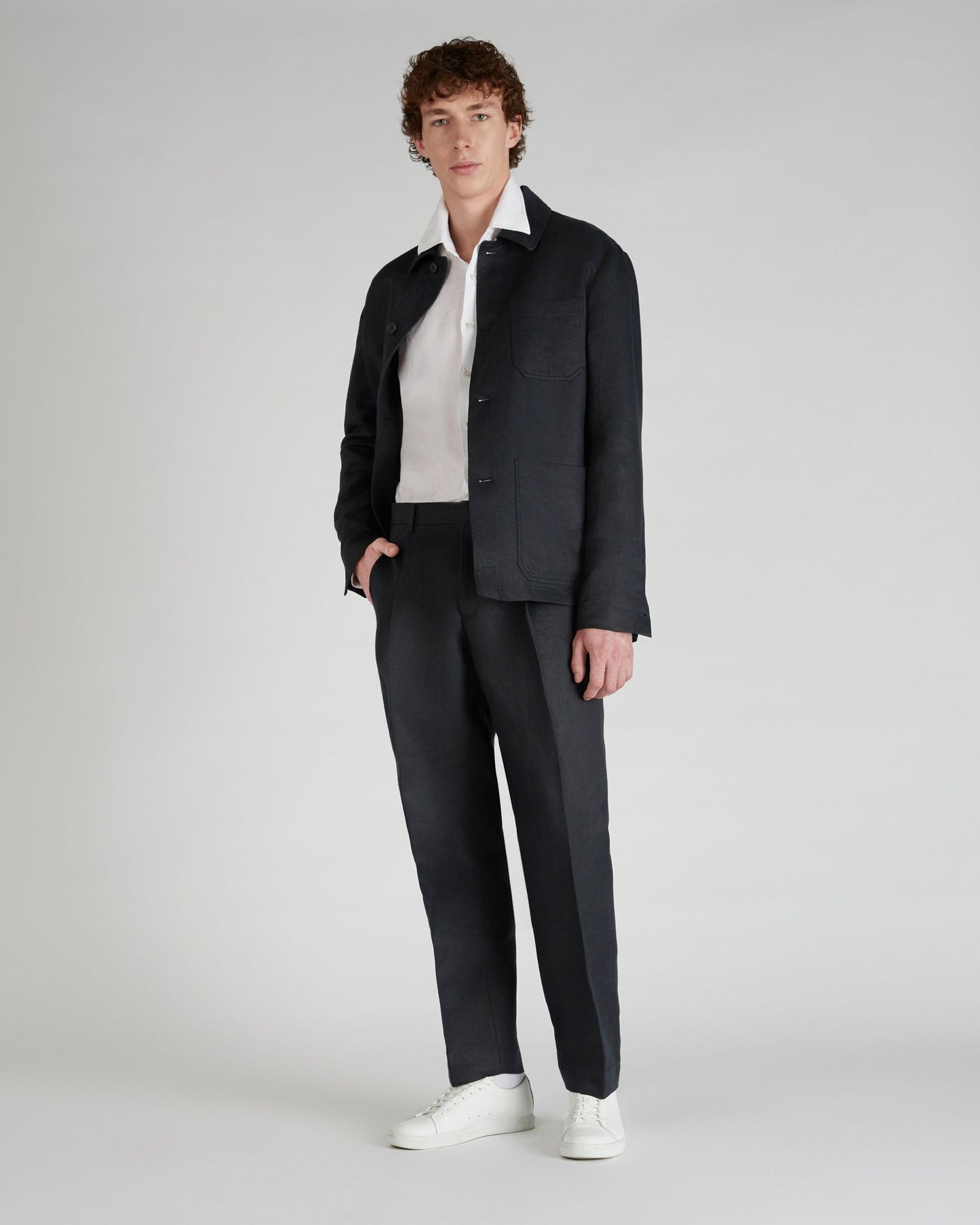 The ultimate expression of refined style and high tailoring, these trousers encapsulate the quintessence of the brand. The model is a sophisticated seamless one: without the seam on the outer leg, it presents a surface continuity that contributes to making the volumes extremely soft and contemporary. The fabric is a luxurious linen, chosen for its superior quality and enhanced with a finish that makes it particularly shiny and elegant. The trousers can be paired with the jacket made from the same fabric.