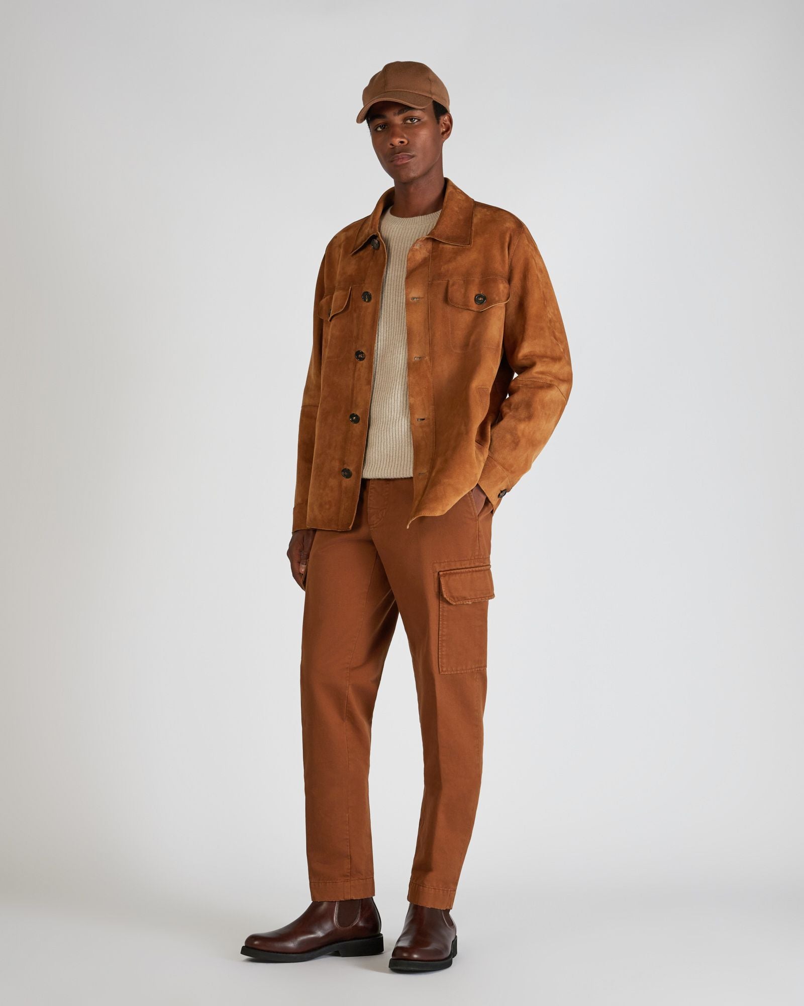 - La surchemise présente une fermeture boutonnée sur le devant, des poches latérales, des poches supérieures à rabat plaquées, un col et un poignet façon chemise.