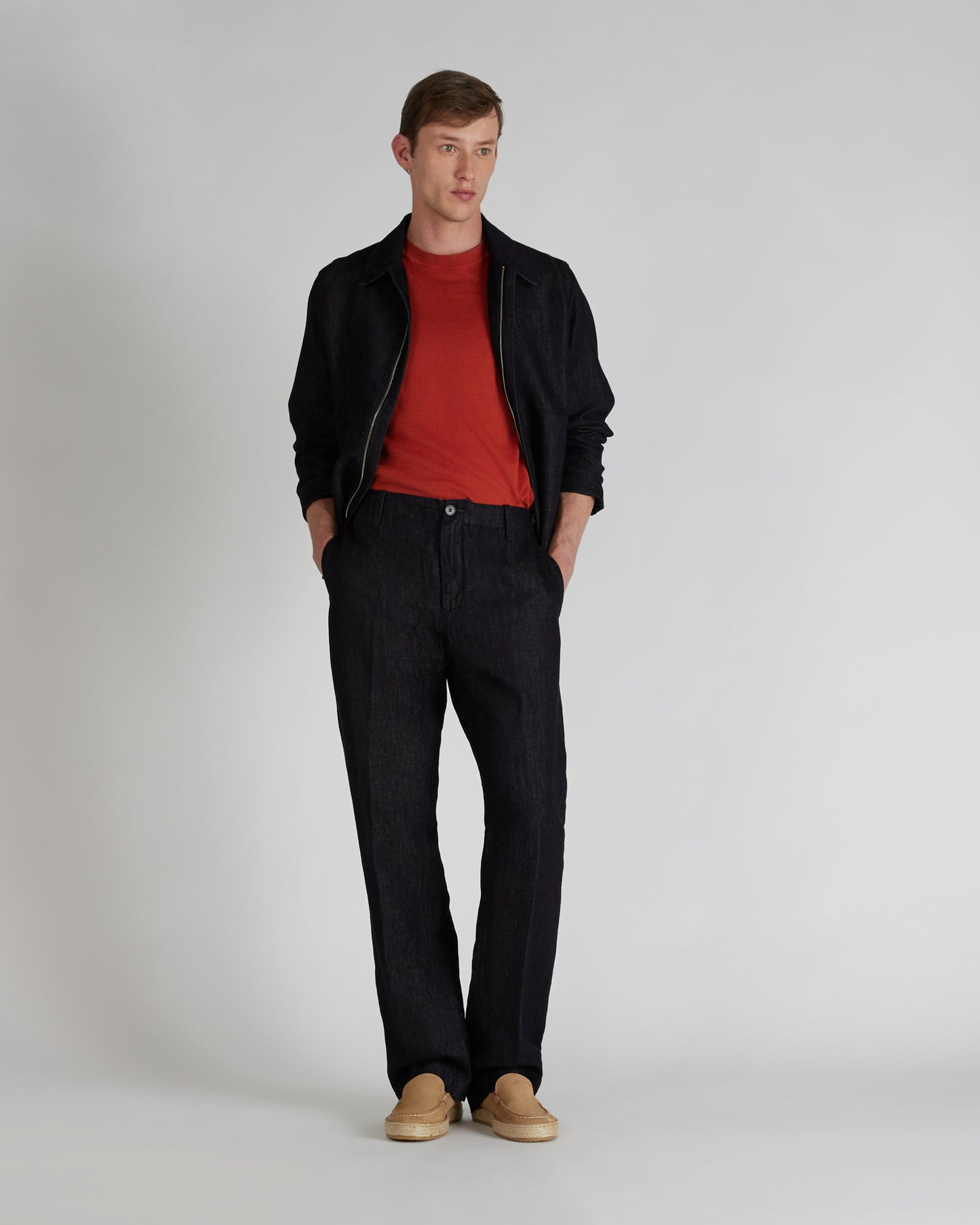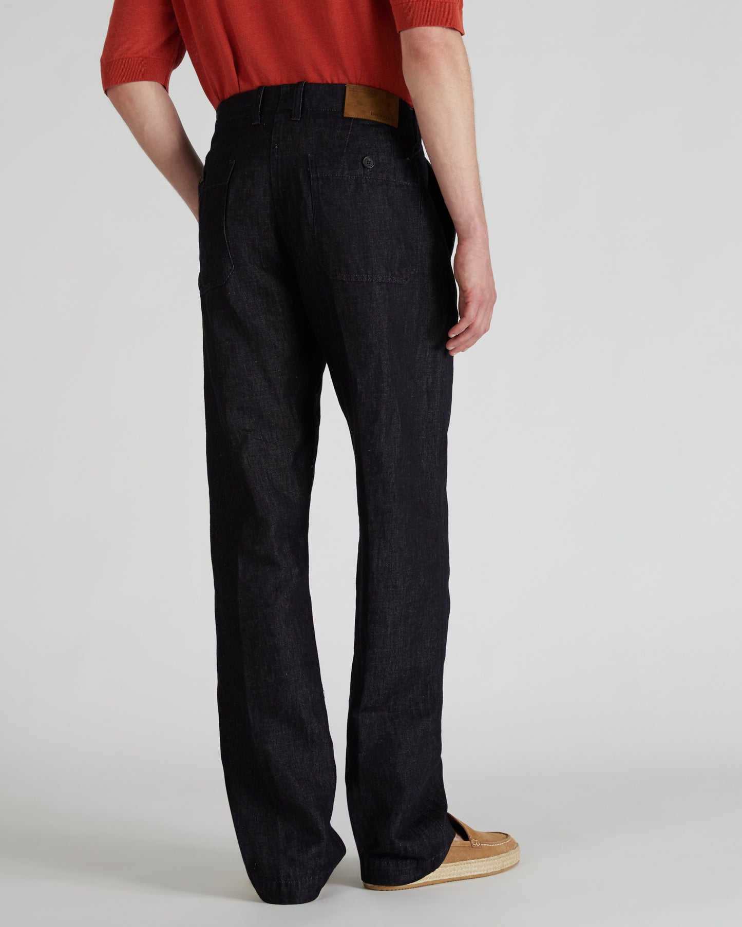 Pantalon regular fit en denim de coton et lin