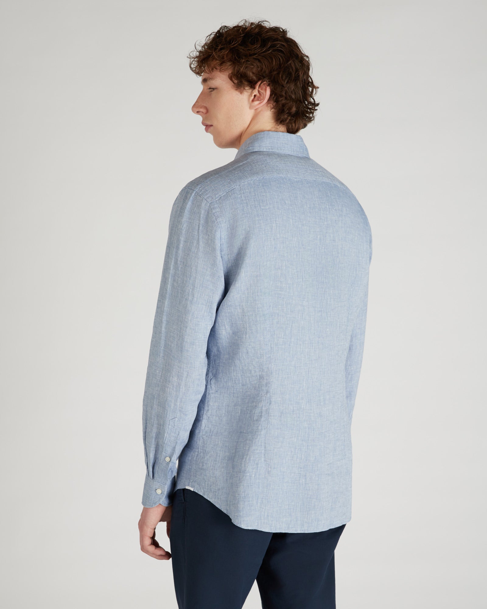 - La camicia presenta collo italiano, carré e pince posteriore.