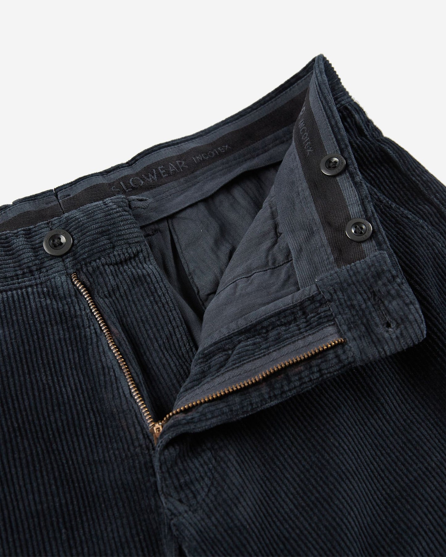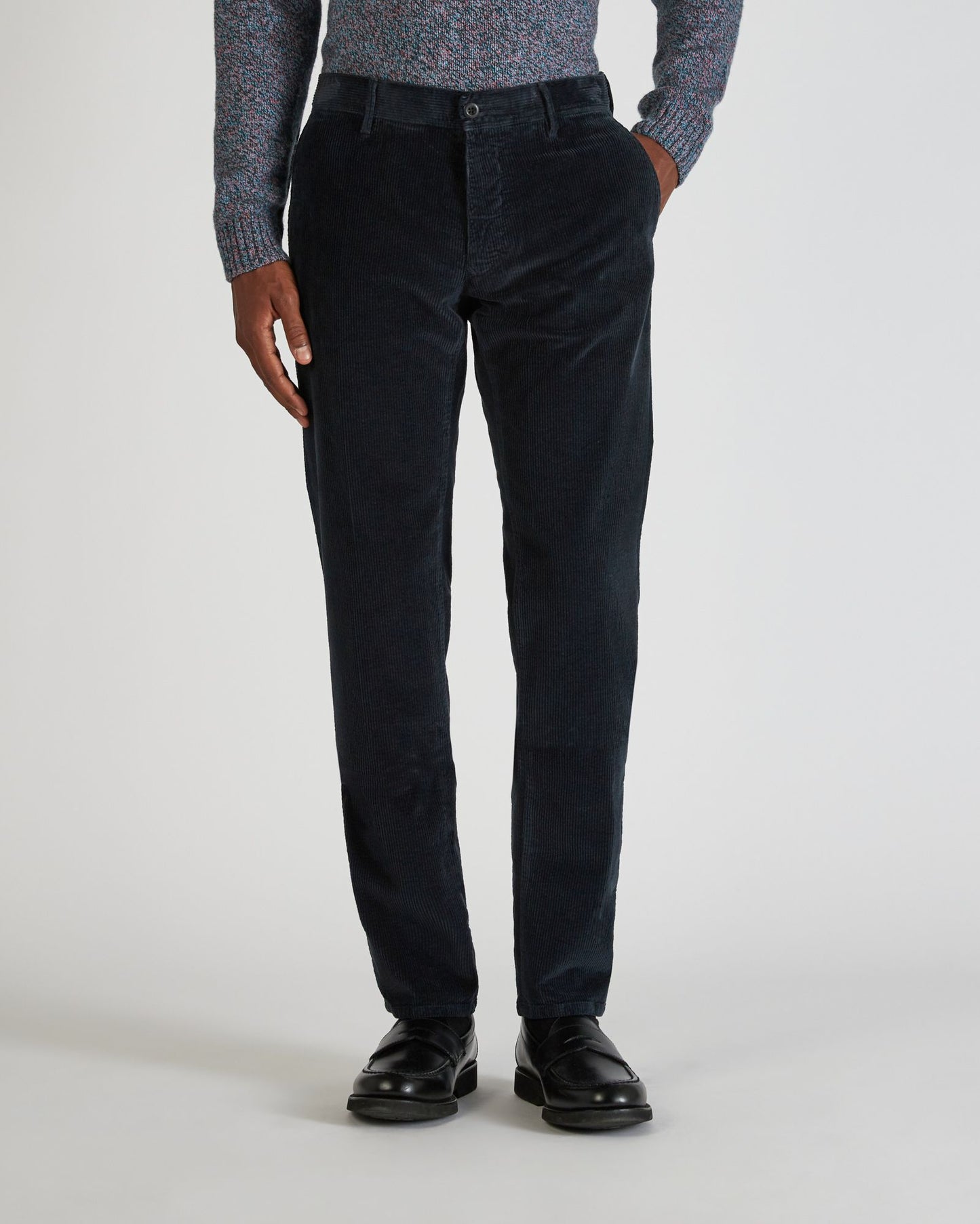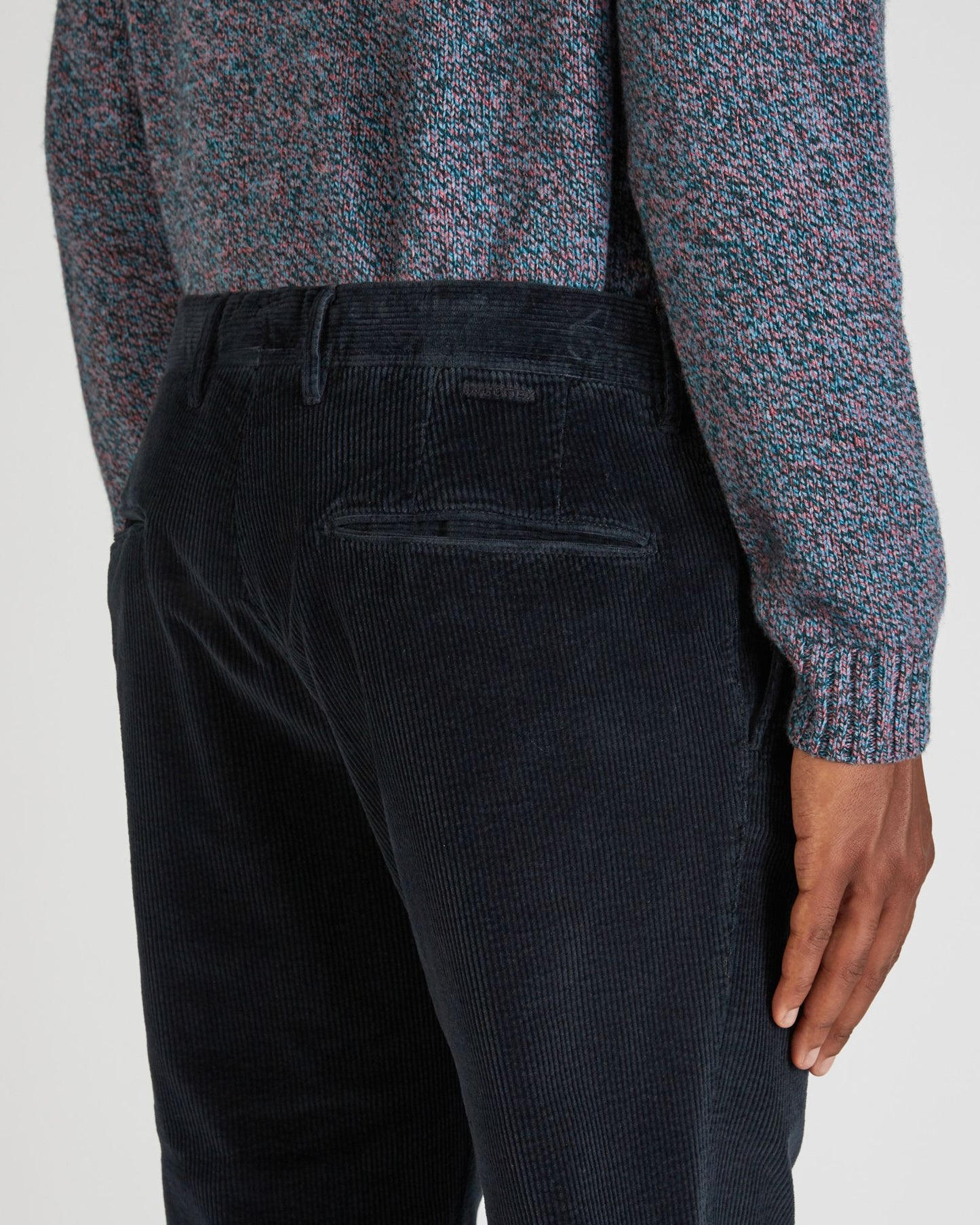 - Il pantalone presenta tasche anteriori america, tasche posteriori in doppio filetto.