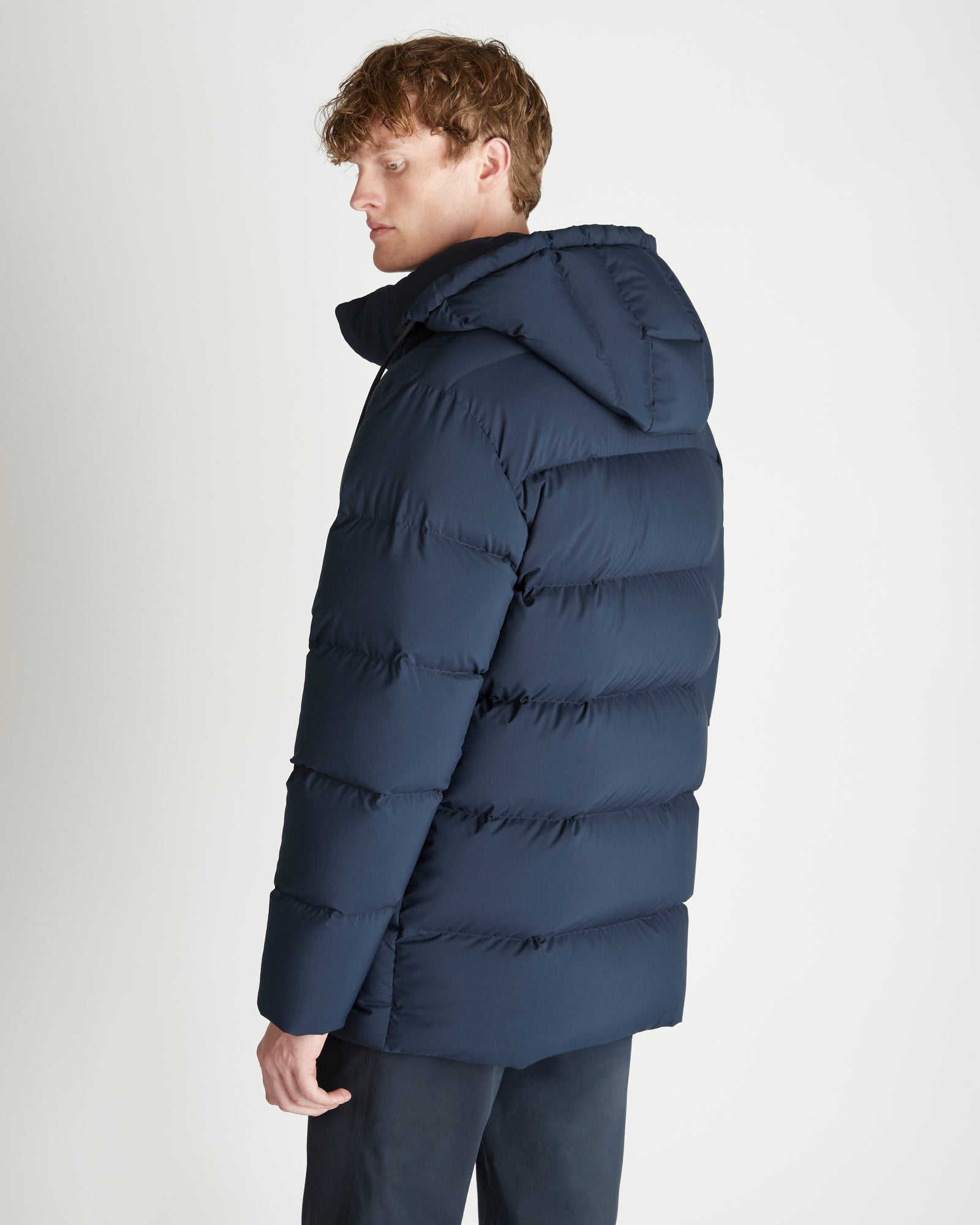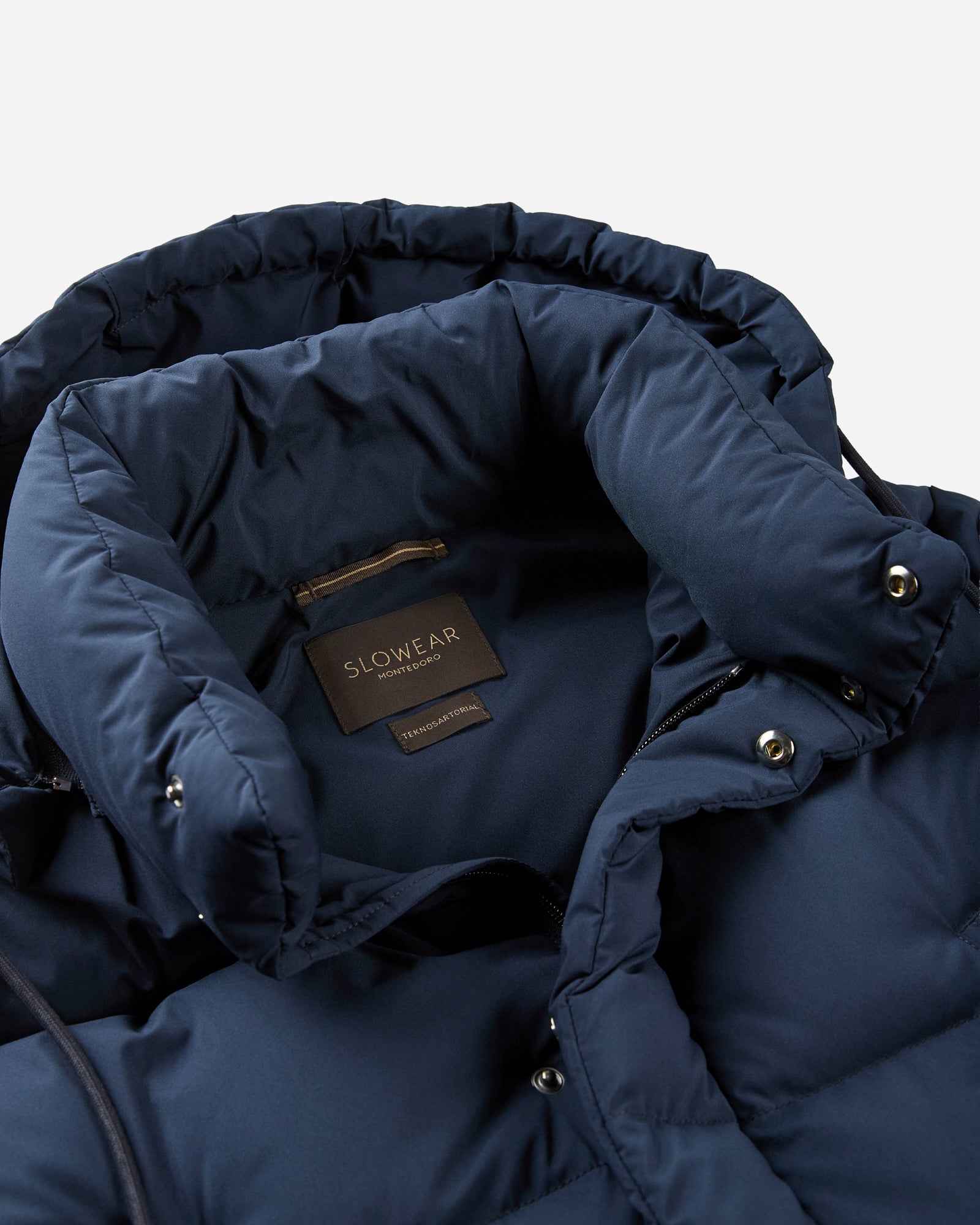 Piumino lungo in tessuto tecnico e imbottitura