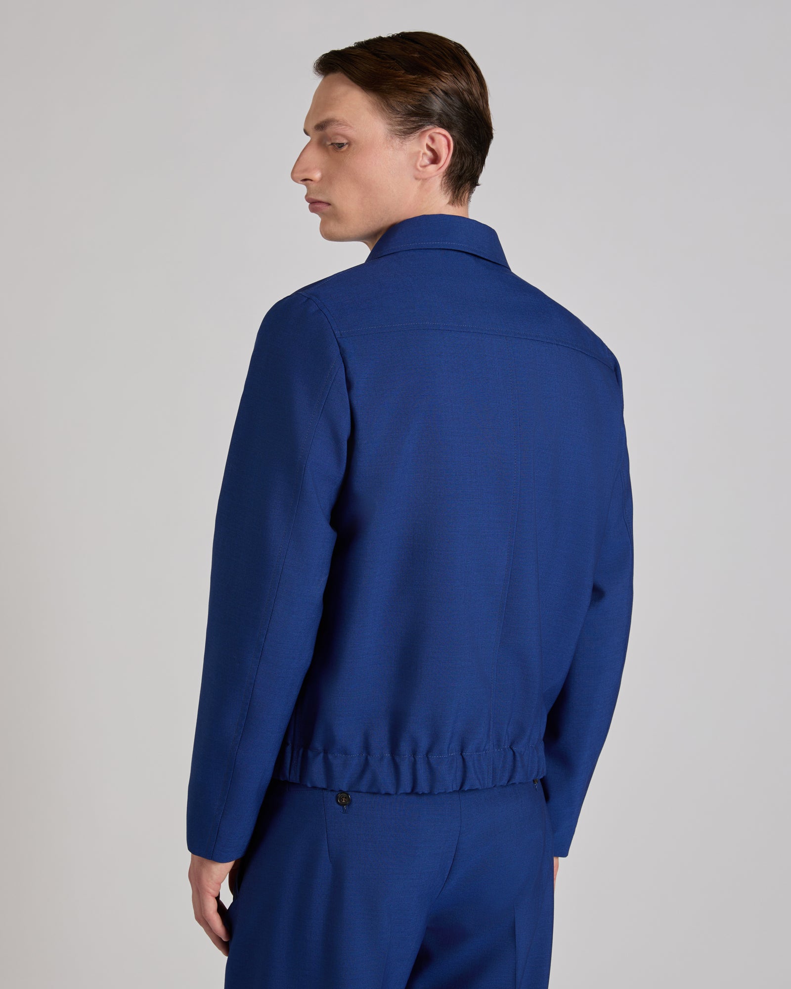 - Il bomber è completamente foderato e presenta chiusura con zip in metallo spazzolato a doppio cursore, tasche interne con chiusura a bottone, tasche esterne a doppio filetto che richiamano quelle del pantalone, taschino con bottone, polso finito con elastico nascosto.