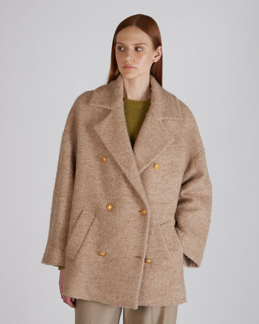 ウールとアルパカ・スリムフィットスタンドカラーカーディガン