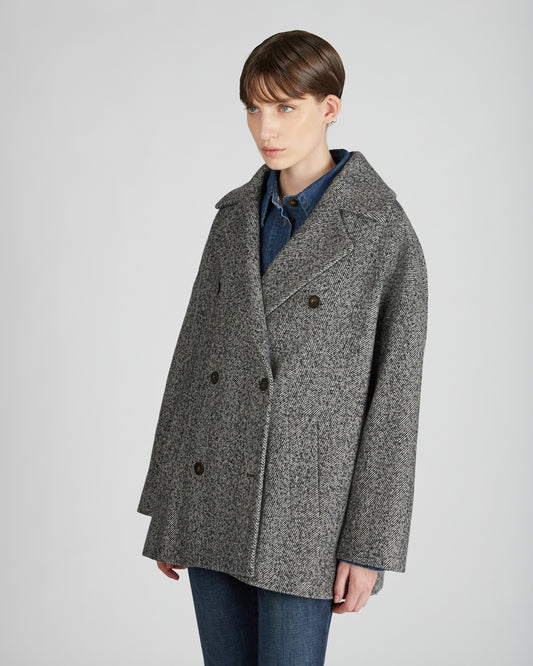 ウールヘリンボーン・ワイドフィットピーコート