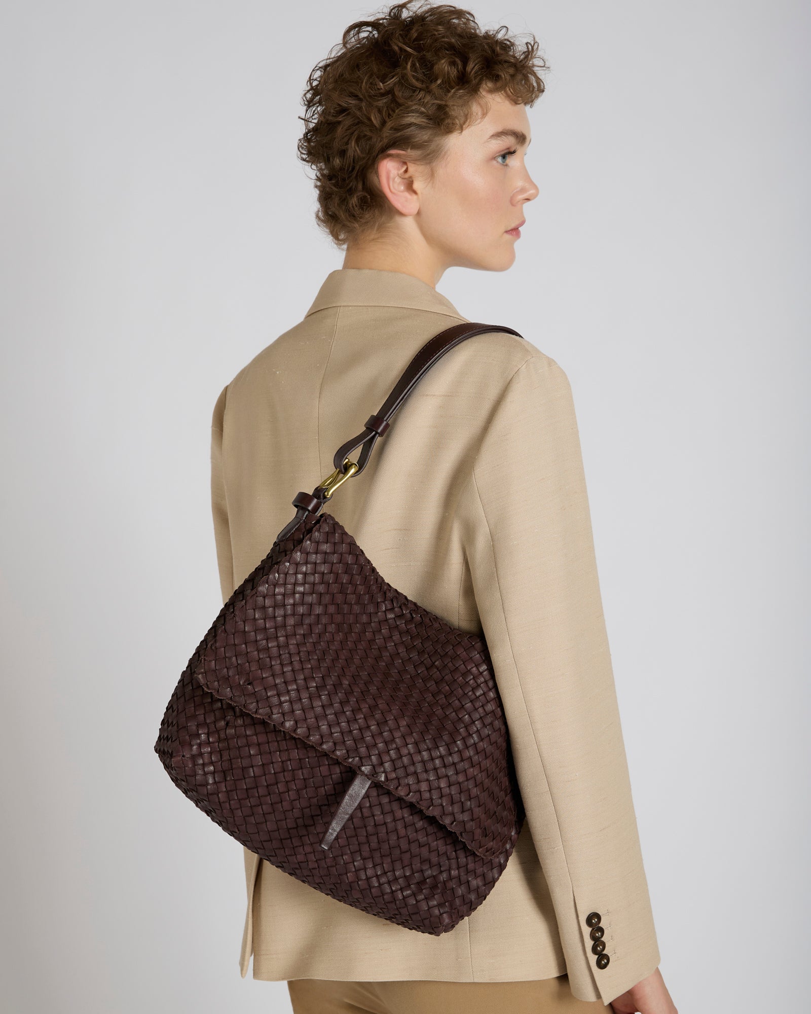 唯一無二のオリジナリティと、イタリア職人技の確かな品質。マッシモ・パロンバのプロダクトには、長い歴史に培われた知恵と伝統が息づいています。「Aspen(アスペン)」バッグは、シンプルなラインに内なるエレガンスを融合させたデザイン。繊細なイントレチャート仕上げと、レザーの上品なミニバックルをあしらった封筒型クロージャーが、独自の個性を際立たせています。ほどよいミディアムサイズで、抜群の機能性と実用性を備えています。
