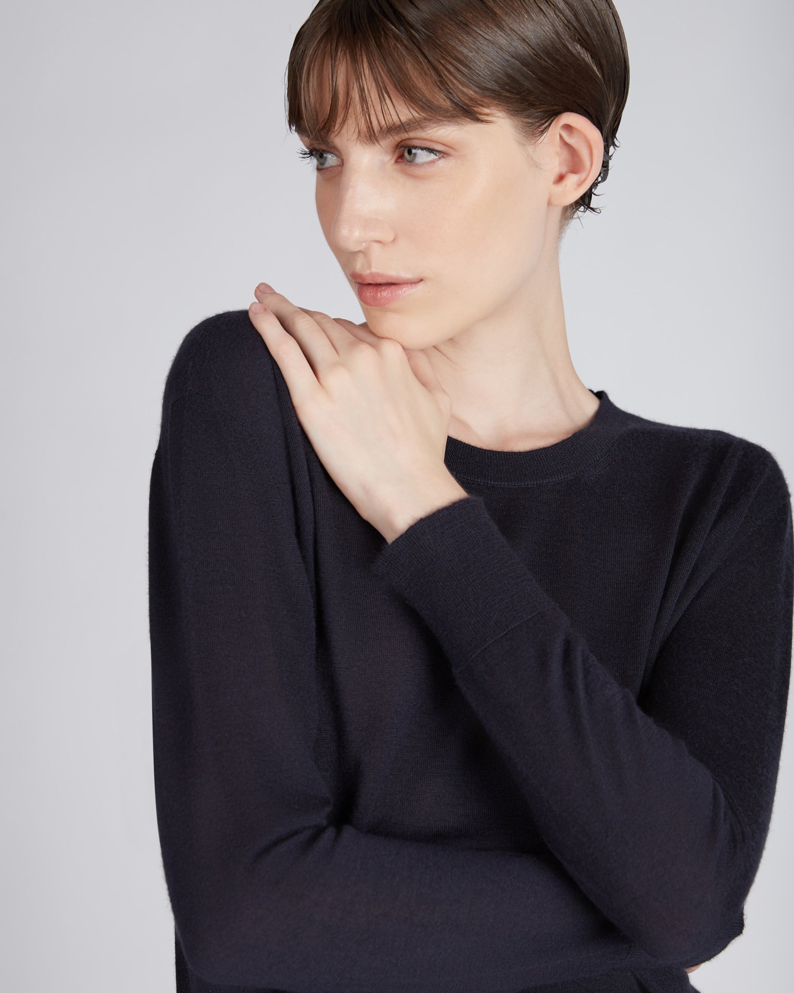 今シーズンのセレクションの中で特に上質な一着で、自然なエレガンスと厳選された素材の価値によってウィンターワードローブの主役となることは間違いありません。最高級カシミヤの柔らかさと品質が、シルクの自然な輝きと融合。触れたくなるほどの滑らかな手触りで、暖かさと保護性をしっかりと備え、どんなコーディネートにもタイムレスなスタイルをもたらします。