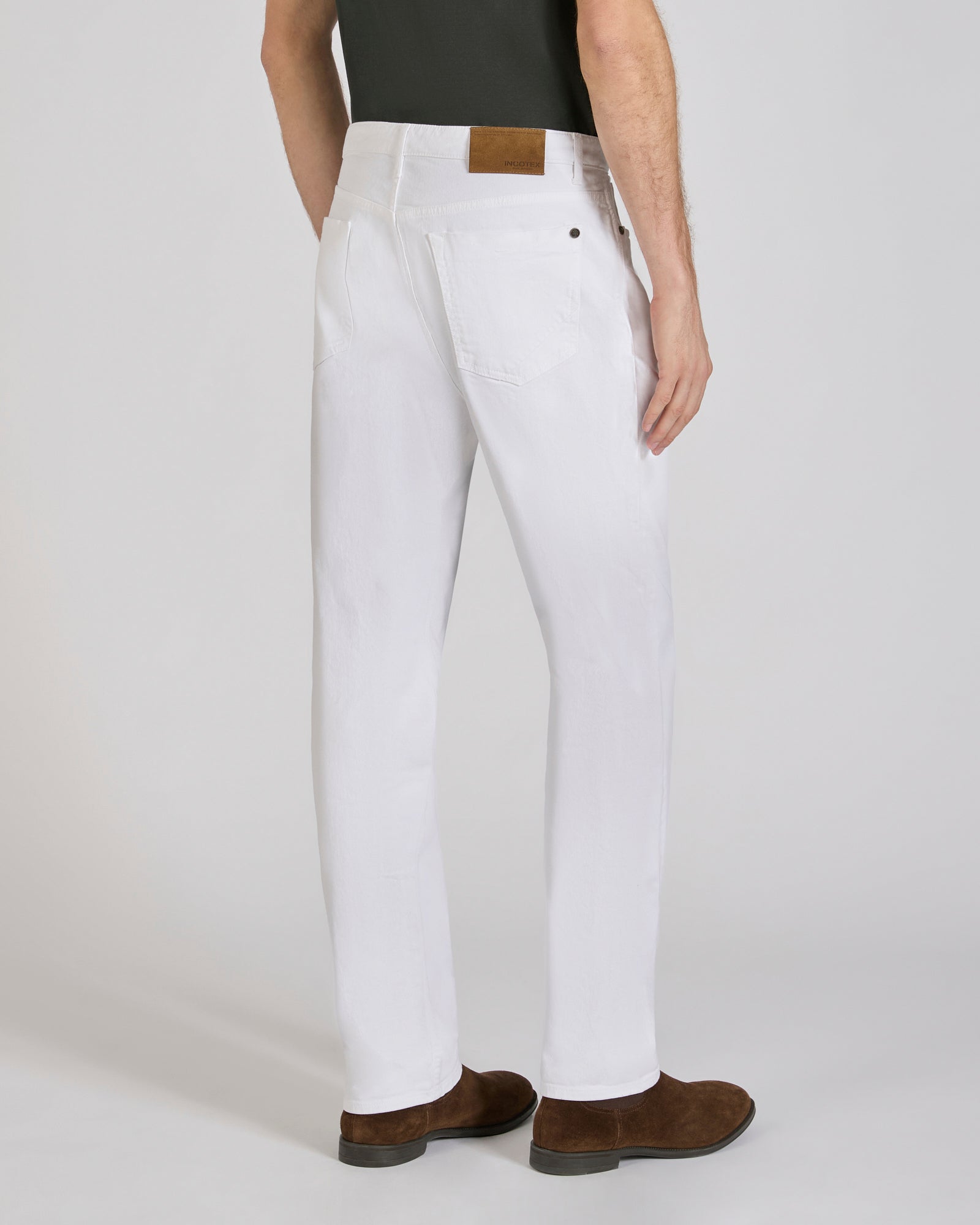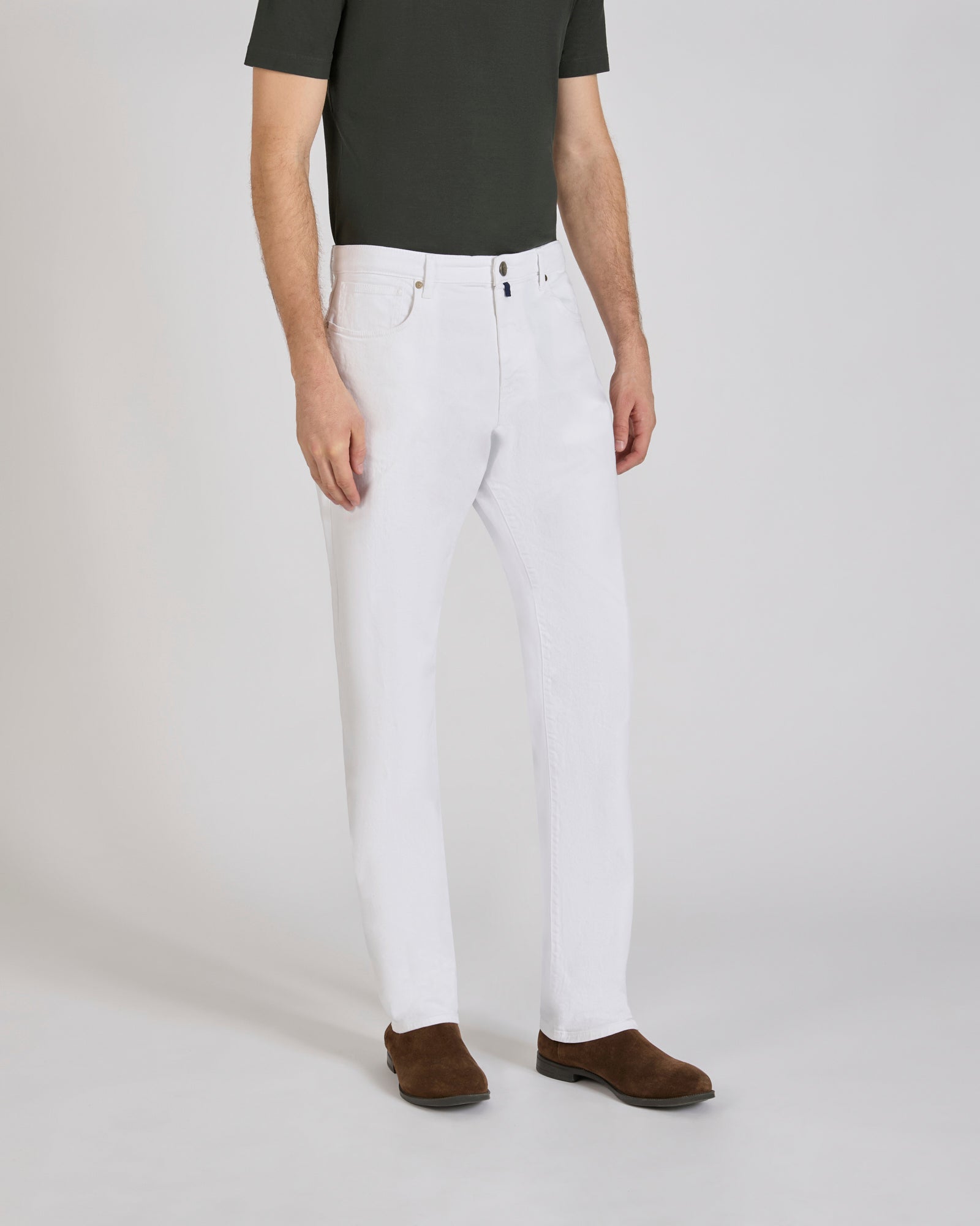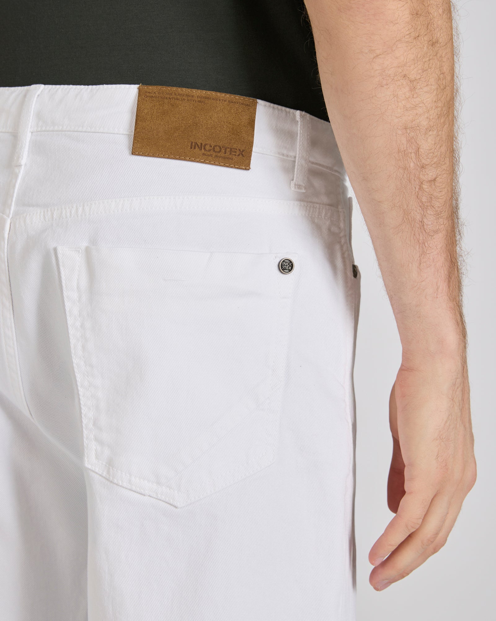 デニムとテーラード仕立てが出会い、自らの本質を再定義する5ポケットパンツが誕生しました。これがインコテックス・ブルー・ディビジョン・ブランドによる、イタリア製ストレッチ・コットンブルを使ったレギュラーフィットモデルです。この生地は特徴的なダイアゴナル構造を持ち、しっかりとした手触りで丈夫な品質が魅力。そしてストレッチを配合することで、快適な着用感と優れた可動性を実現しました。
