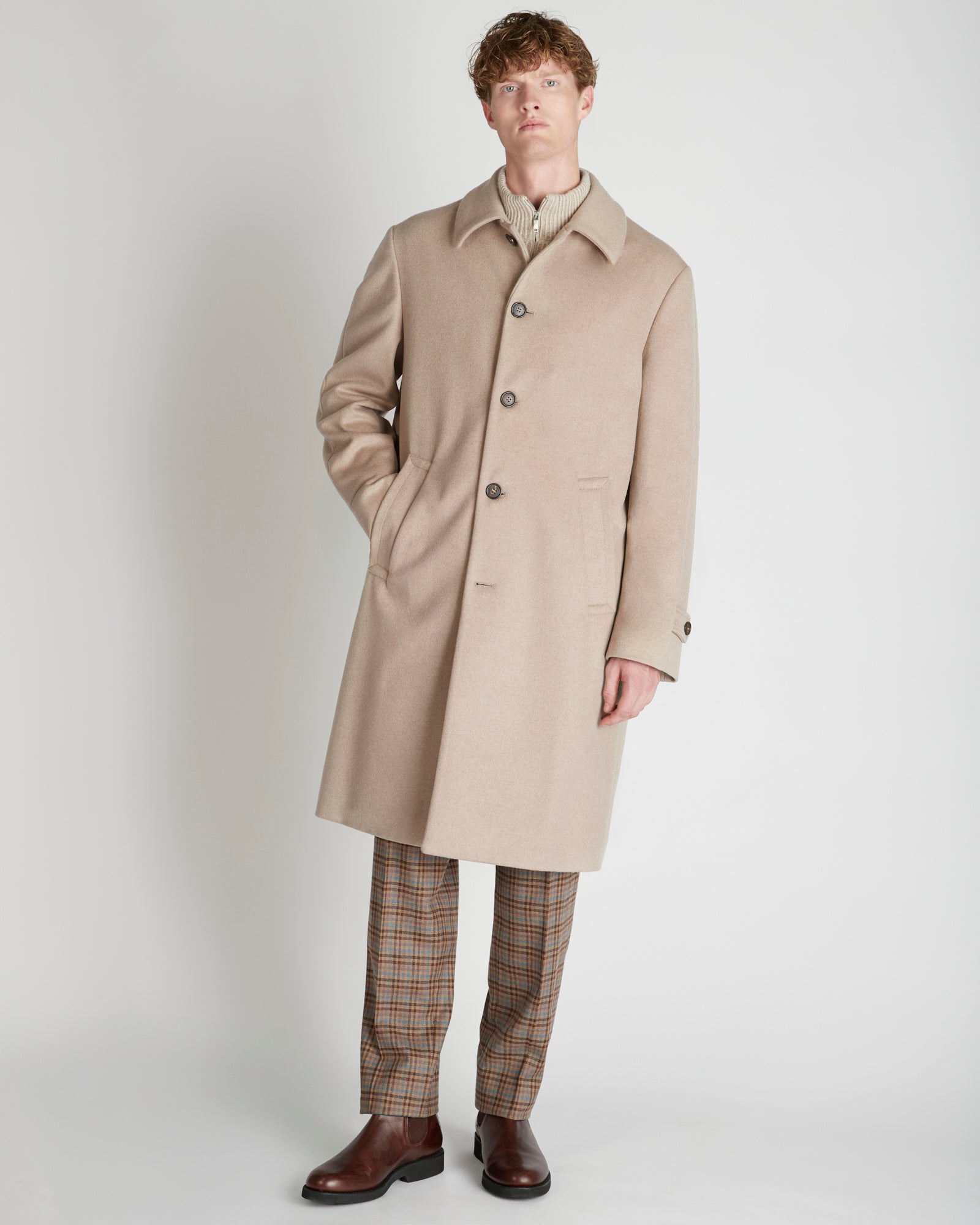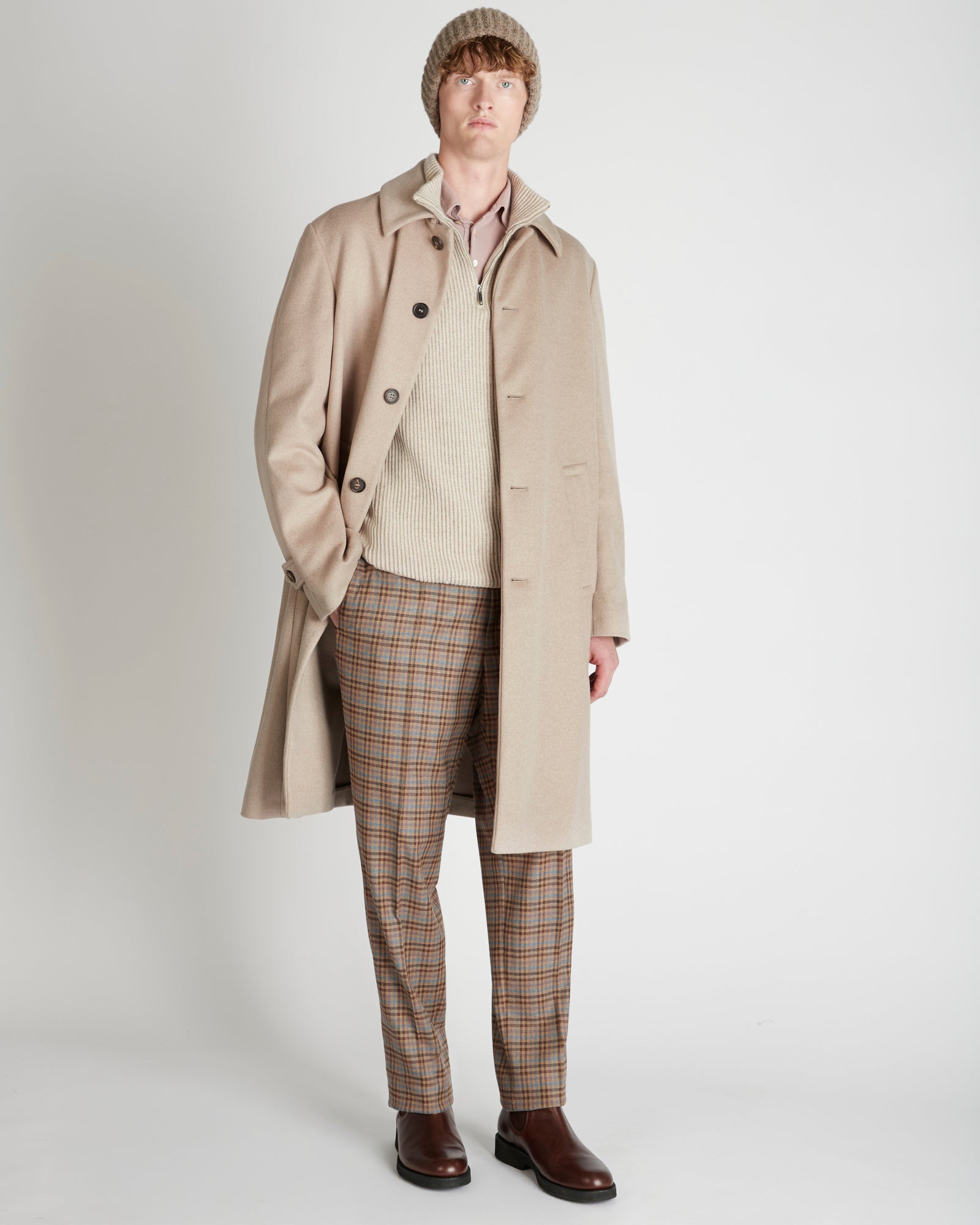 素材のクオリティの高さとオリジナルデザインが光る洗練されたモデル。現代のテーラード仕立ての真髄を体現したコレクションです。柔らかく温かいウールとシルクのような滑らかさと軽やかさを持つカシミアを融合させて洗練されたウィンターアイテムで機能性も兼ね備えた逸品。このモデルは「プリモ・ローデン」と名付けられ、メンズワードローブのアイコン的なアイテムからインスパイアされた名前が、テーラリングの概念に新たな方向性を与える精神を象徴しています。洗練されたディテールが、エレガントで上品なイタリア製アウターを完成させました。