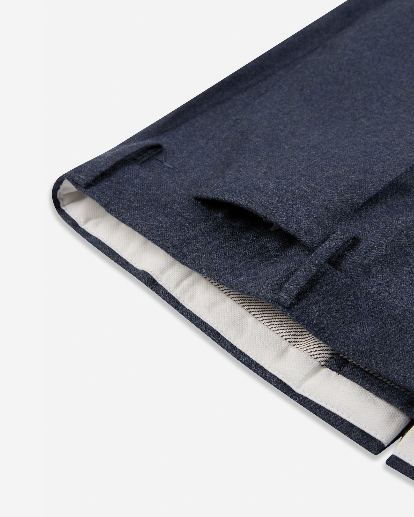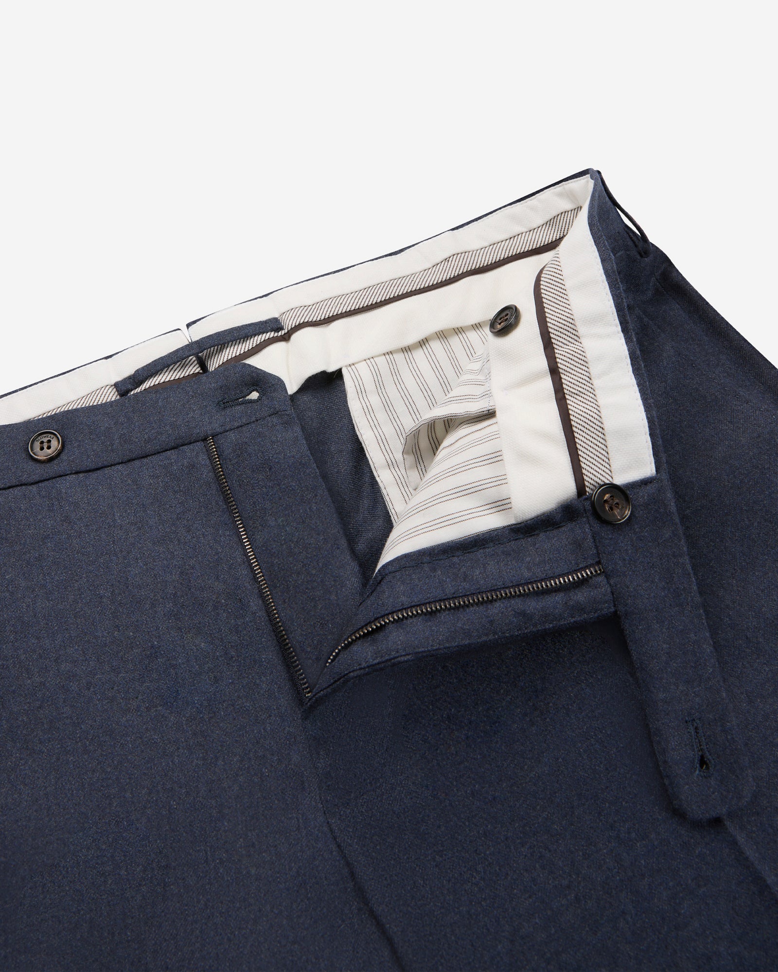 フランネルは、特に上質なものを選べば、冬に身に着ける素材の中でもひときわ柔らかく、暖かく、心地よい素材です。;Slowearのラインナップを象徴するモデルにこの素材を組み合わせることで、コーディネート力抜群の冬向けパンツが仕上がりました。;この上なくクリーンなラインが魅力です。;