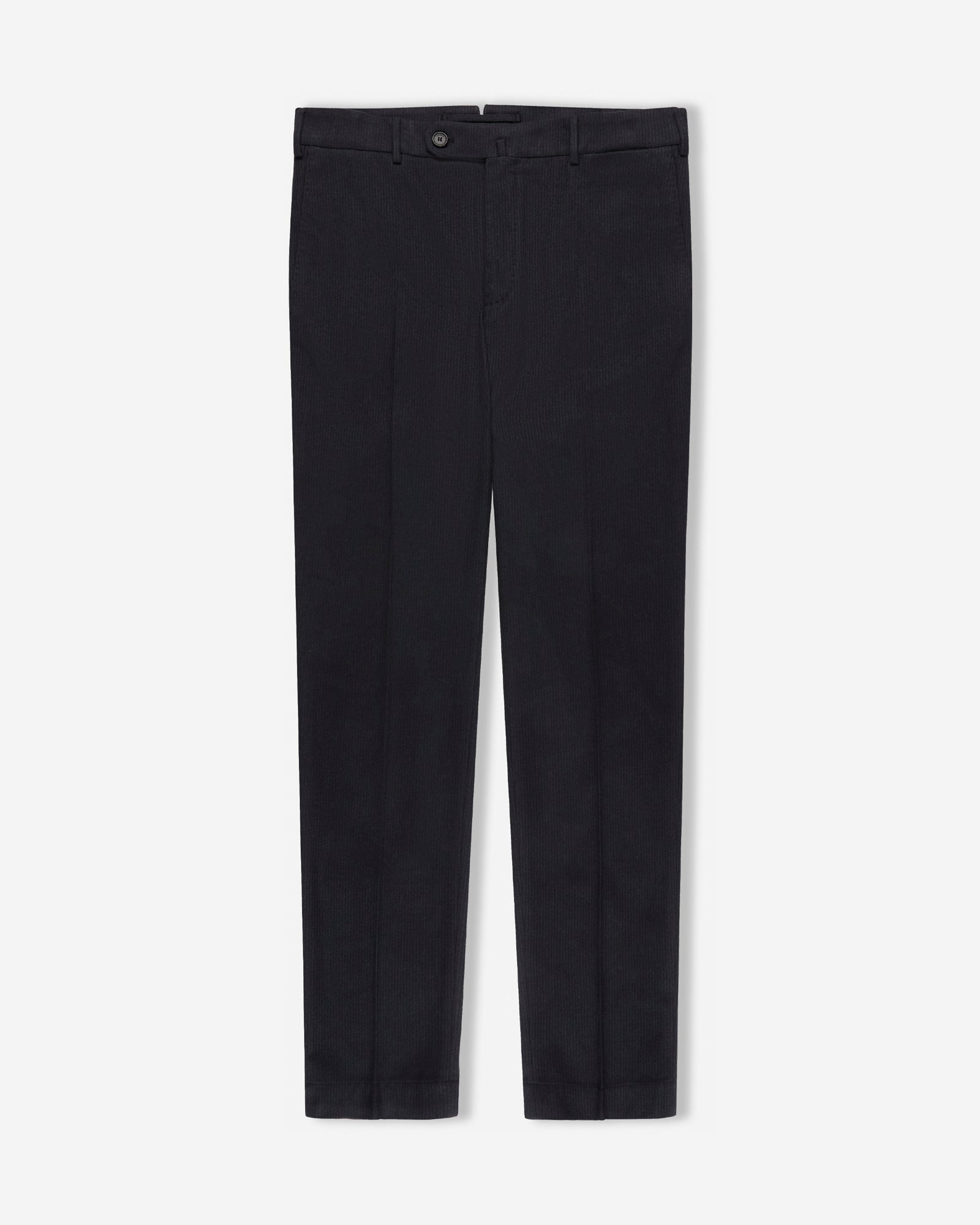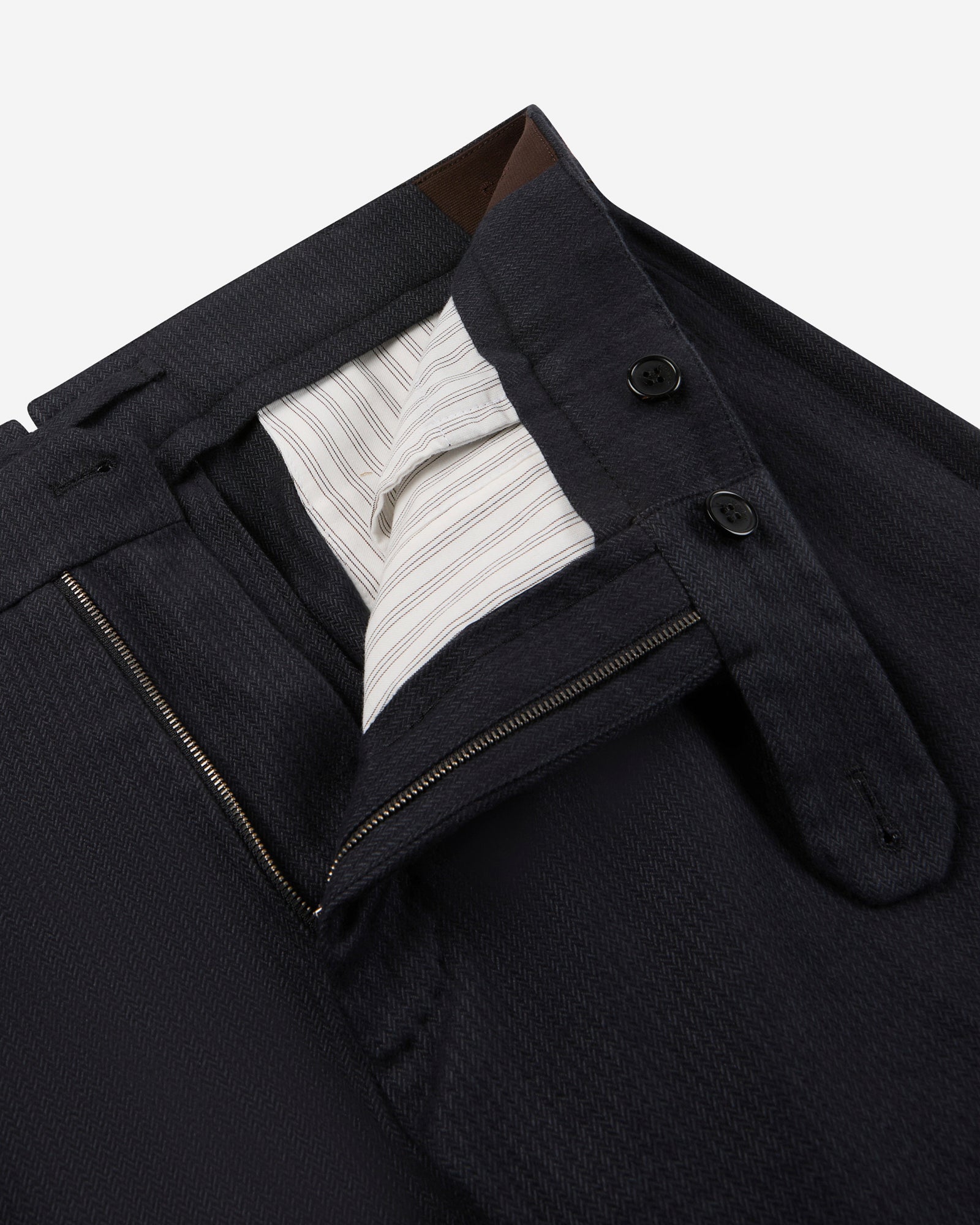 クリーンなラインと包み込むような快適さが魅力のスリムフィットパンツです。;柔らかく暖かいコンフォートコットンを使用しています。;このアイテムの最大の魅力は、技術が光るウエストバンドの構造。;外観はエレガントなテーラードパンツでありながら、内側に施した独自のディテールで、真のフレックスパンツとしての快適さを実現したデザインです。;ウエストバンド内側に通した伸縮性のあるサイドバンドが快適な着用感を叶え、さらに特殊な補強によってウエストバンド自体にサポート力と伸縮性を与えています。;外観はそのままに、かつてないほどの着こなしの幅を実現した一本です。;