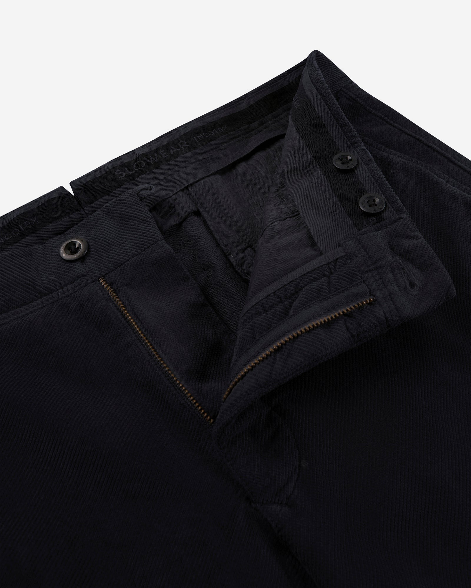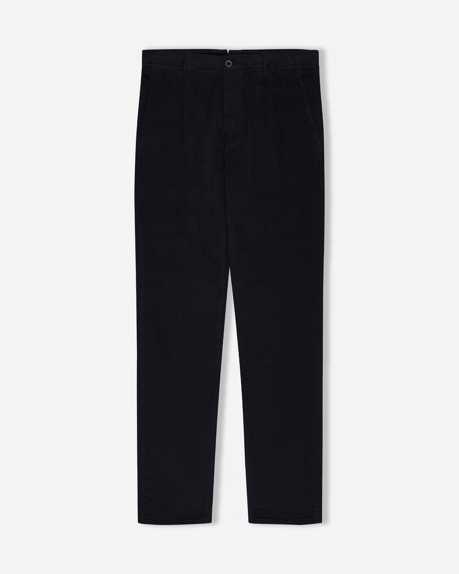 エレガントで快適なスリムフィットパンツです。;冬の定番生地であるベルベットを使用した一本。;柔らかな肌ざわりと心地よい暖かさを備えたベルベットがレッグラインを包み込み、さりげないエレガンスと現代的なムードを漂わせます。;上品な光沢を放つ質感が魅力で、快適さはそのままに、シルエットを引き立てるスリムフィットに仕上げています。;