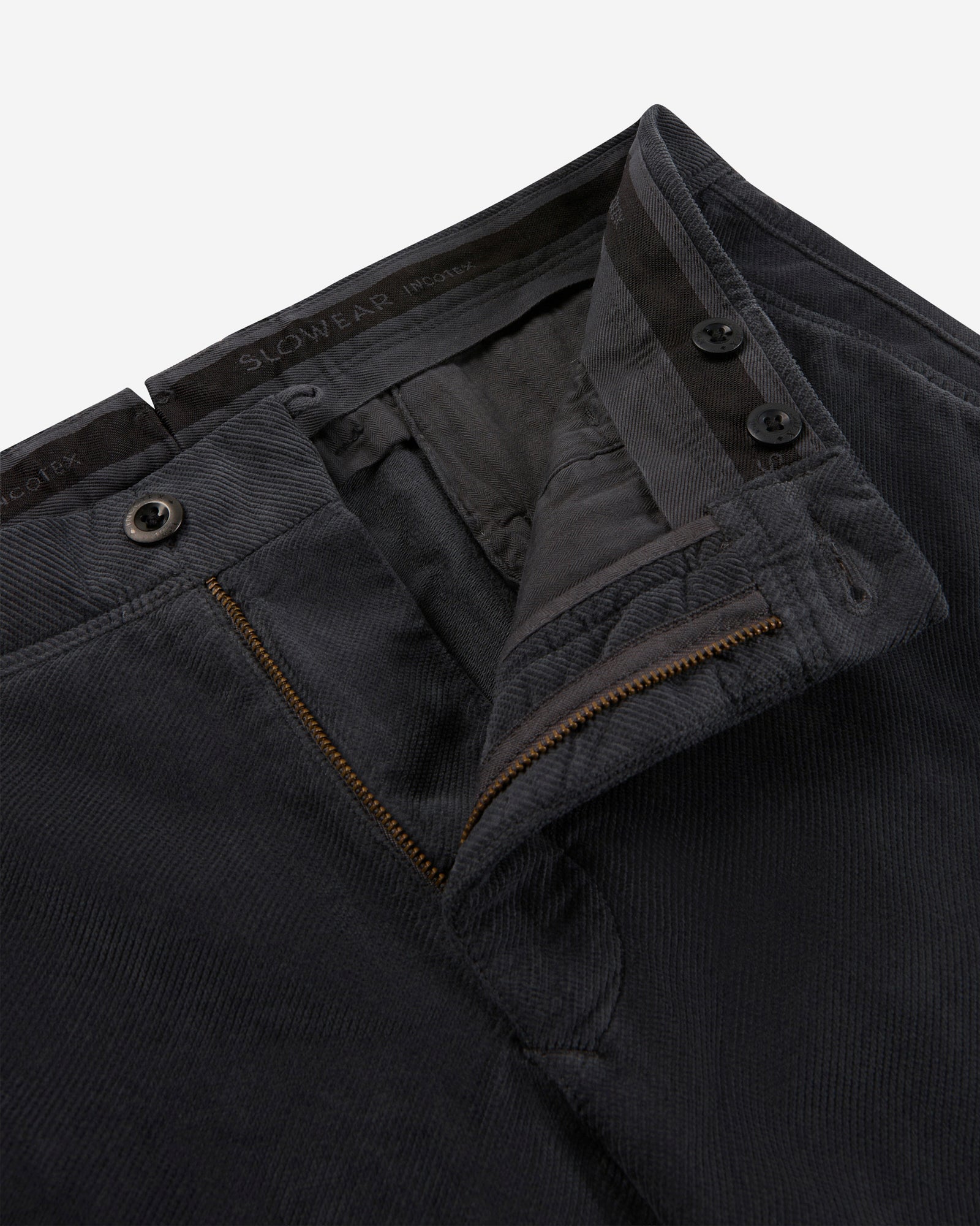 エレガントで快適なスリムフィットパンツです。;冬の定番生地であるベルベットを使用した一本。;柔らかな肌ざわりと心地よい暖かさを備えたベルベットがレッグラインを包み込み、さりげないエレガンスと現代的なムードを漂わせます。;上品な光沢を放つ質感が魅力で、快適さはそのままに、シルエットを引き立てるスリムフィットに仕上げています。;
