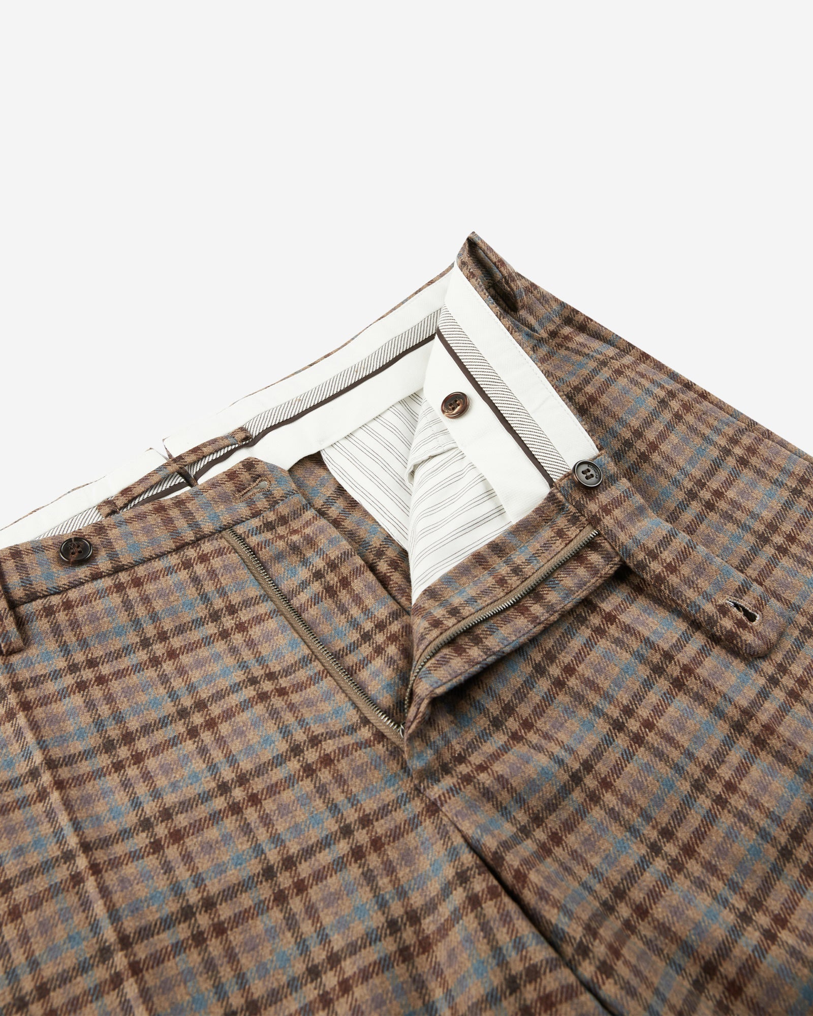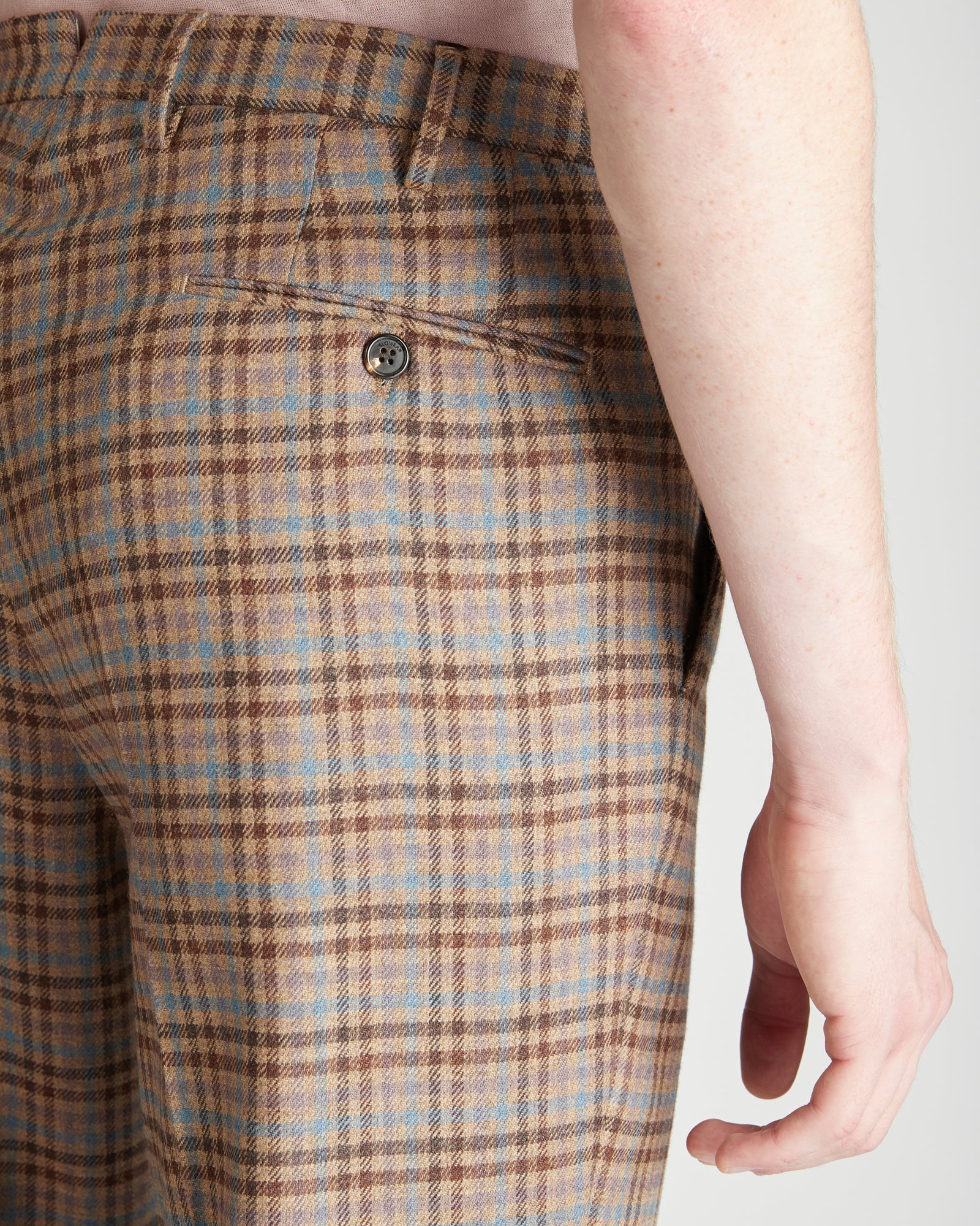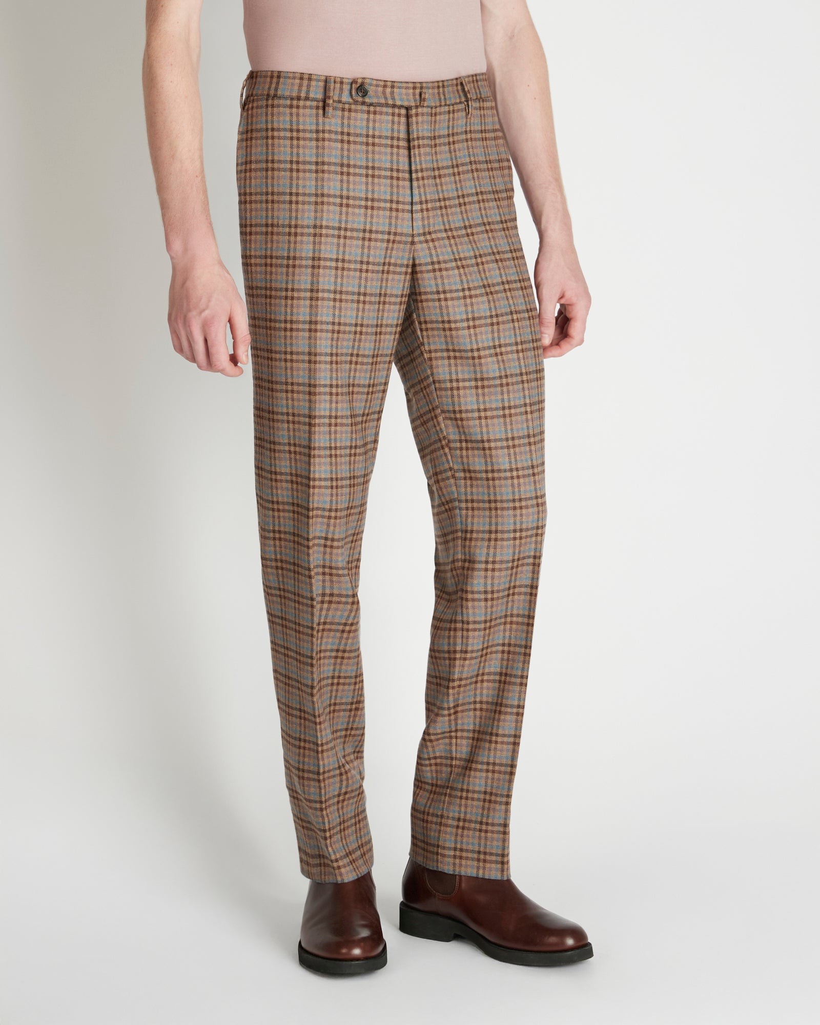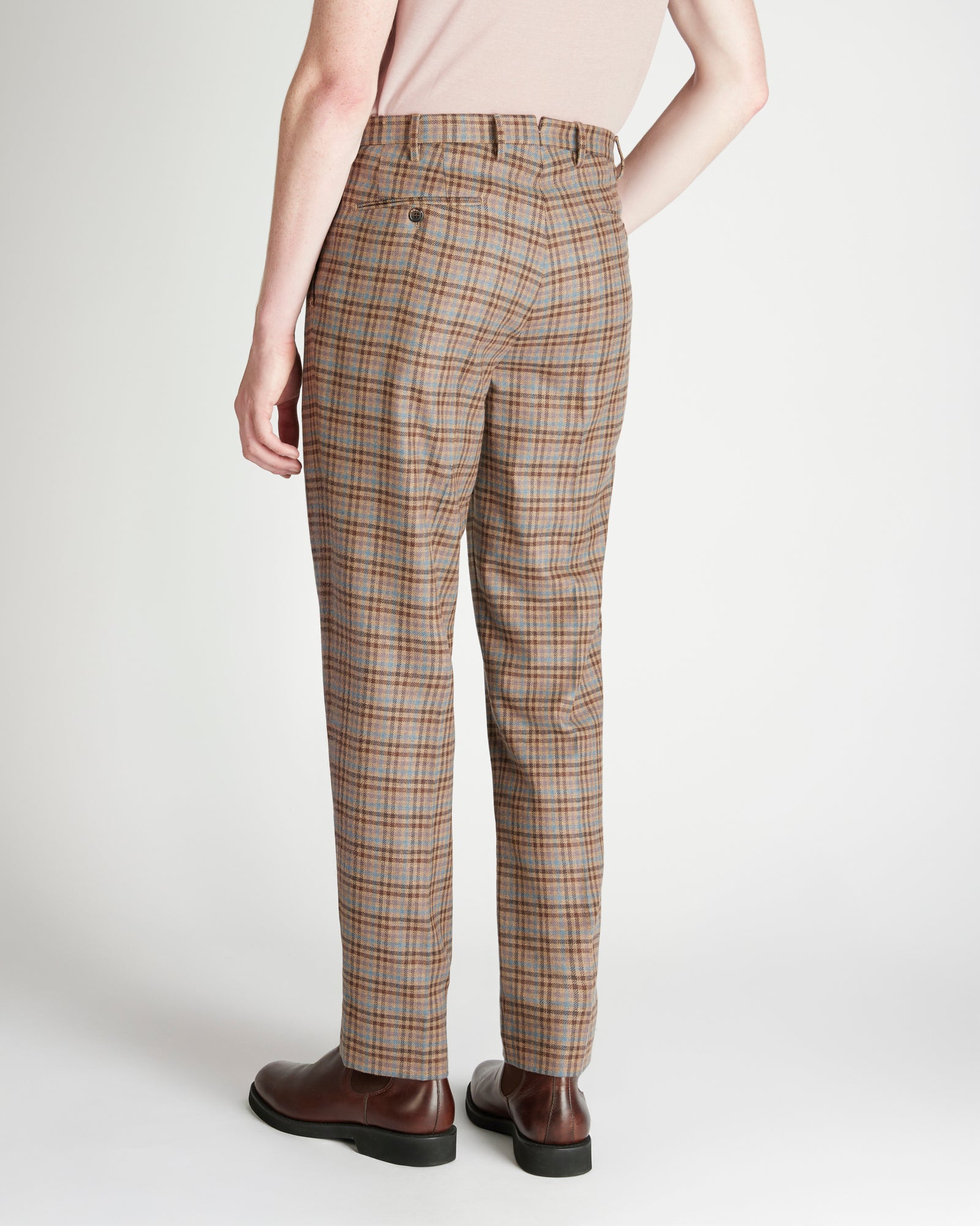 テーラード仕立てのエレガンスと絶対的な快適性。スリムフィットで、高級なウールとカシミアの混合生地で作り、上品さ、柔らかさ、自然な性能を融合させた贅沢な組み合わせです。カシミアを混紡することによって手触りが柔らかくシルキーで、ウールは通気性のある暖かさと常に快適な着心地を保証します。さらにこの生地は、生産の全てのプロセスにおいて人と環境の安全性を保証していることが認証されています。異なる色合いのチェック柄が重なり合うオリジナルなデザインが特徴です。