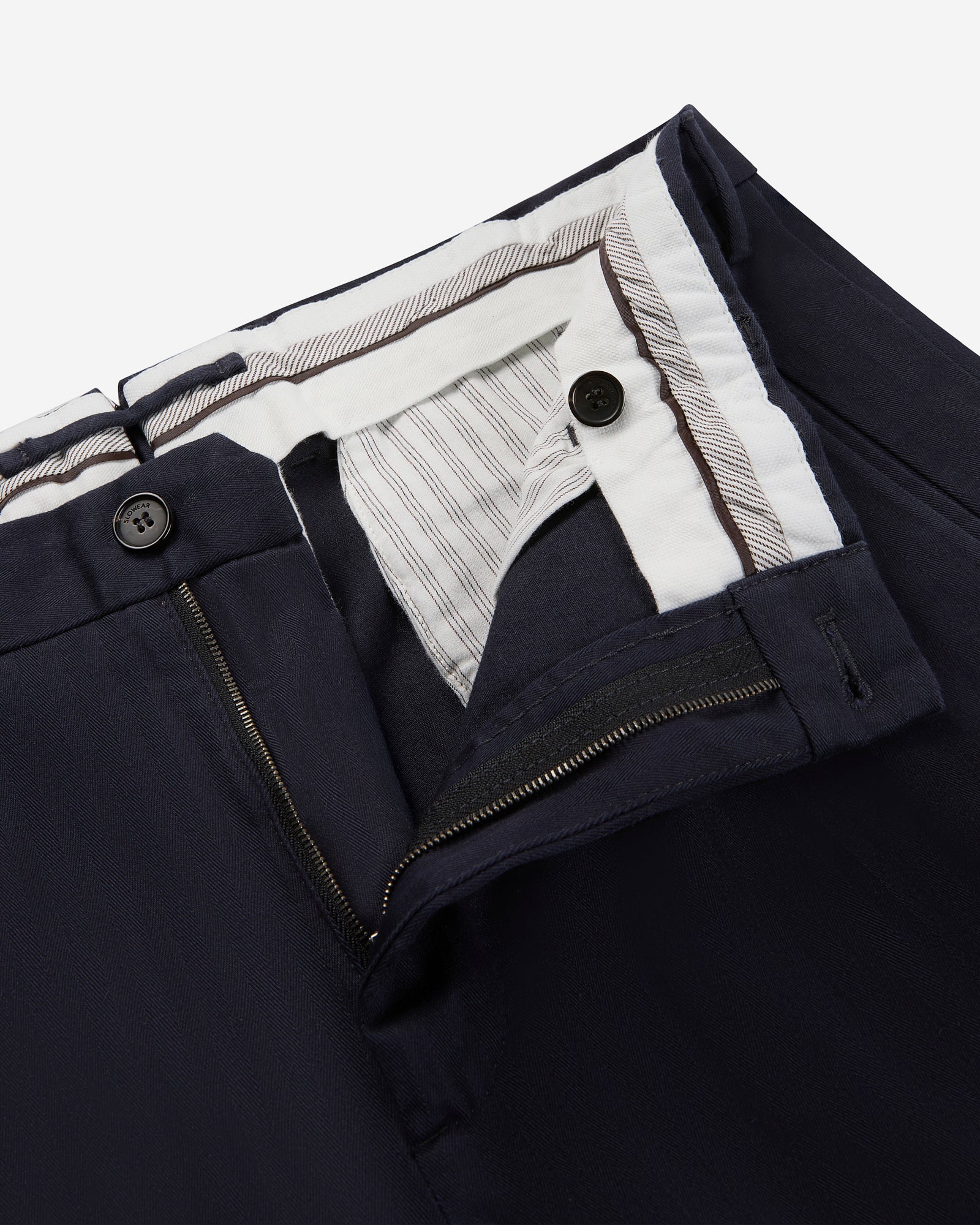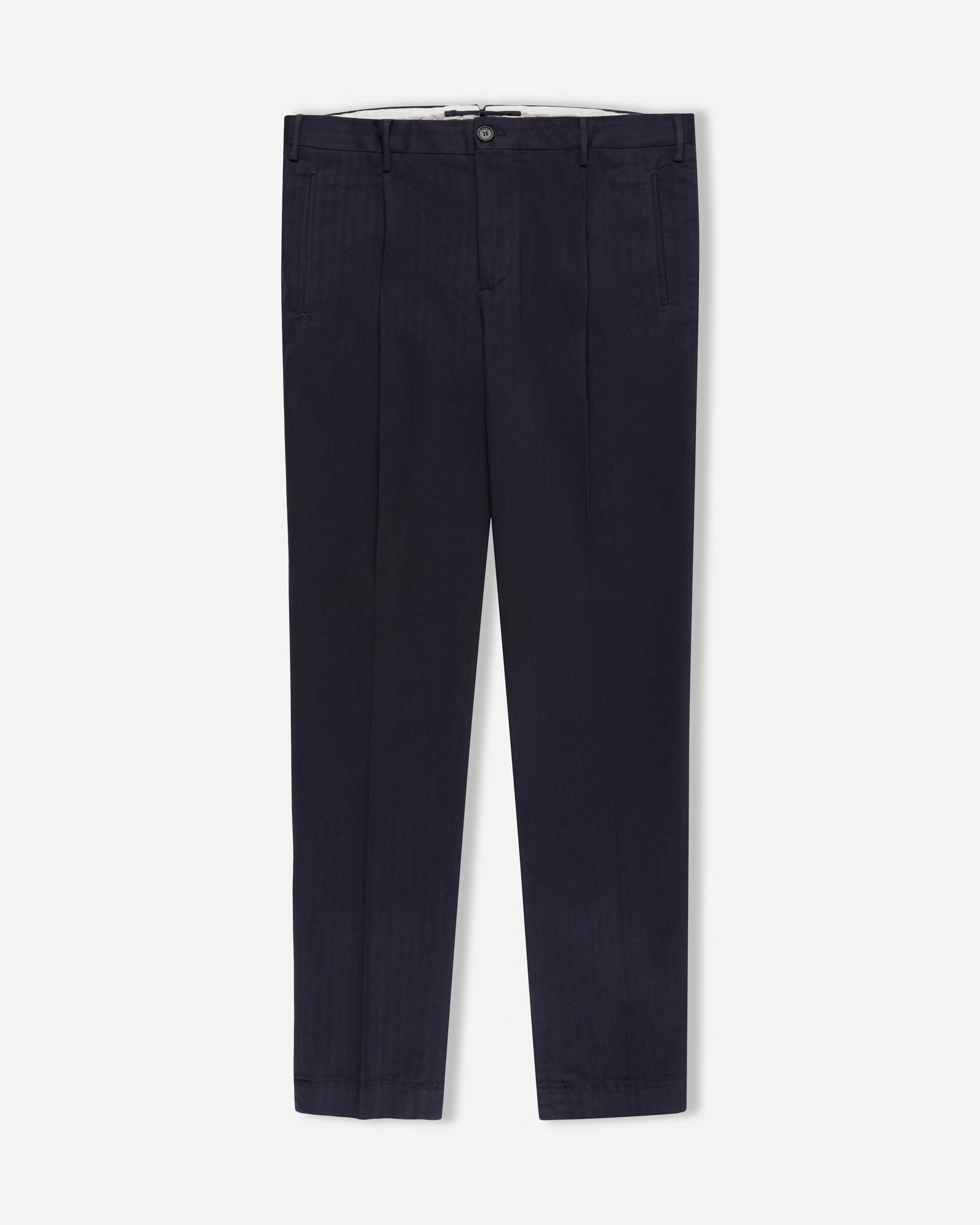 今シーズンのラインナップを象徴するパンツ。;カジュアルな表情とテーラードムードを融合し、コーディネート力抜群の一本に仕上げました。;トーンオントーンのヘリンボーン柄が特徴的な、柔らかなコットンシェブロンを使用しています。;