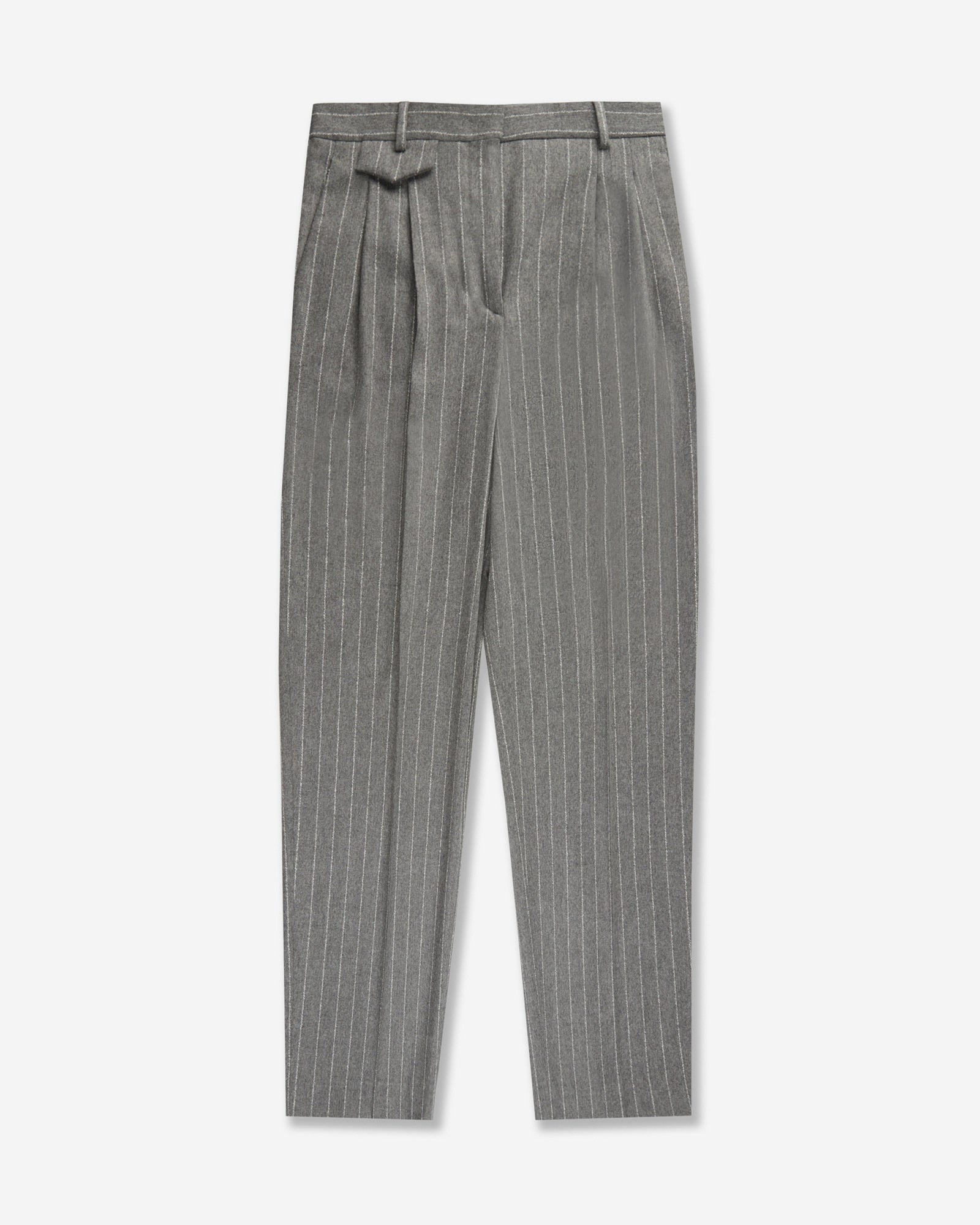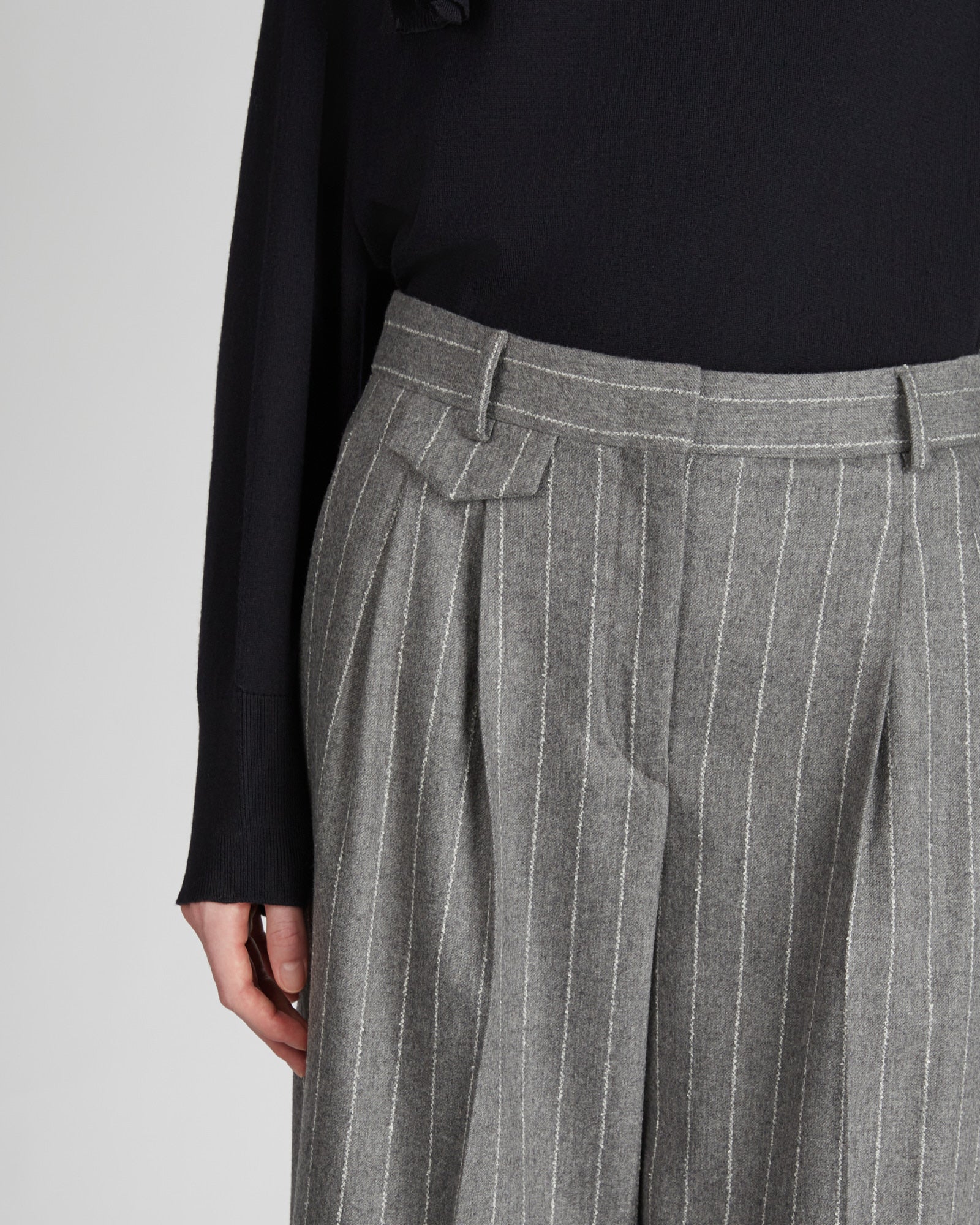 メンズワードローブから着想を得たピンストライプはレディースにも欠かせない、エレガントで洗練されたスタイルの定番。柔らかく暖かみのあるフランネル素材にピンストライプをあしらい、ゆとりのあるシルエットと独自のウエストデザインで仕立てました。生地はすべての生産工程において化学物質の使用を最小限に抑えていることが認証されています。同素材のブレザーと合わせれば、個性と気品を兼ね備えたセットアップが完成します。