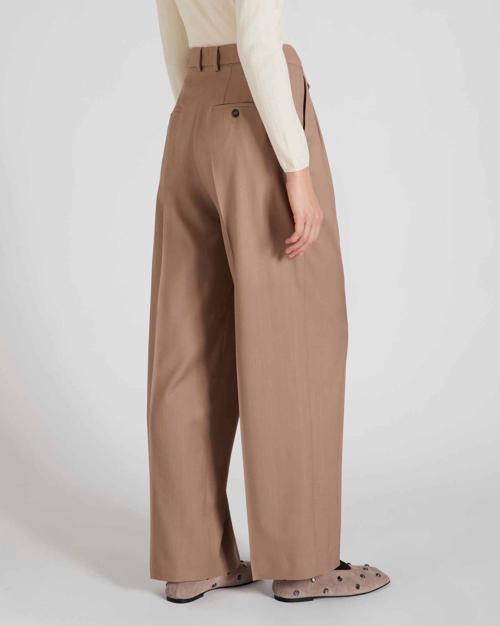 ゆったりとしたシルエットに洗練されたテーラリングのディテール。さらに柔らかなウール地がもたらす暖かさと快適さ。このパンツは、テーラード仕立ての美しさと汎用性を兼ね備え、ウィンターワードローブに新たな組み合わせの可能性をもたらします。