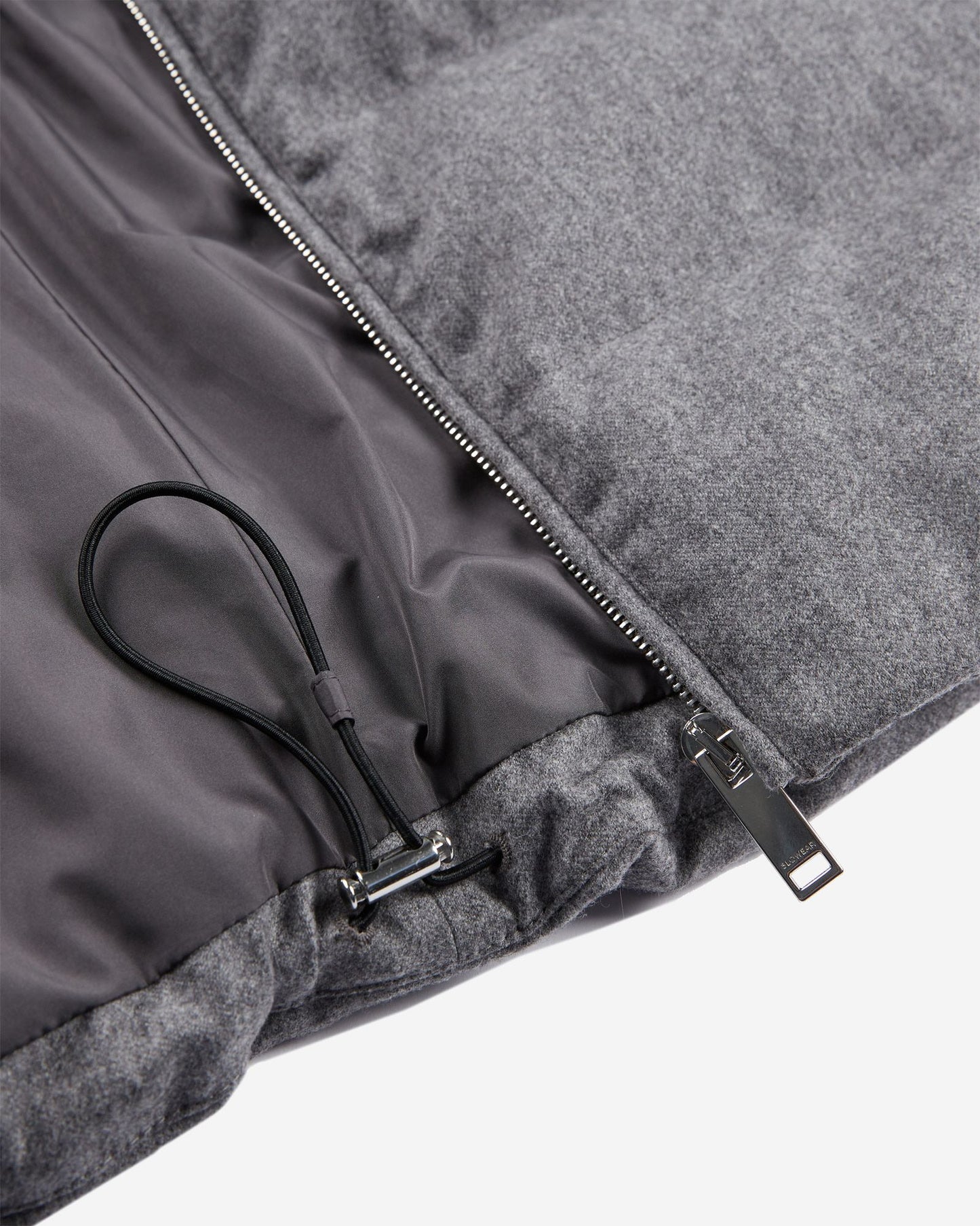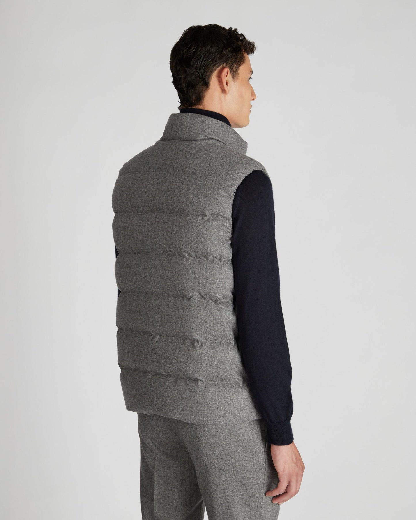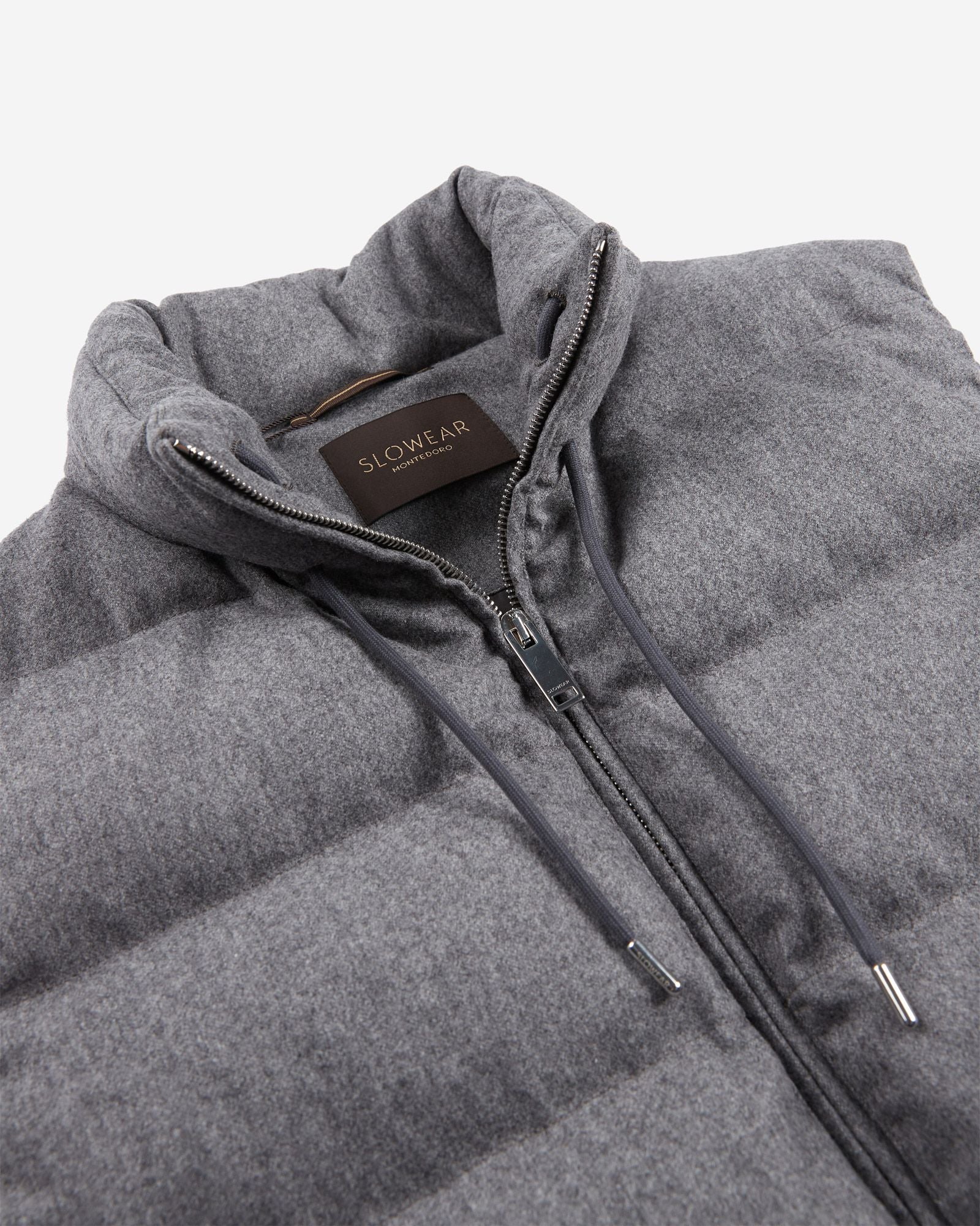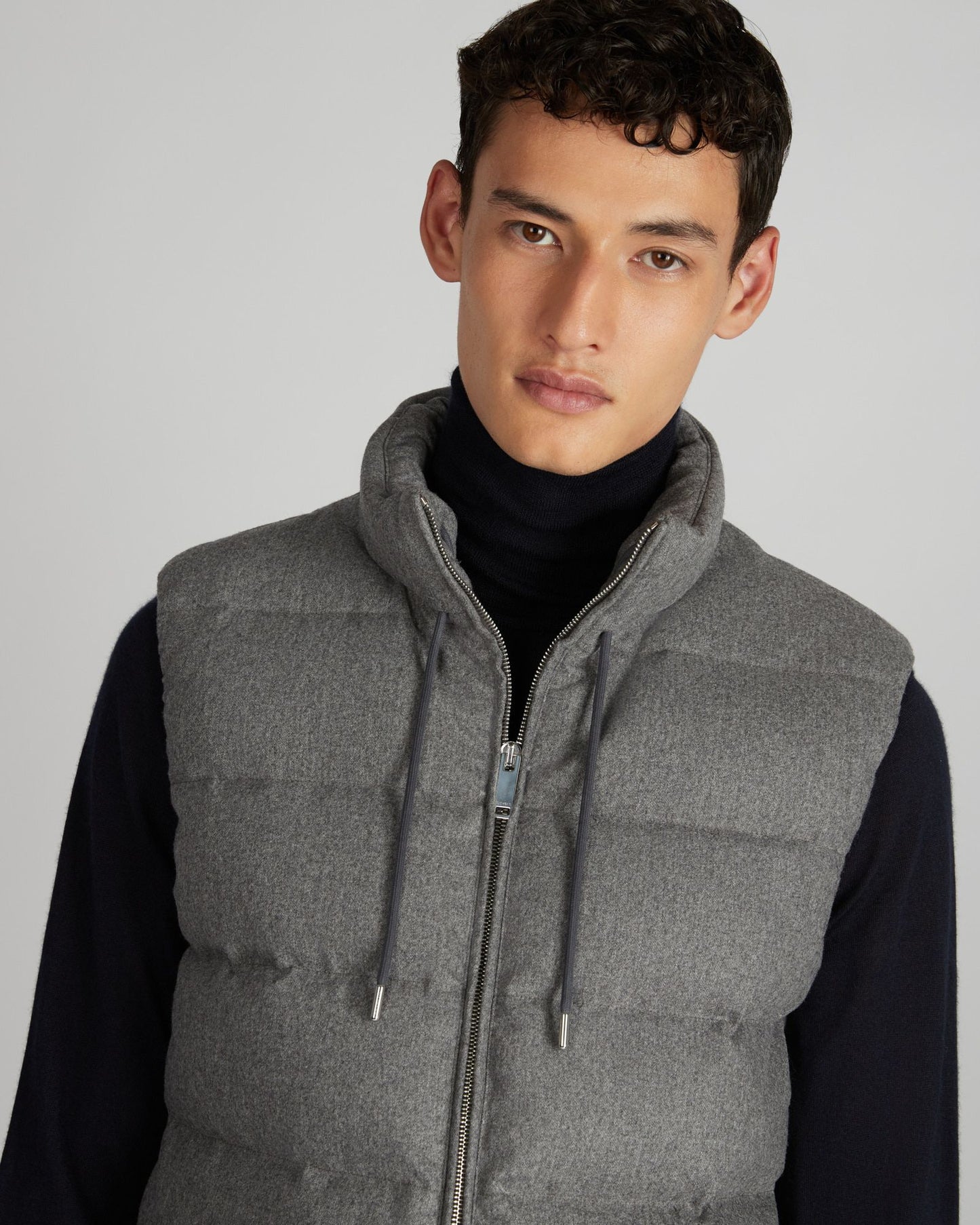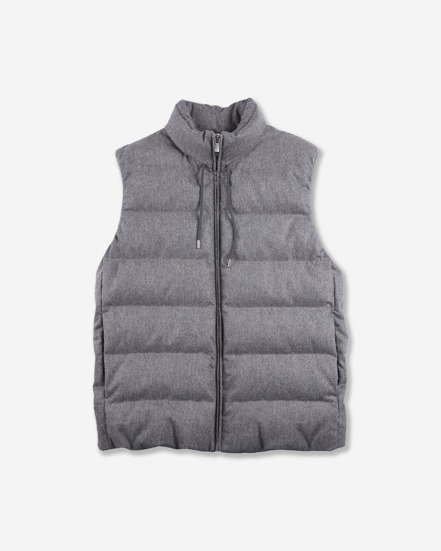 冬のマストアイテム ダウンベストにスタイルと機能性を持たせました。柔らかく暖かいウールとカシミアの滑らかさと軽さが融合した高級感のある生地。グースダウンパッドが保温効果と快適性を提供します。洗練されたブディンステッチは、オリジナルデザインで、内部のパッドを均一に分散させ、包み込むような暖かさと上品な魅力を生み出します。
