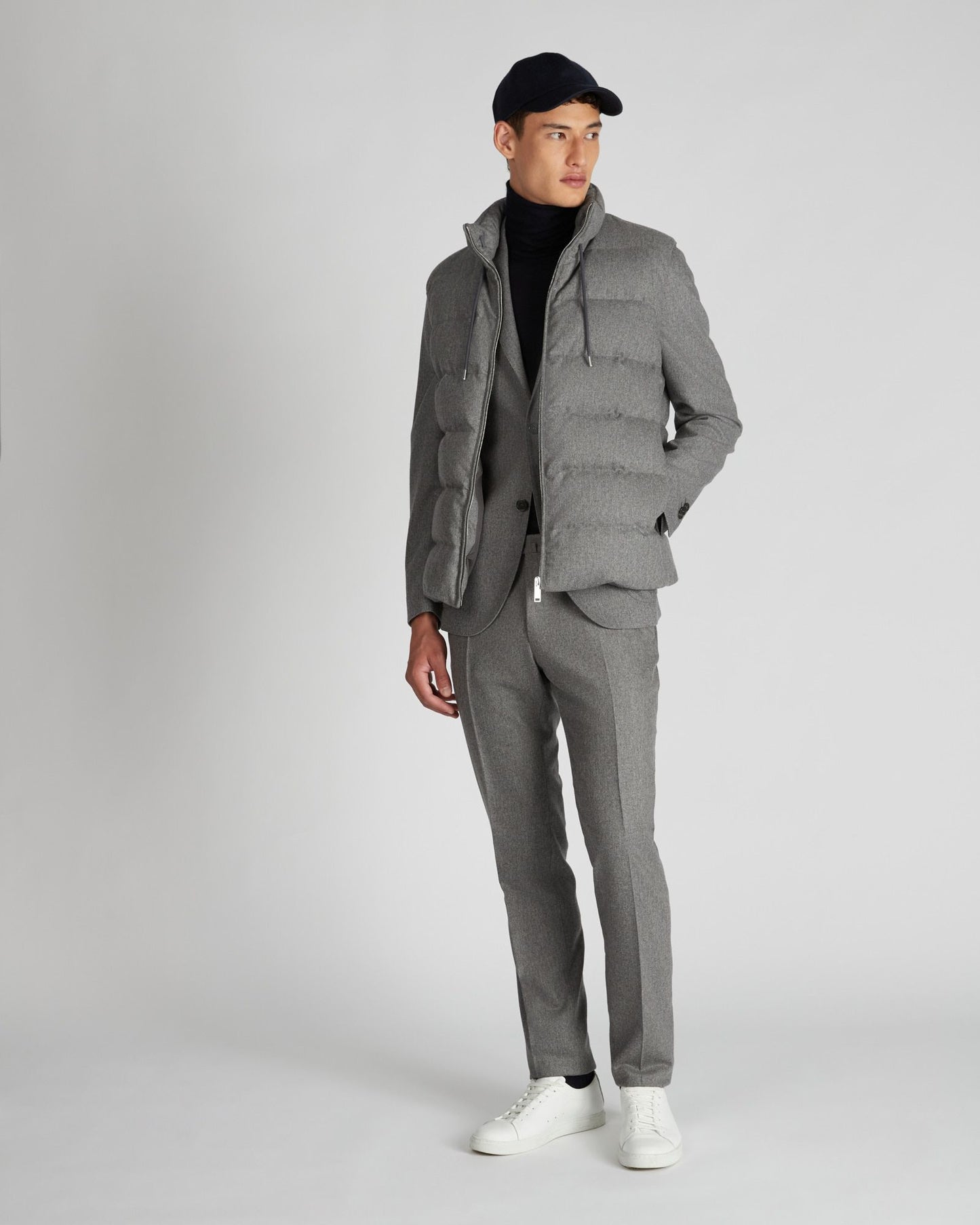 表地: 90% 羊毛 - 8% カシミヤ - 2% ポリウレタン - 裏地(本体及び袖分): 100% ポリエステル - 中わた(羽毛): JAPAN / 日本 - 80% ホワイトグースダウン - 20% ホワイト グース・フェザー - 中わた(身頃): 100% ポリエステル