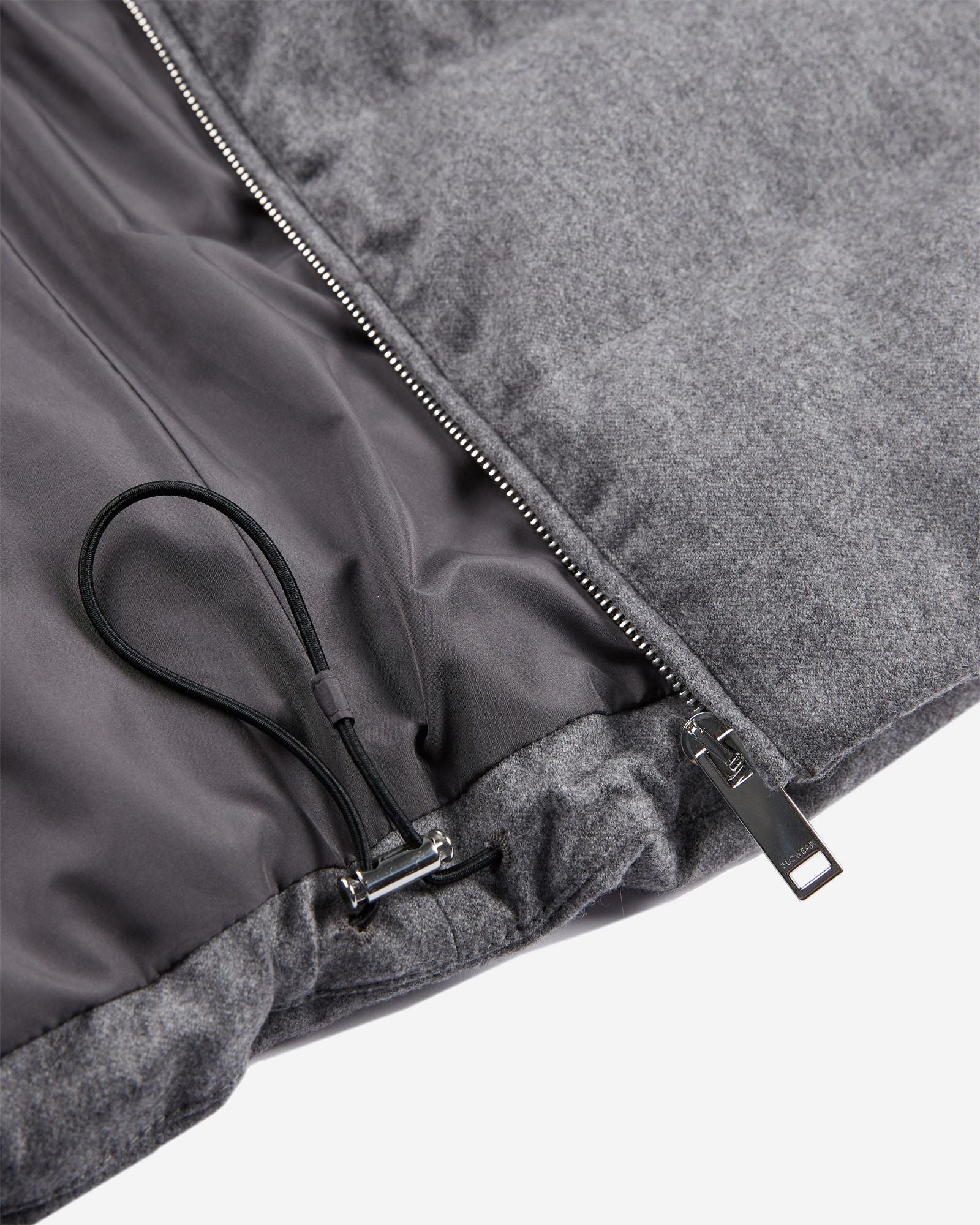 - ジレのフロントにダブルスライダージッパーがあり、ボトムの内側にドローストリングが付いています