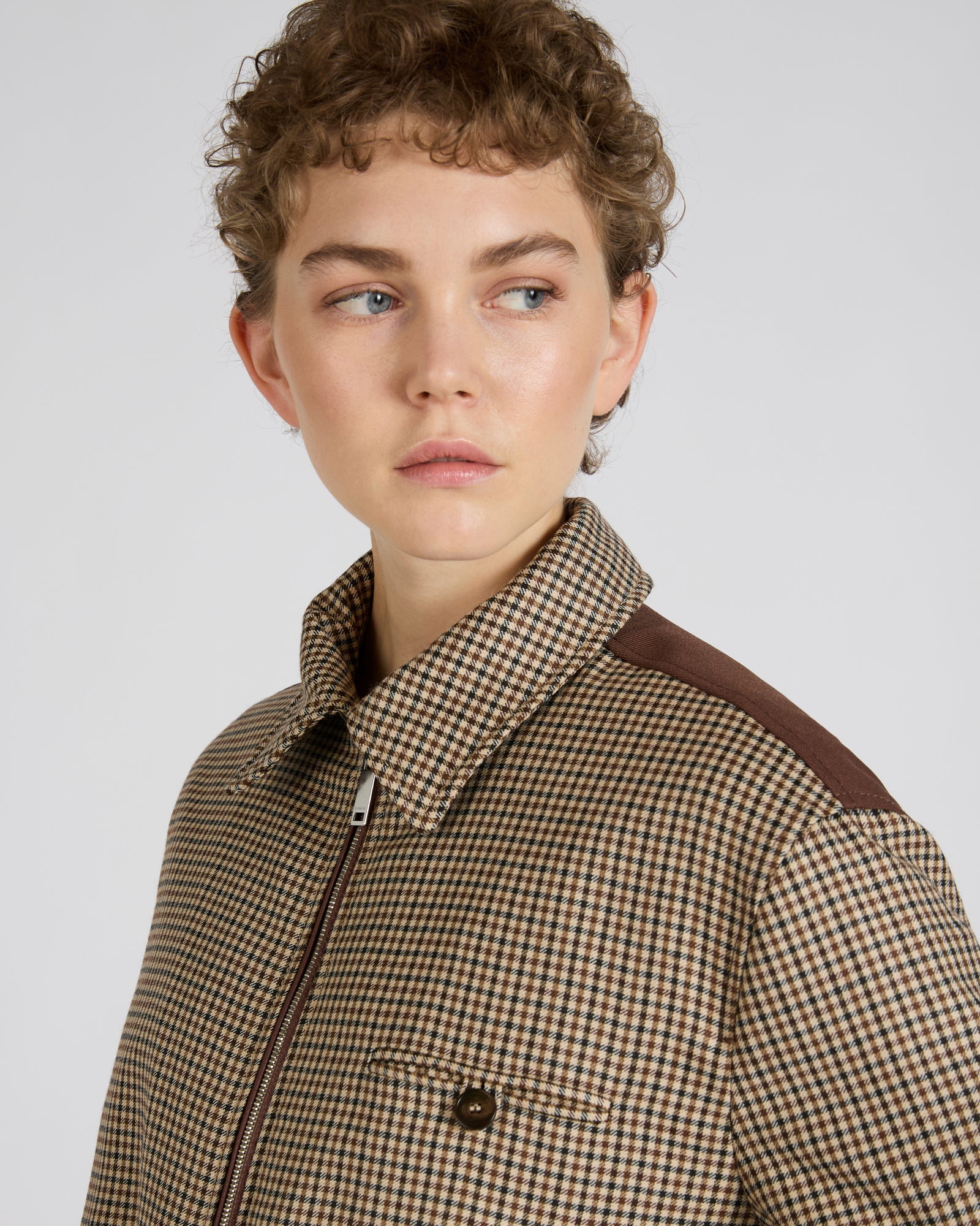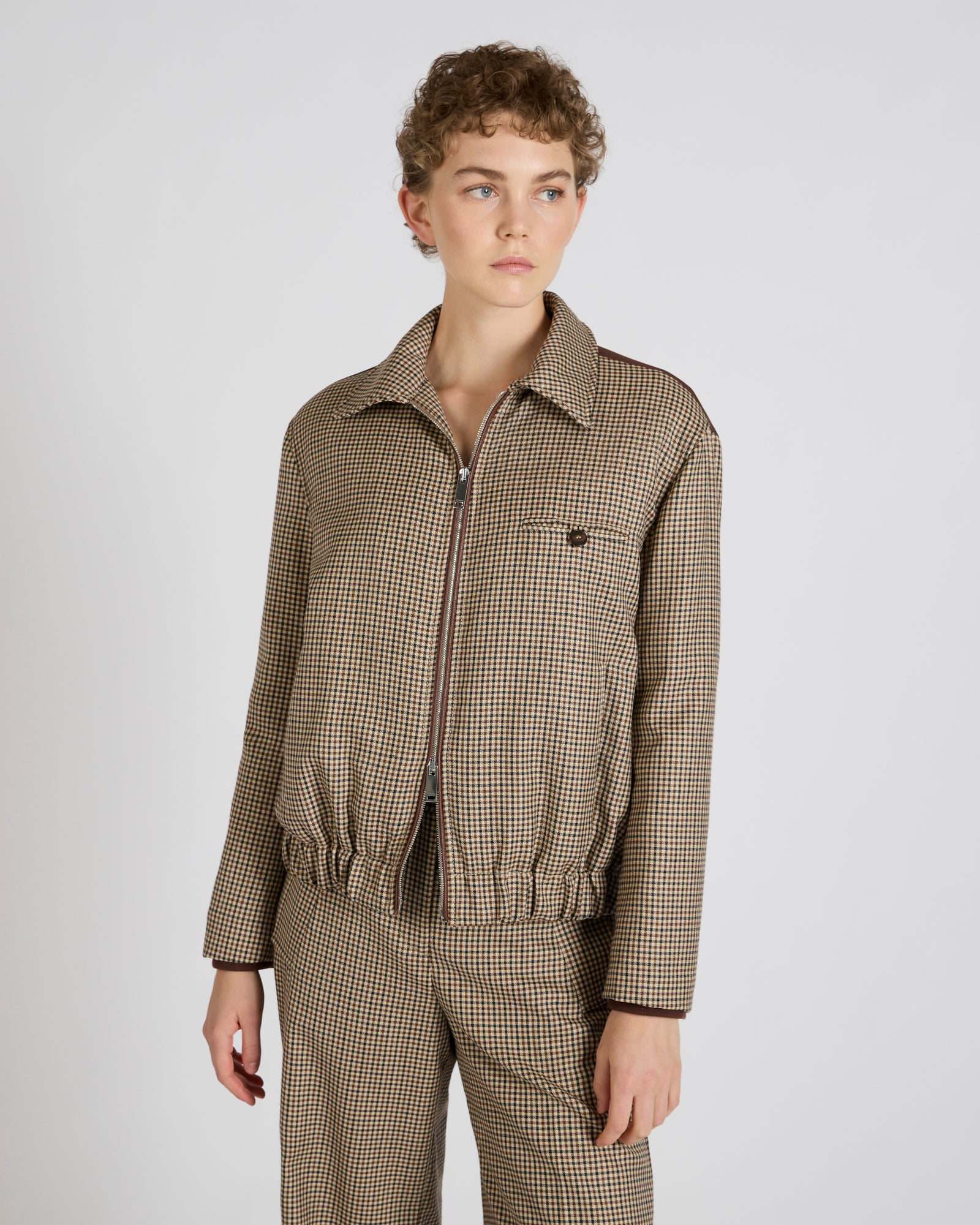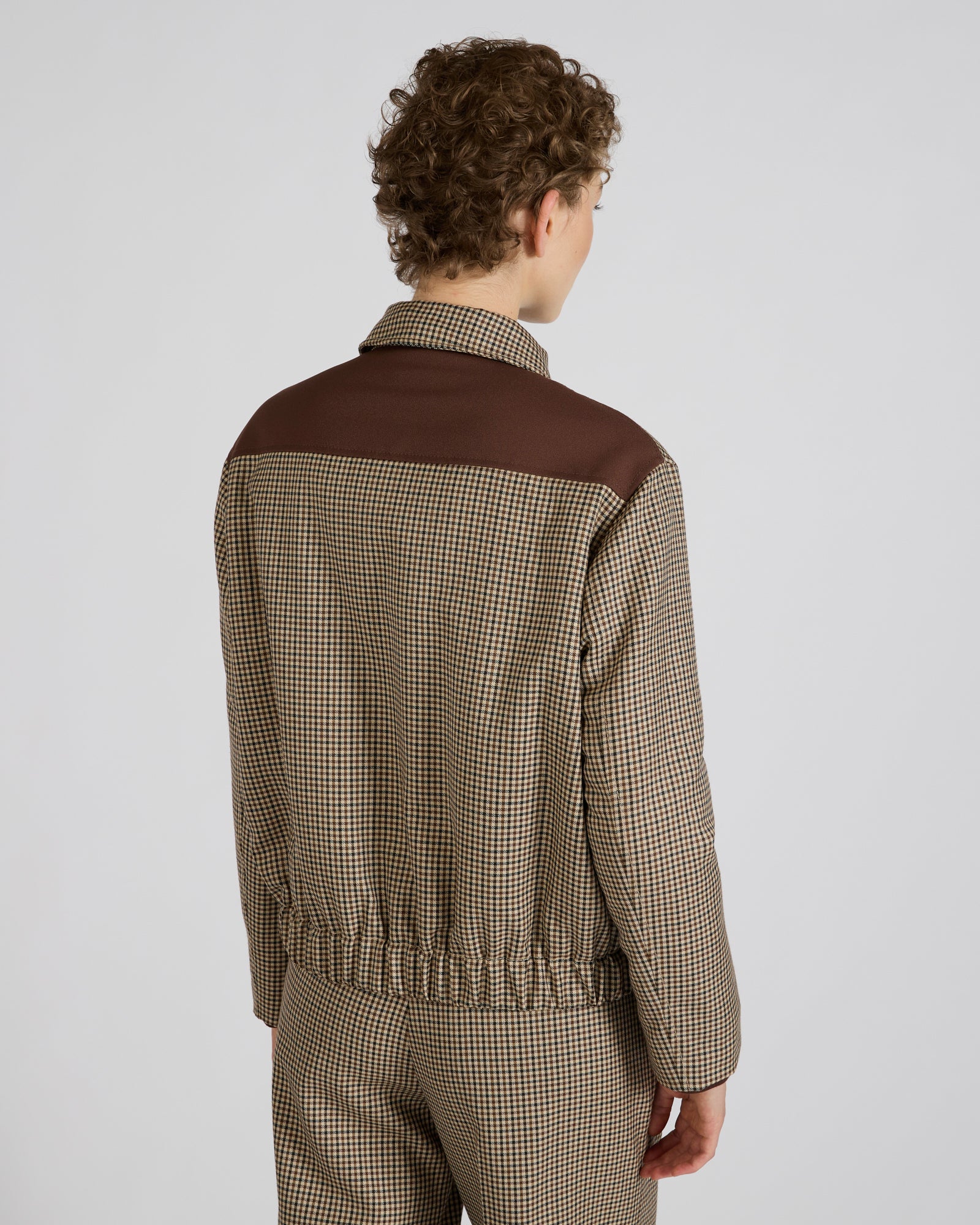 新たな高級テーラード仕立ての潮流として、カジュアルなワードローブのアイコニックなモデルがエレガントなアイテムへと格上げされました。ここから生まれた「プリモボンバー」は、その名前が象徴するように、70年以上にわたる歴史と研究を経て築かれたテーラード仕立ての概念そのものを再定義する意志を示しています。カジュアルな精神と洗練されたディテールが融合し、イタリア製の上品で趣あるアウターを生み出しました。チェック柄がさらに独自性を高めています。同素材のパンツとセットにすると、象徴的で汎用性の高いスーツが完成します。