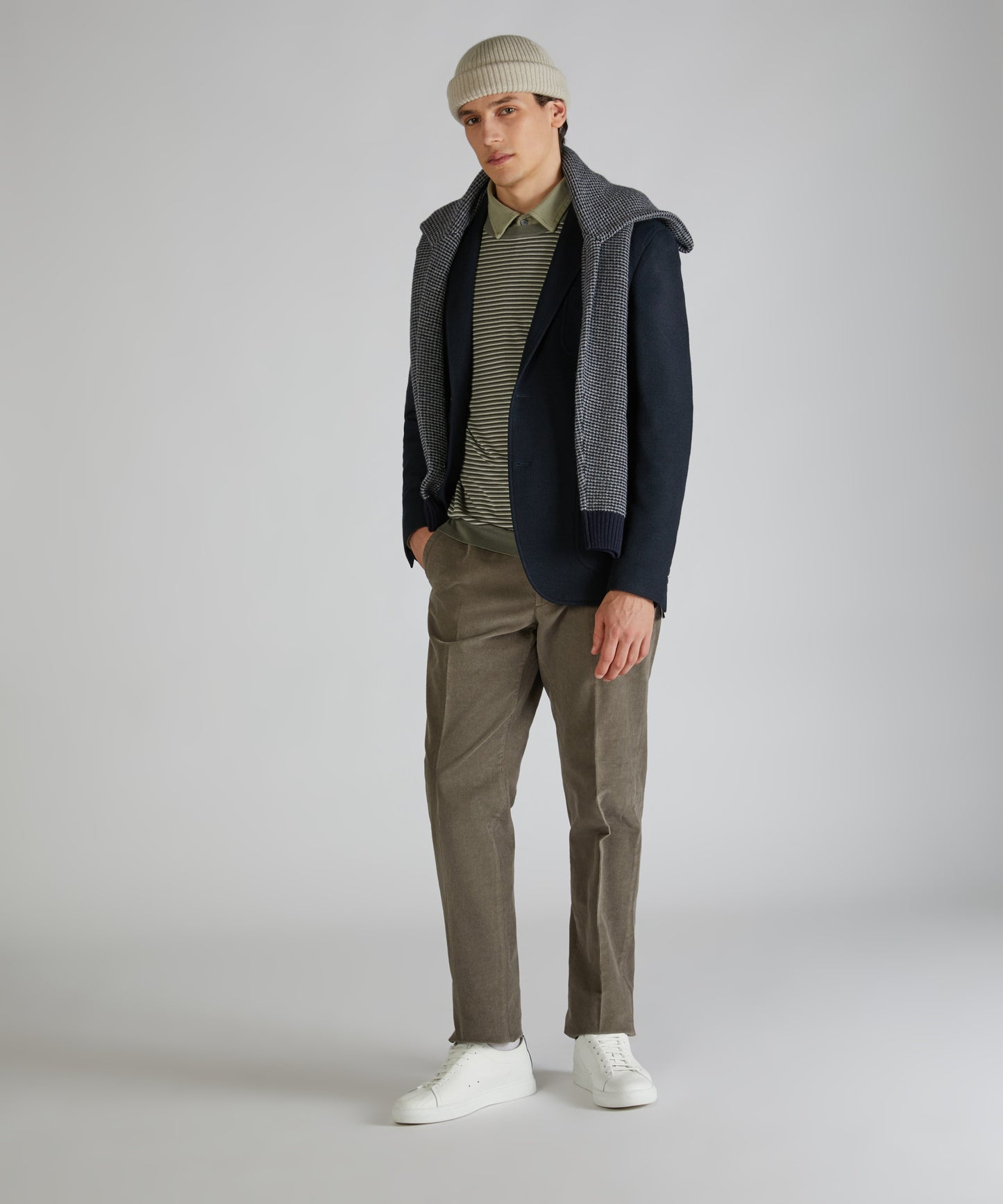 Hopsack jersey features an unrivalled combination of comfort and elegance. Its light, breathable, crease-resistant and elastic construction ensures perfect ease of movement. The single-breasted two-button model features a slim fit and minimal lines.