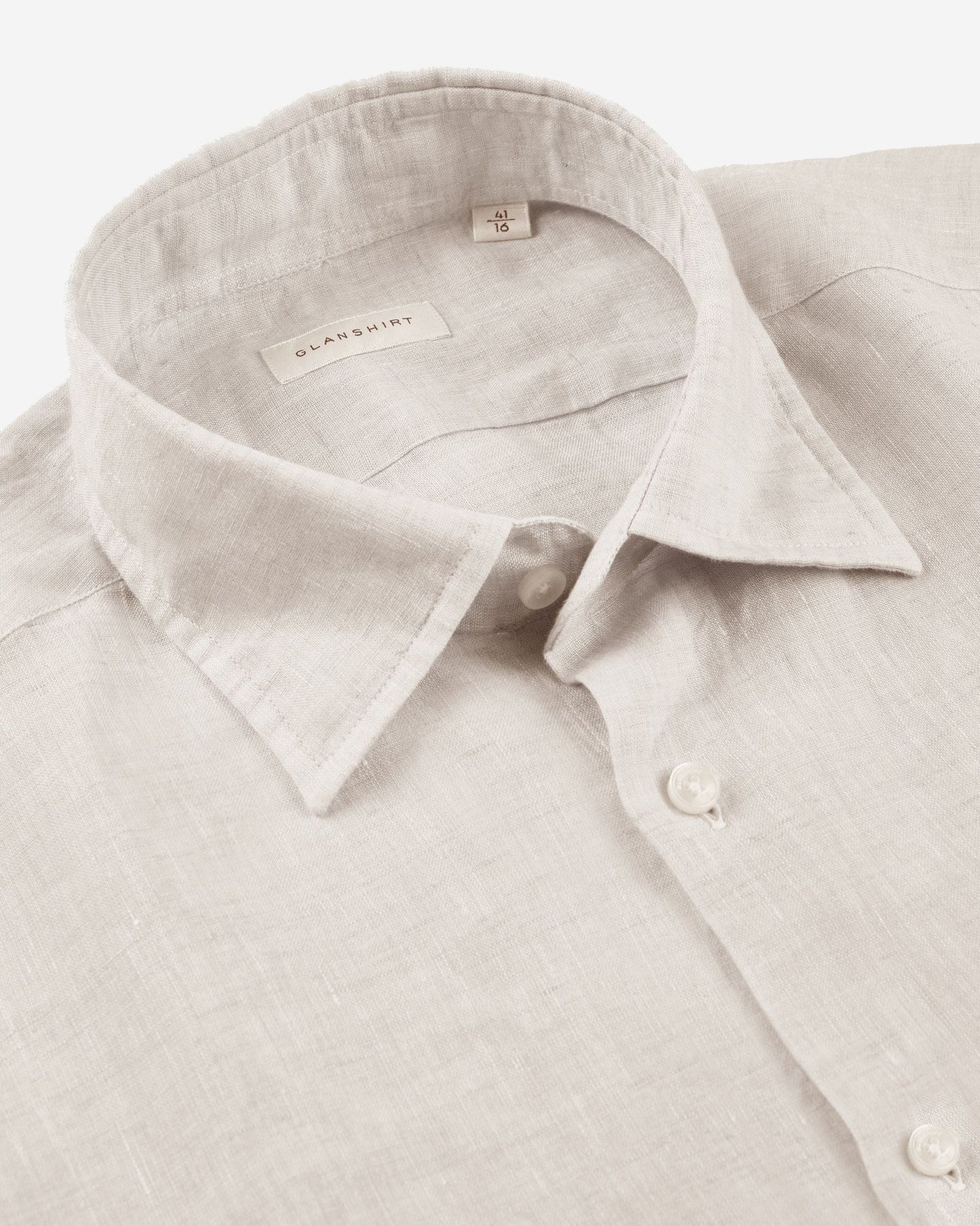 Linen is one of the world's oldest textile fibres. Centuries of innovation and research have ensured its role as one of today's premium shirt fabrics: lightweight yet durable, with a slightly iridescent appearance, it is very pleasant to wear throughout the day. Here it is used on a regular-fit shirt and proposed in refined shades, a perfect expression of summer lightness.