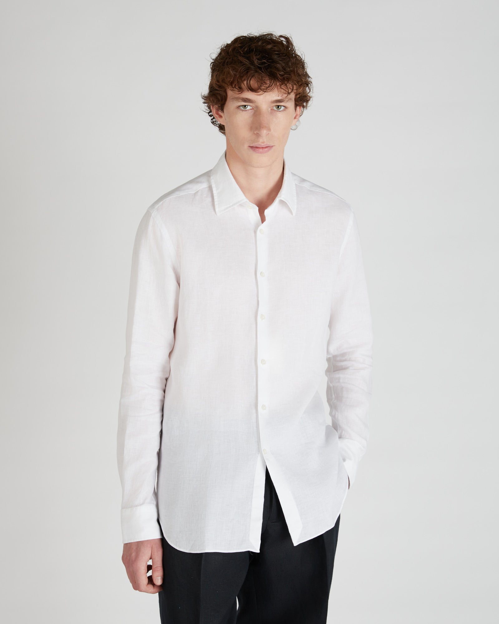 Linen is one of the world's oldest textile fibres. Centuries of innovation and research have ensured its role as one of today's premium shirt fabrics: lightweight yet durable, with a slightly iridescent appearance, it is very pleasant to wear throughout the day. Here it is used on a regular-fit shirt and proposed in refined shades, a perfect expression of summer lightness.