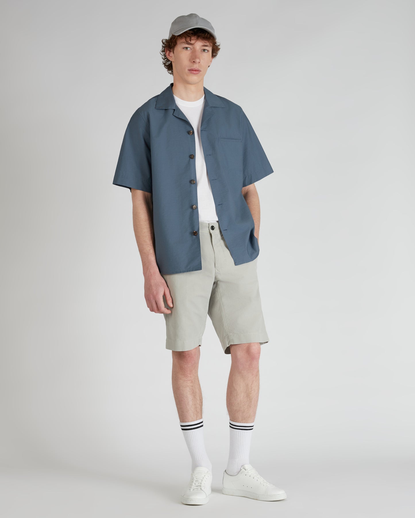Summer satin is an iconic fabric in Slowear's summer proposal. It is a soft, light stretch cotton with an original weave that gives a silky appearance. In addition, it has been produced through a certified process, minimising the use of harmful chemicals at all stages of production. The minimal lines of the model make this garment extremely versatile, lending a sartorial touch to more casual looks.