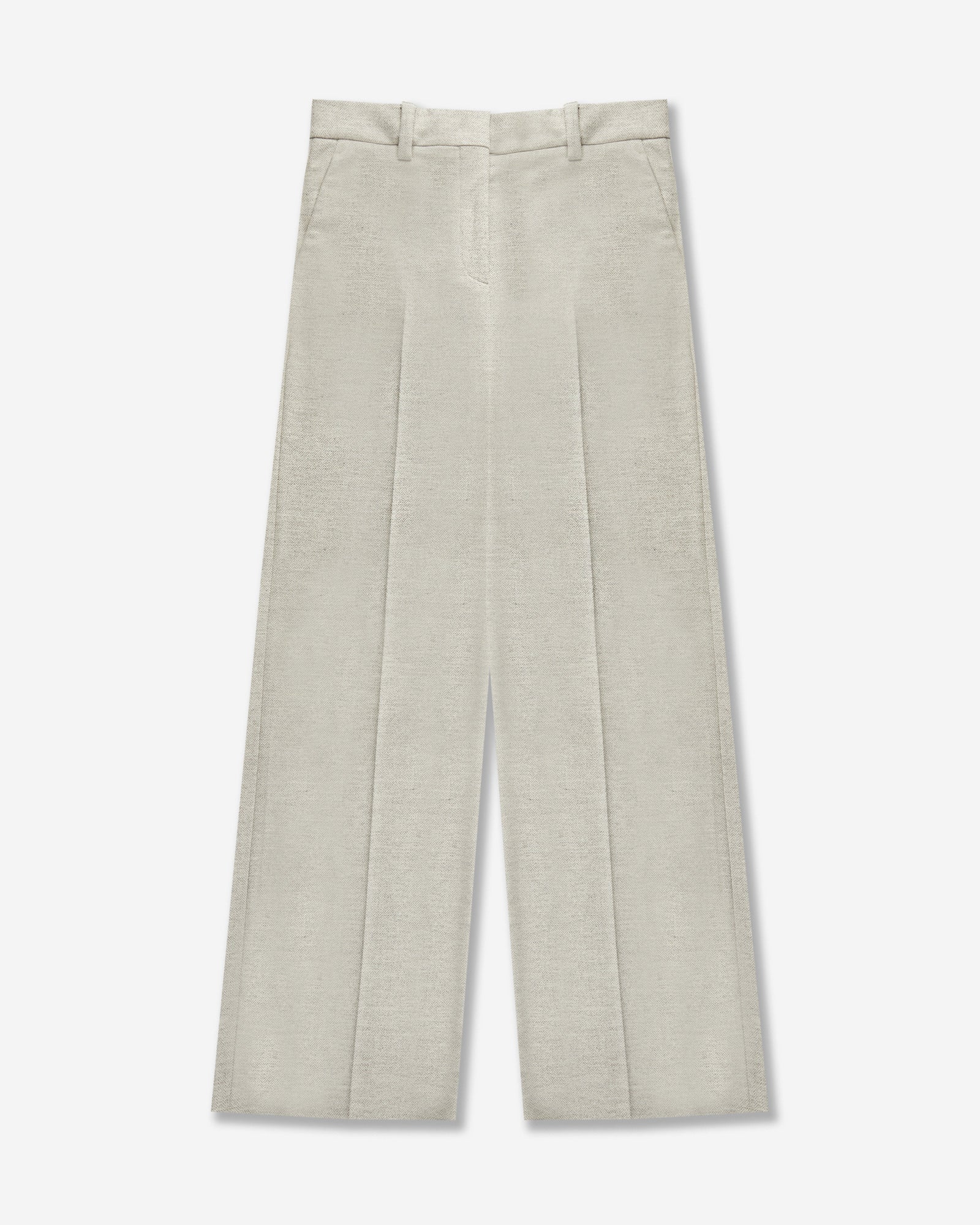 - The trousers have slash front pockets, single-welt back pockets with buttons, soft leg and flared hems.