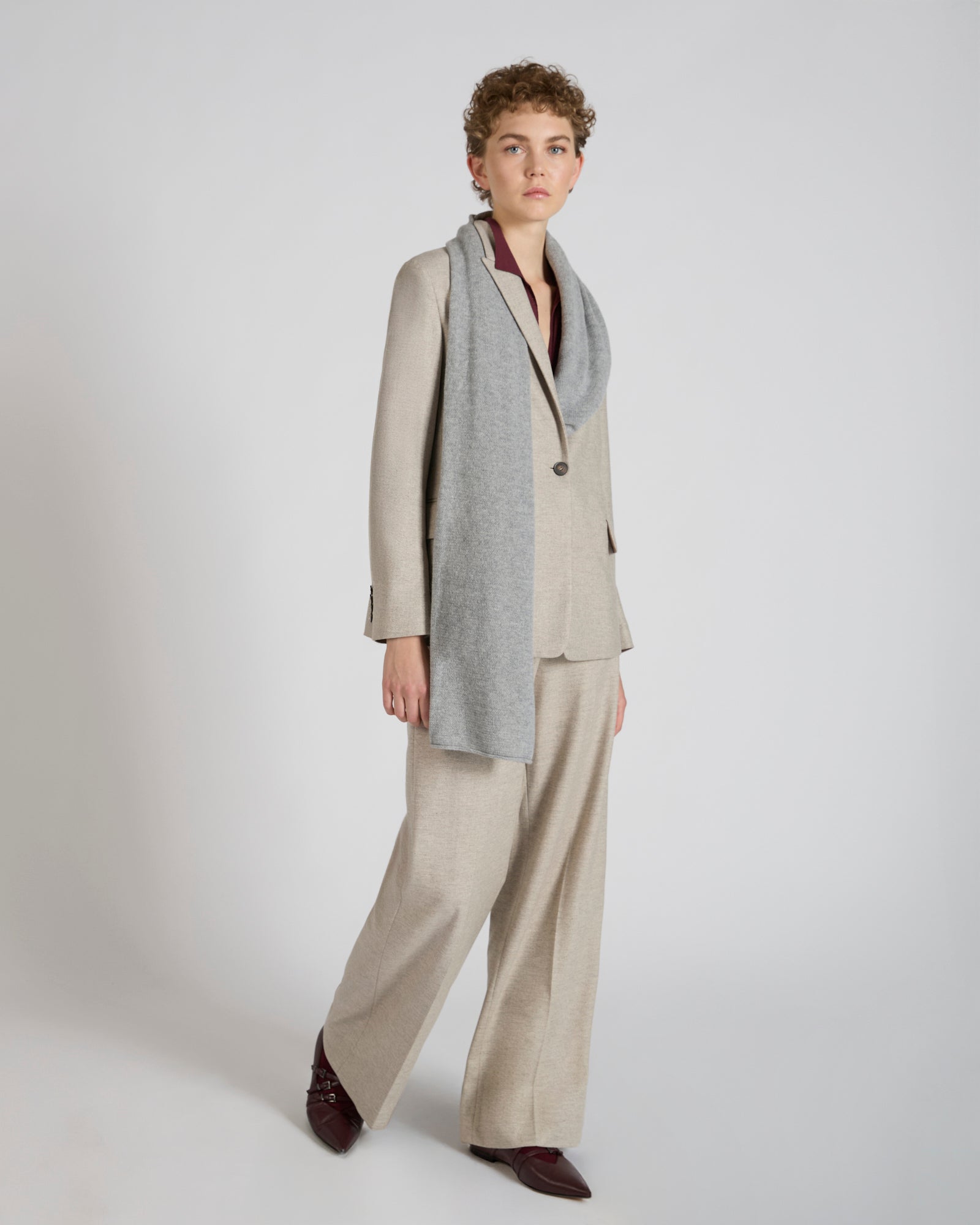 Comfort and originality come together in this garment, to create exclusive seasonal combinations. The softness and warmth of the flannel are made original by the micro-pattern, which gives the garment three-dimensionality. The wool is produced from a certified process, fully compliant with all animal welfare, health, safety and environmental regulations.