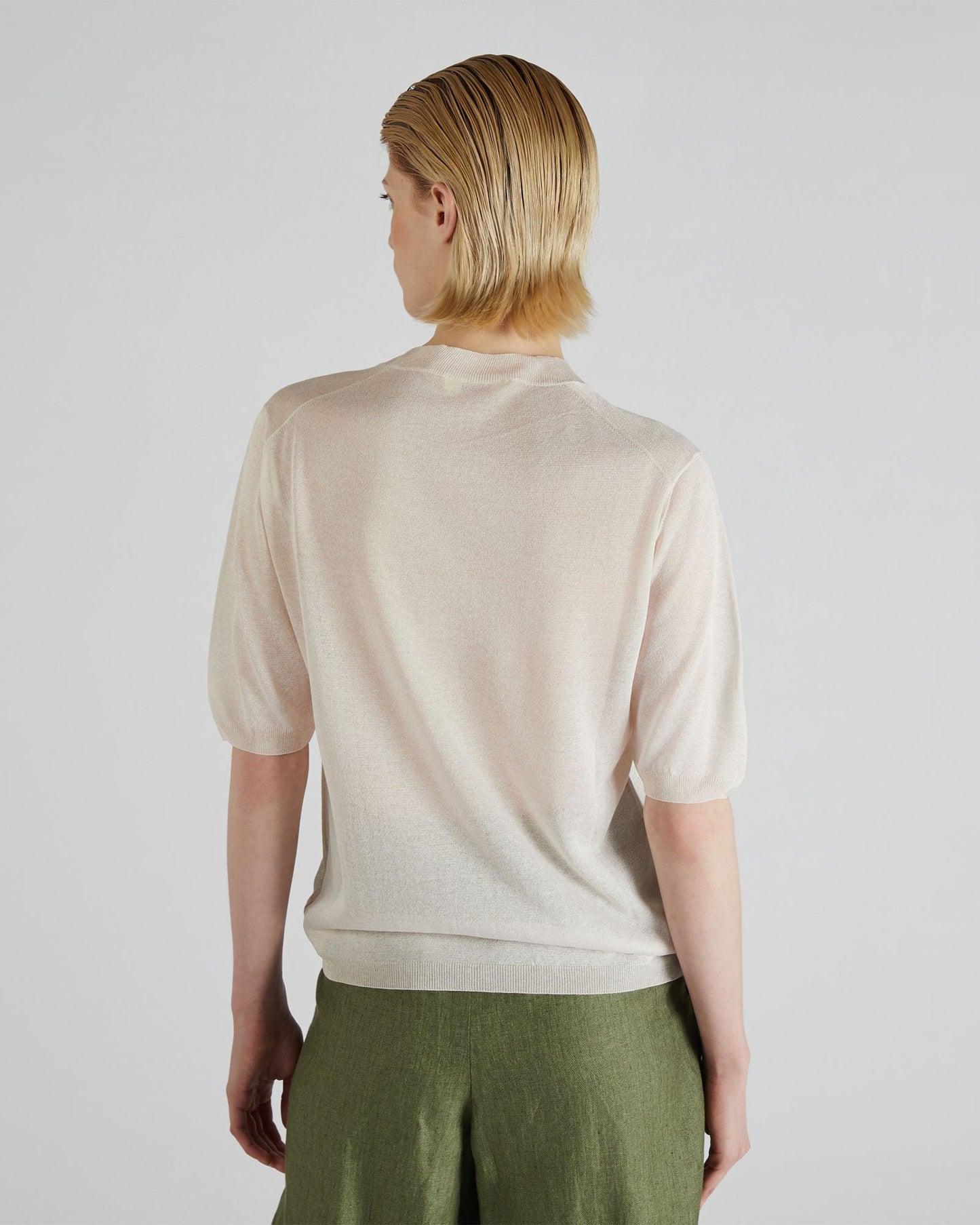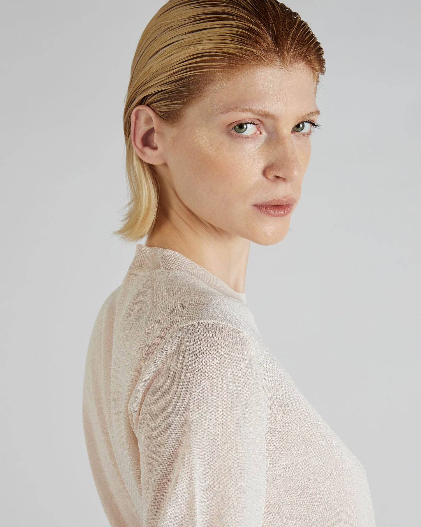 Weightless and very light, this garment is made of a combination of viscose and technical fabric. The particular and original crepe effect of the surface makes the feel slightly crinkled, while maintaining its lightness. An extremely versatile garment in the delicate shades of the season.