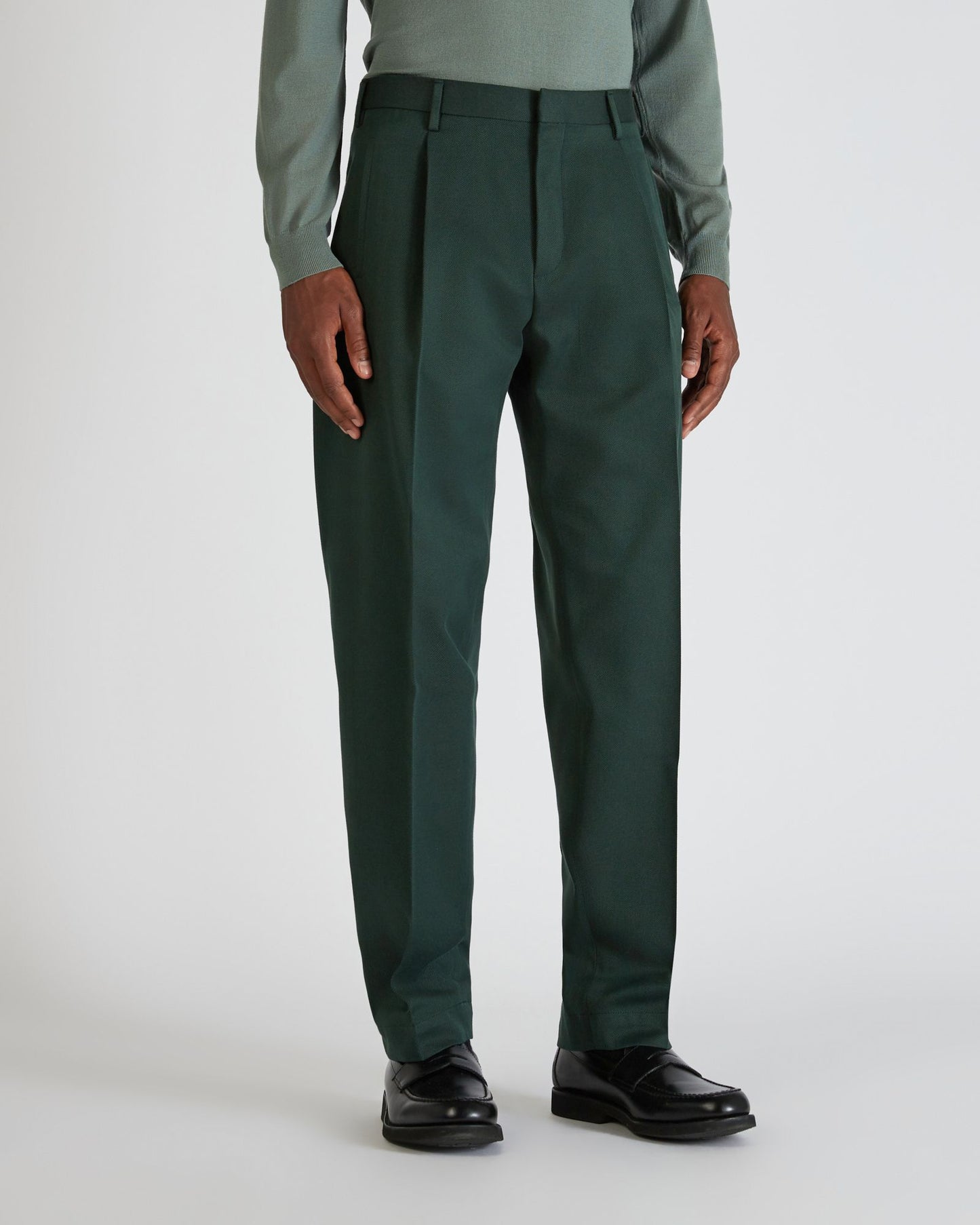 The ultimate expression of refined style and high tailoring, these trousers encapsulate the quintessence of the brand. The model is a sophisticated seamless one: without the seam on the outer leg, it presents a surface continuity that contributes to making the volumes extremely soft and contemporary. The chosen fabric is a precious blend of wool and yarn-dyed cotton, ensuring durability as well as protection and comfort.