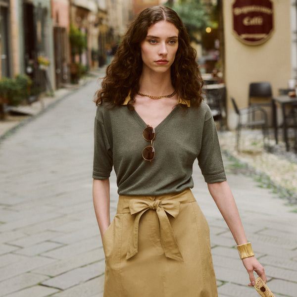 Its uniqueness lies in the combination of soft cotton and a touch of elastane, which together offer comfort, freedom of movement, and a pleasantly smooth handfeel, while ensuring lasting resistance and impeccable shape over time.
